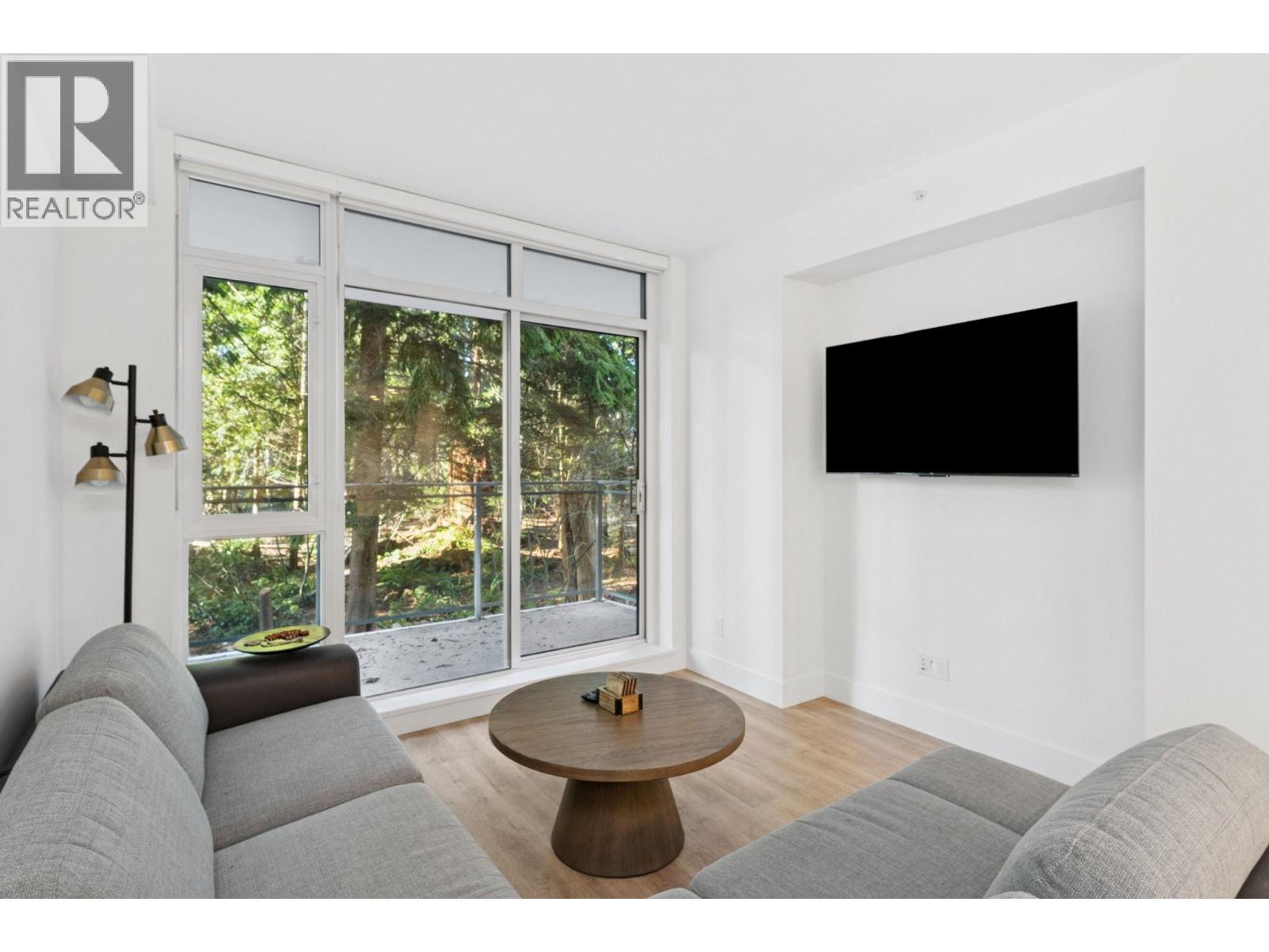 PARKSIDE AT LYNN BY MOSAIC HOMES - Lynn Valley's premier address. This one bedroom + den/flex concrete home features an efficient, open concept floorplan with lush forest views... like an adult treehouse! The kitchen features integrated appliances, quartz counters, ample storage and rich brass hardware, flowing on designer vinyl flooring into the dining/living room and massive covered patio. Appreciate air-conditioning, over-height ceilings and a den/flex space that comfortably accommodates an office. The washroom is a true sanctuary with deep soaker tub, oversized vanity and floor to ceiling tiling. Resort-style amenities include indoor pool, fitness centre, yoga studio and social lounge. All of this, at nature's door... steps to hiking/biking trails and Lynn Valley Centre/Village. (id:58403)