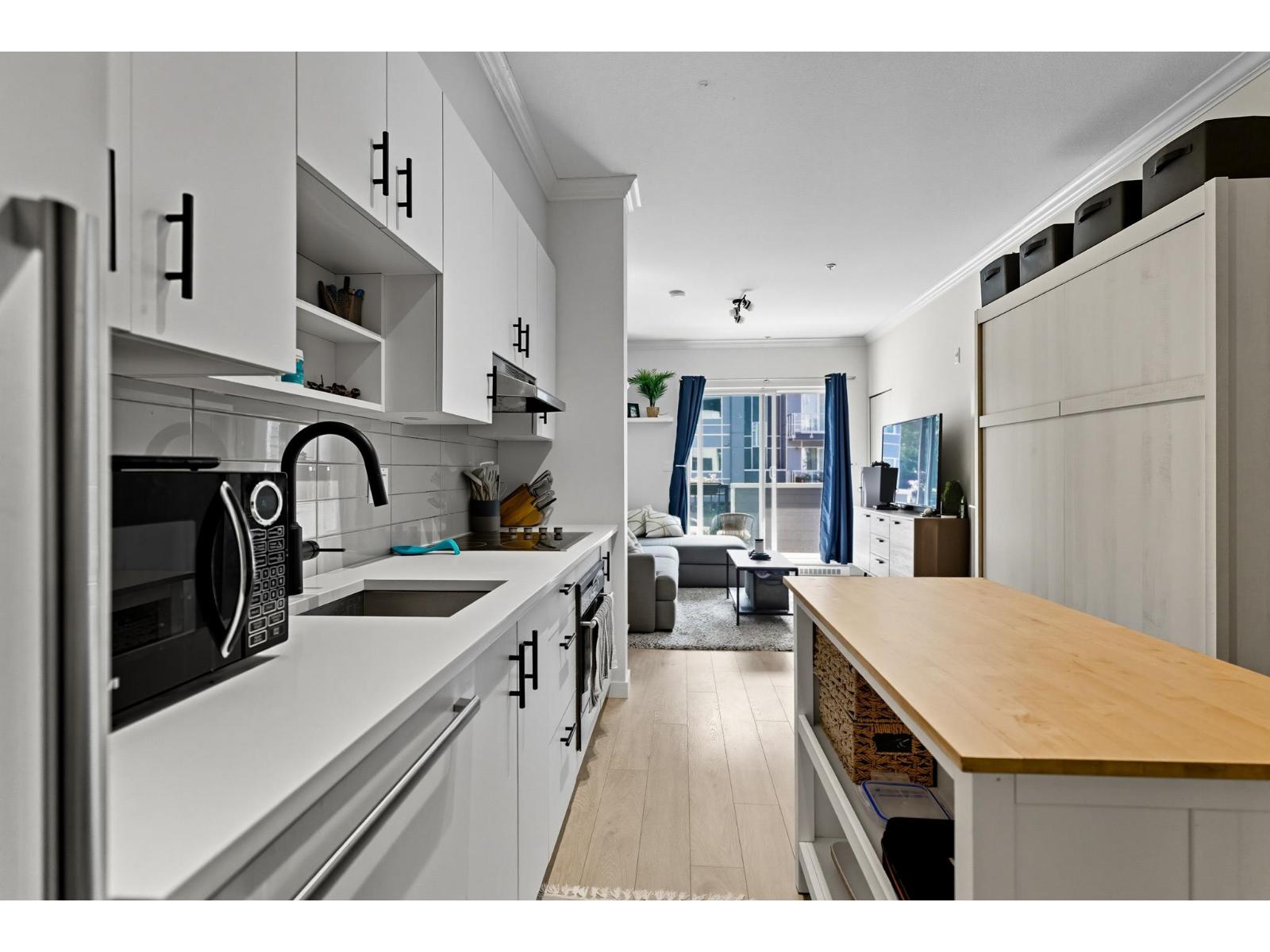 Flawlessly laid out Studio with Parking at Balance ! A great opportunity to get into the market with this Modern studio near SFU & Surrey Memorial Hospital - Parking + Storage Included ! Discover urban living at its finest in this efficiently designed layout featuring sleek modern finishes & an open concept home that maximizes every square foot. The large covered patio adds to your living space ! Enjoy the convenience of in-suite laundry, plus the rare bonus of 1 secured parking stall & a private storage locker. Ideally located just steps from Simon Fraser University, Surrey Memorial Hospital, major transit routes, cafés, & shops-this is the perfect home for students, professionals, or investors. Move-in ready & packed with value ! Call for your private showing today ! (id:58403)
