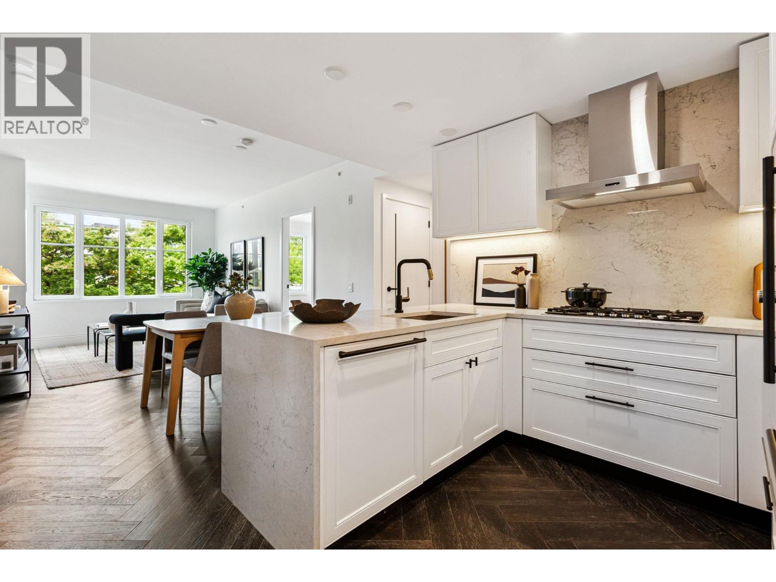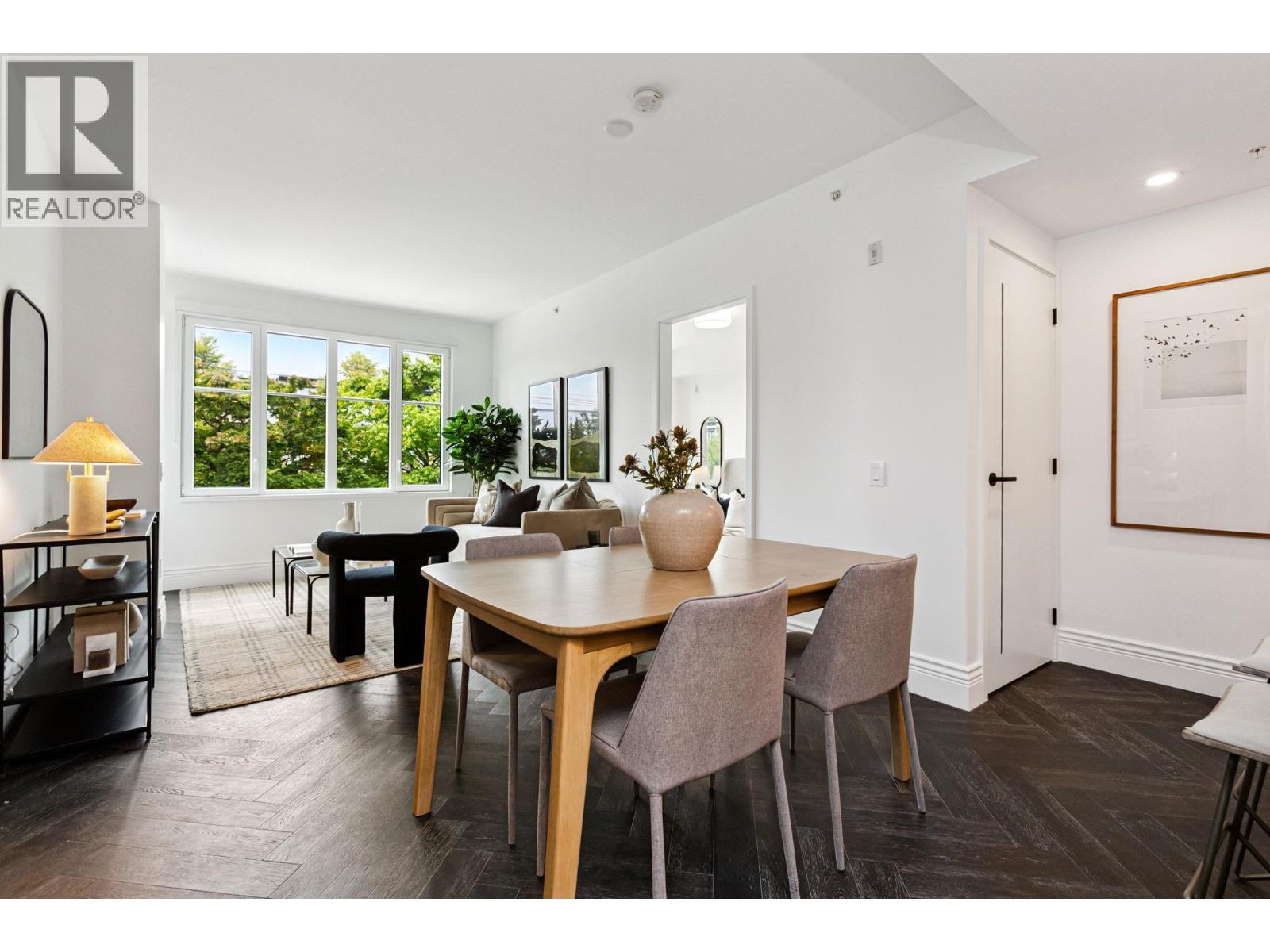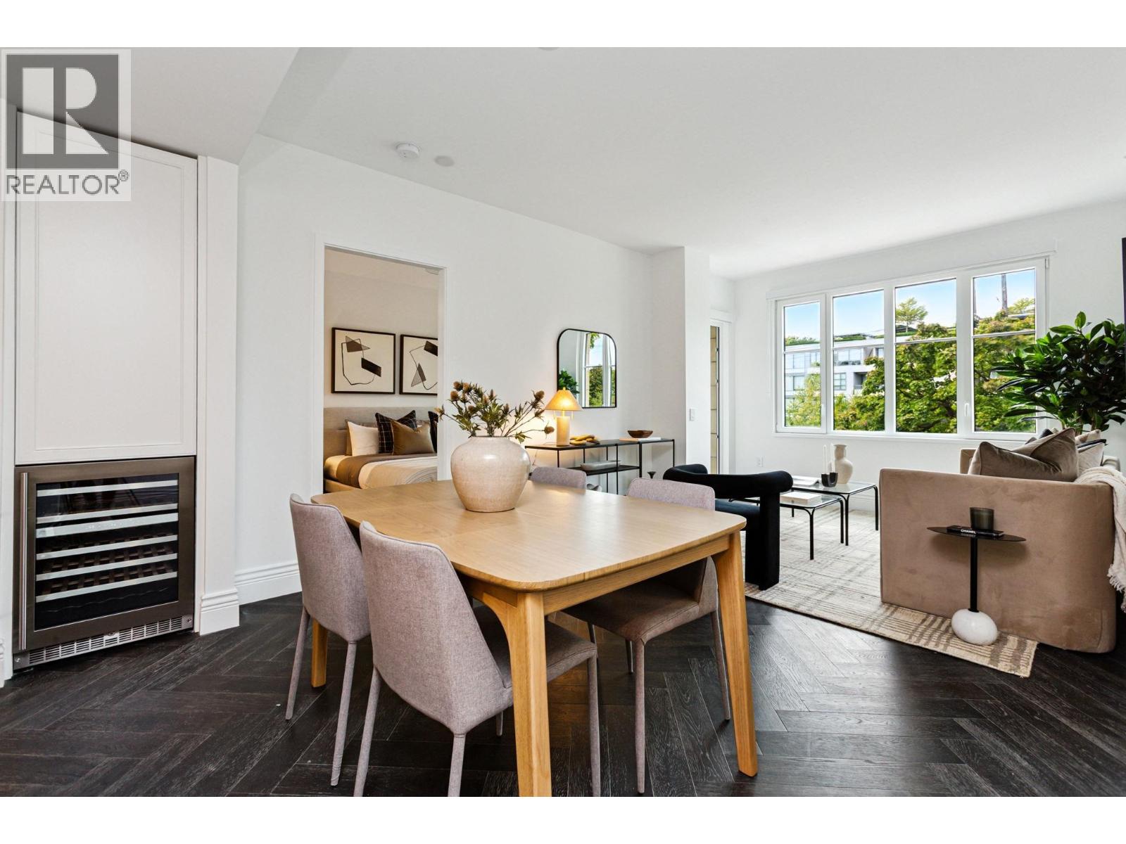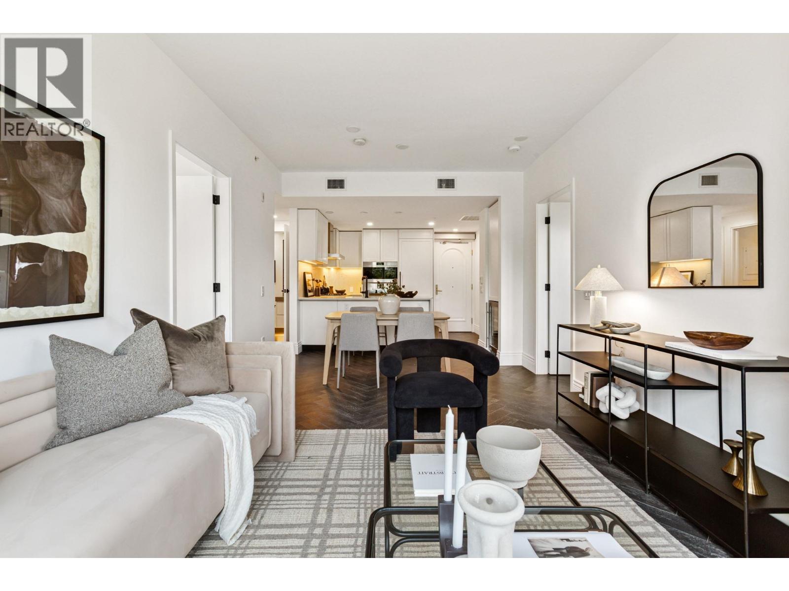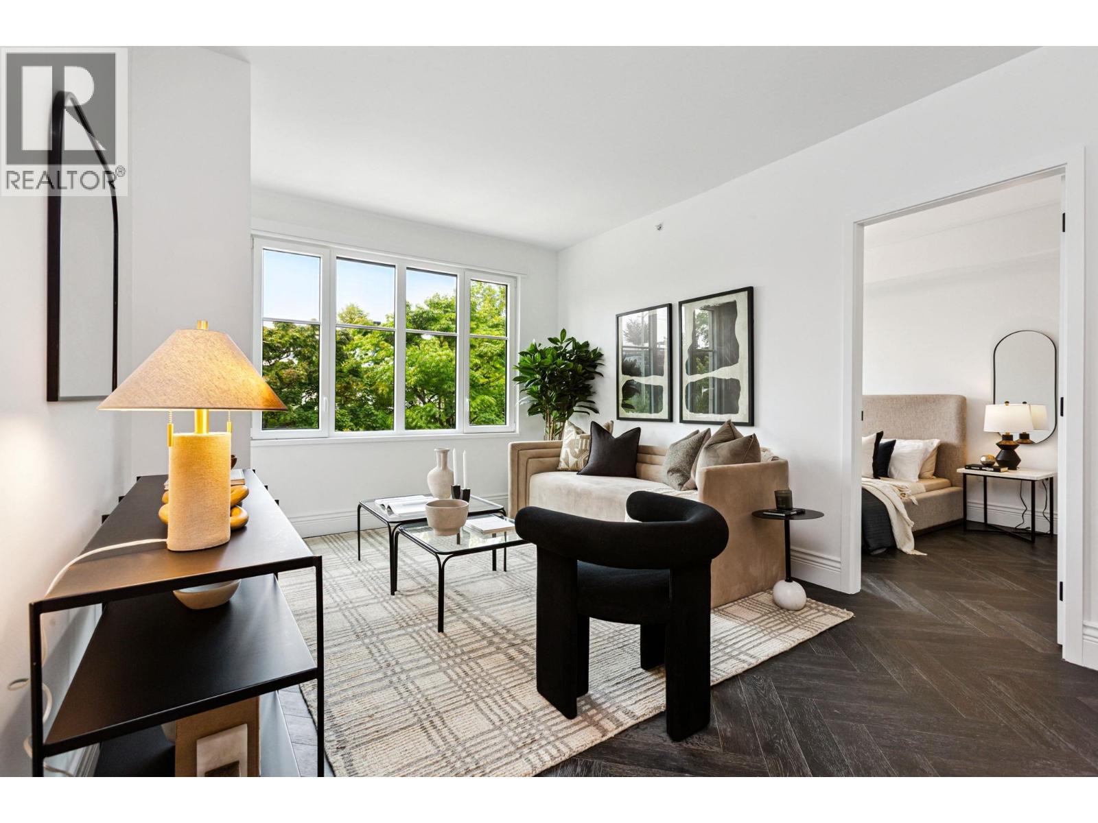 Discover Chloé in the prestigious heart of Kerrisdale. This 900 SF 2-bedroom + den home features Parisian-inspired interiors by CHIL Interior Design, overheight ceilings, herringbone engineered hardwood floors, Italian porcelain tile, and Gaggenau appliances including a gas cooktop. Baths boast quartz counters, Kohler sink and fixtures, plus Nu Heat in-floor heating. Air conditioning included. Quality concrete construction ensures durability, complemented by a 2-5-10 year warranty. Enjoy concierge service, elegant lounge & music room, fitness studio, landscaped courtyard with seating, and a rooftop terrace. Steps from boutique shops, cafés, parks, and top schools, offering effortless city living in a serene, historic neighborhood. (id:58403)