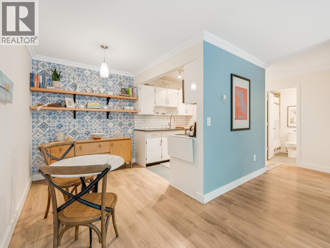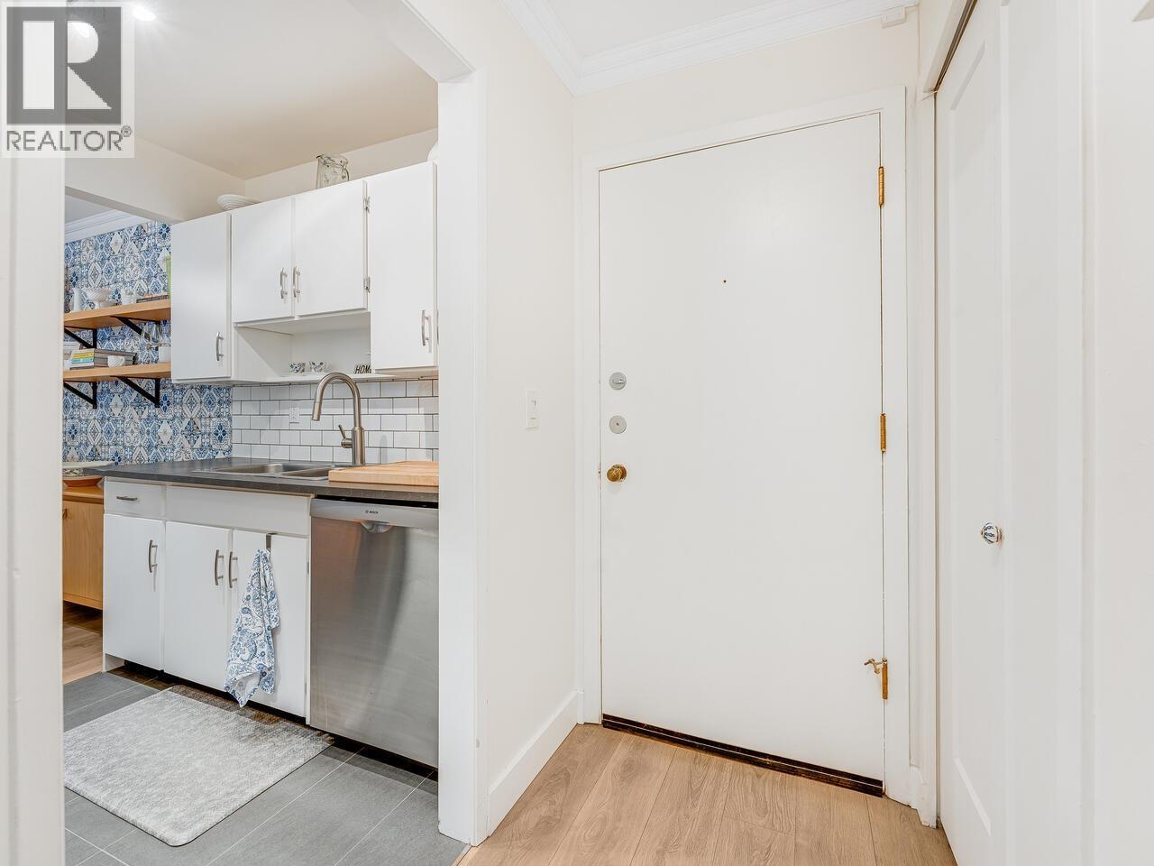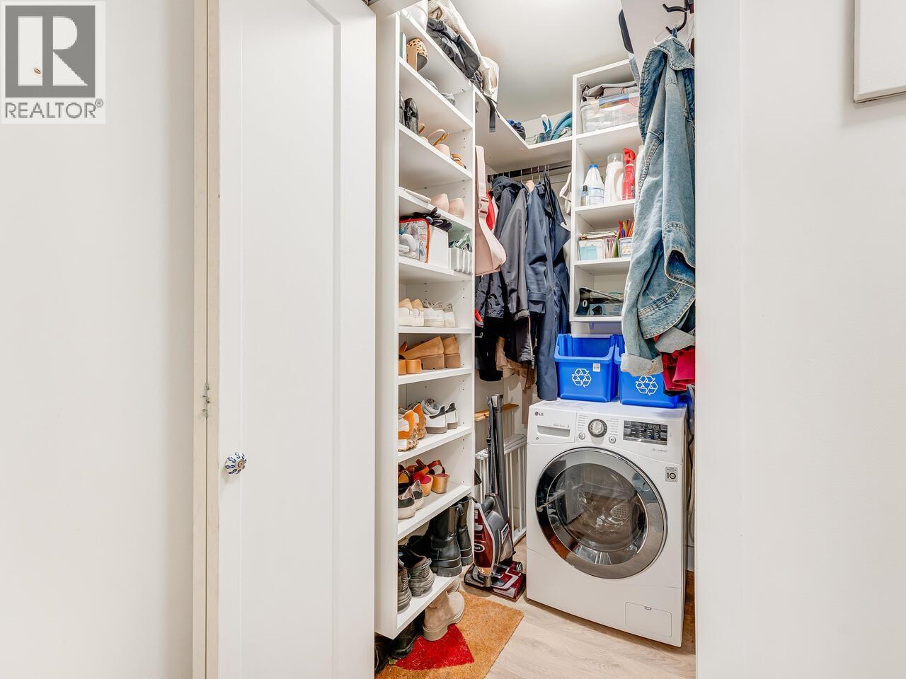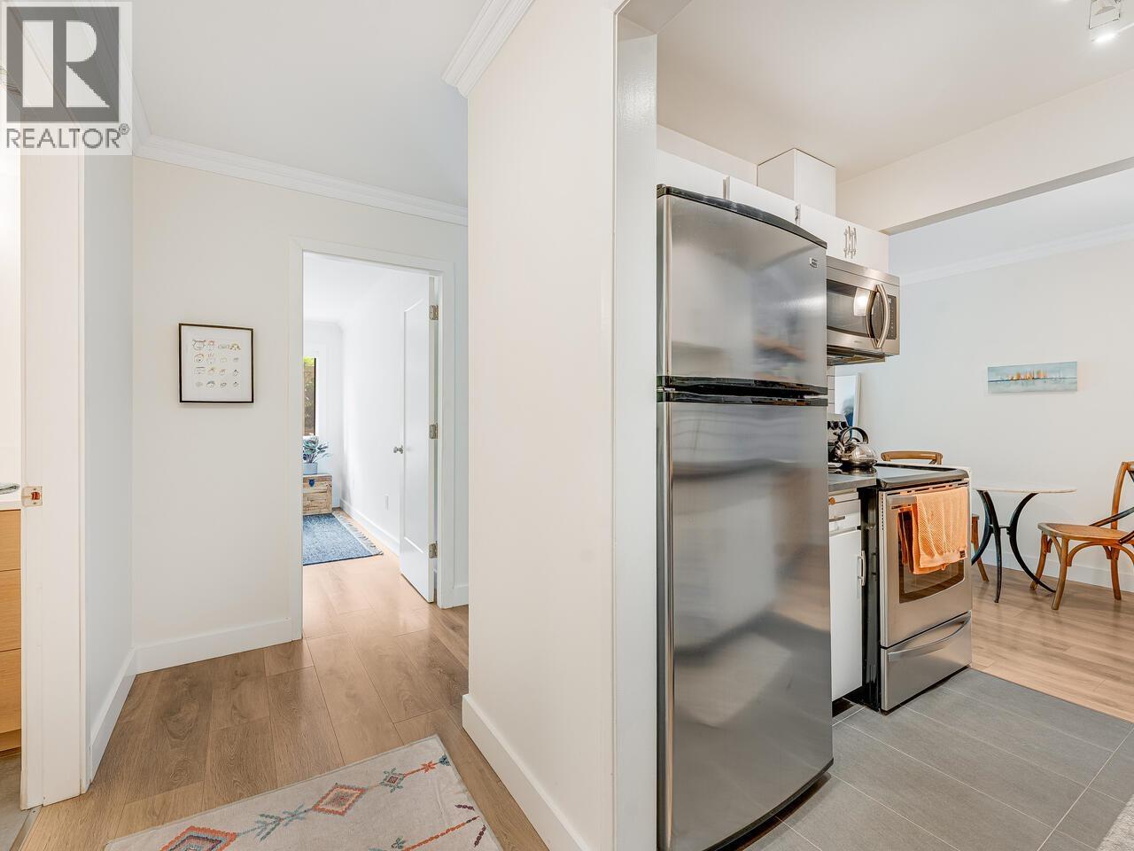 This inviting home at the Landmark Mariner is a pleasure to show. Updated throughout, it´s both beautiful & comfortable. With a wall of windows the light is amazing & the sliding door onto the oversized private patio extends your living area, looking & feeling extra spacious. Indoor/outdoor living can be enjoyed throughout the year with this partially covered outdoor sanctuary. New planters, thoughtfully landscaped & so, so quiet. The building recently completed their exterior renewal with new windows, balconies & rain screen. A well run, friendly place in a central location, with easy access to downtown, the north shore & highway. Lots of restaurants & amenities nearby too. Pets welcome, storage & parking. This unit is one of the few with in-suite laundry. (id:58403)