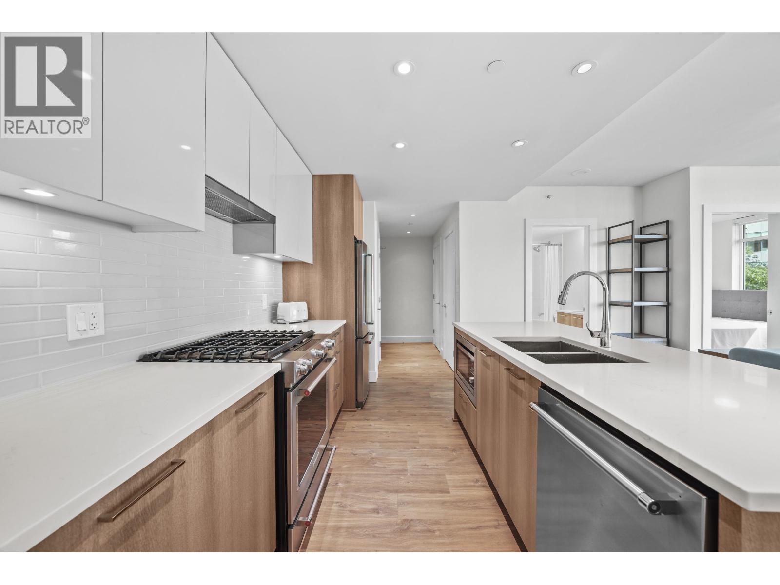 Located in the highly sought after Brewery District, THE COLUMBIA by Wesgroup showcases stunning Fraser River views, modern design & all the convenience New Westminster has to offer. The spacious 2 bedroom+2 bathroom, 905 sqft unit offers an open concept layout with bedrooms on opposite ends, large walk-in closet & no wasted space. Luxury kitchen features a gas range, quartz countertops, s/s KitchenAid appliances, rare PANTRY & large island. Separate dining & living areas with tons of natural light lead out to your spacious turfed balcony. Perfect for BBQ season or morning coffee with Mt. Baker peeking out! Includes 1 parking, 1 storage locker & rest of 2-5-10 Warranty! Enjoy 10,000+ SF of amenities: gym, squash court, yoga, sauna/steam, indoor & outdoor lounge, community garden + bike, dog & car wash stations! Within 5 minute walk to Sapperton Skytrain, Royal Columbian Hospital, Save-On Foods, Shoppers, TD bank & restaurants! PET FRIENDLY & Easy access to HWY. This one won't last! Open House: Oct 5 (12:30-2pm) (id:58403)