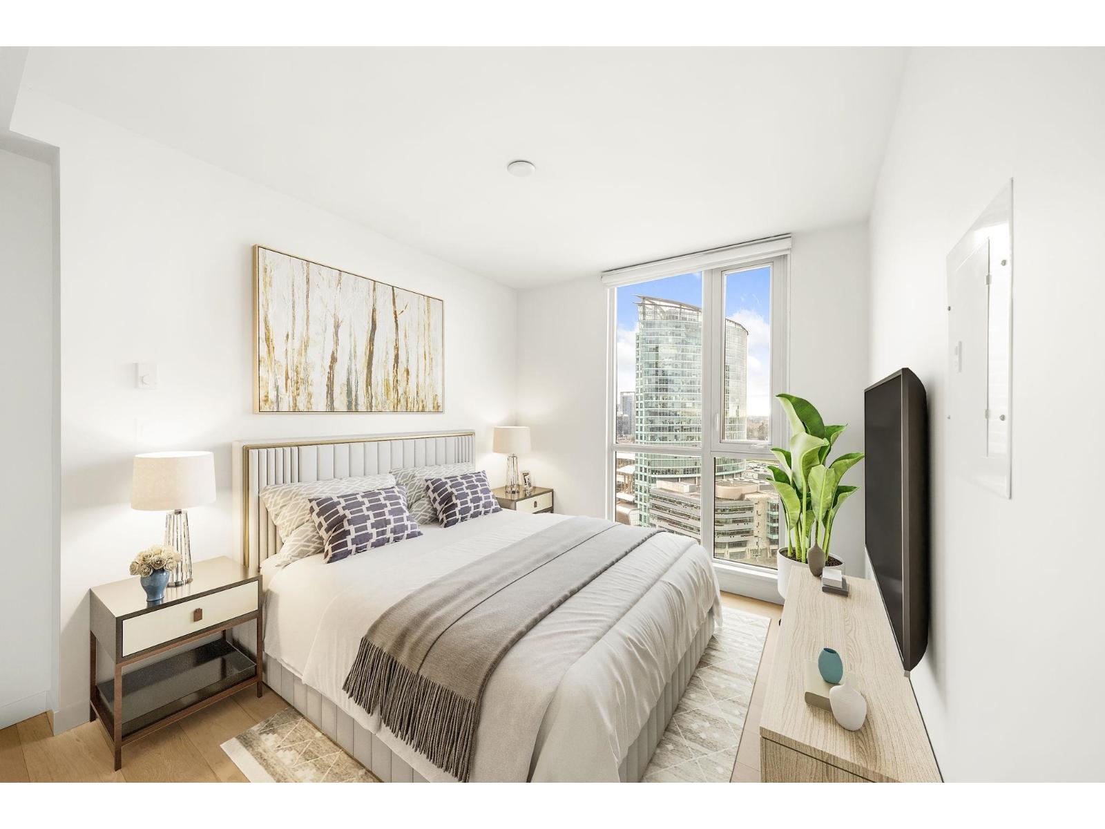 Welcome to Prime on the Plaza - a bright, quiet SW corner home offering one of the most spacious & efficient 2 bed/2 bath layouts, wW/ bedrooms thoughtfully placed on opposite sides for maximum privacy. Enjoy A/C (always a bonus), 9' ceilings, hardwood floors, custom roller blinds, & excellent in-suite storage. The kitchen features soft-close oak cabinetry paired with a modern European appliance package. Both bathrooms feel spa-inspired, one w/ a frameless glass shower, another is a deep soaker tub, marble tile, & contemporary fixtures. Amenities include a full gym, yoga studio, sauna, steam room, study rooms + more. Steps to Surrey Central SkyTrain, Library, & Central City Mall. 2-5-10 Warranty is still in play. Strata fees include 24 hr concierge/security. (id:58403)