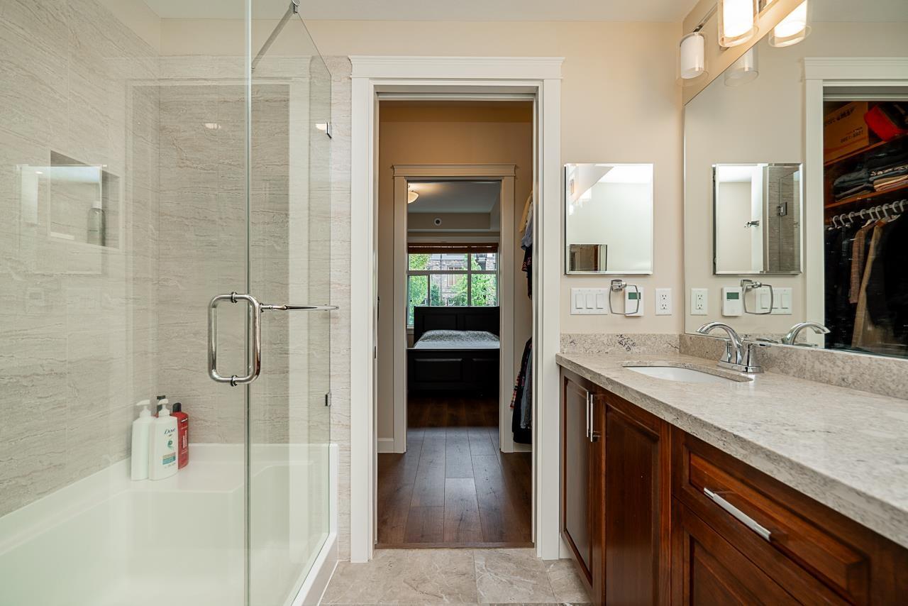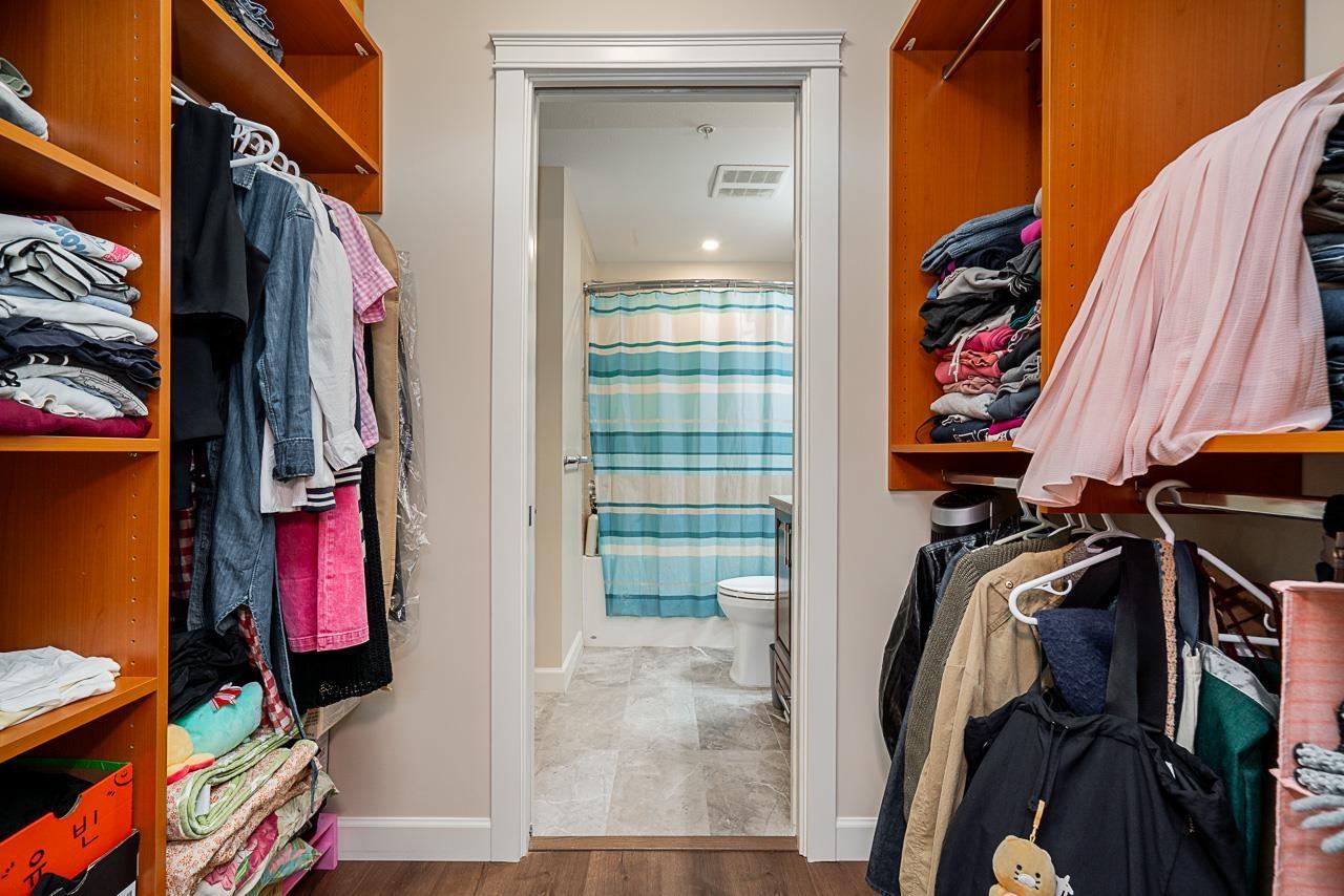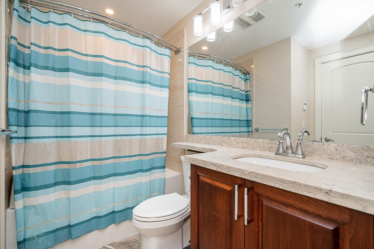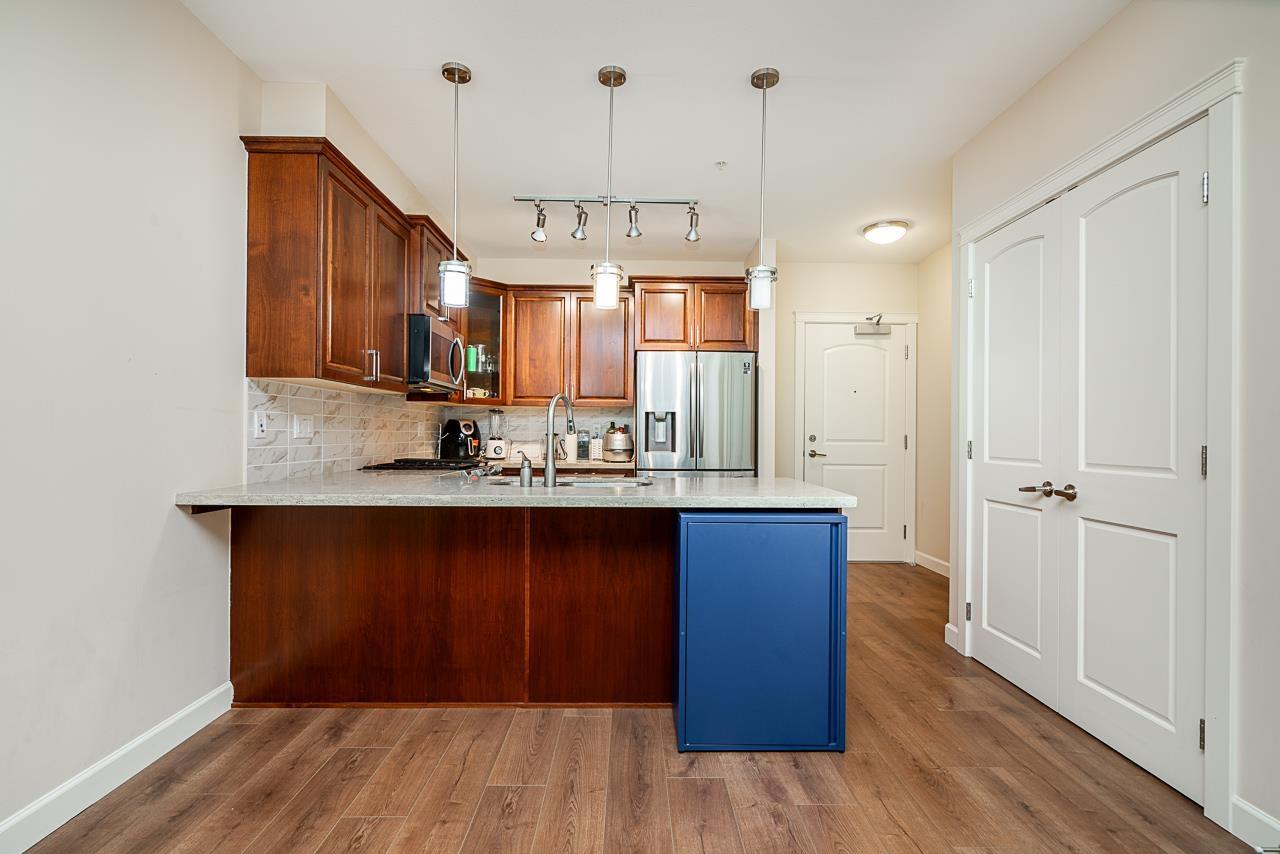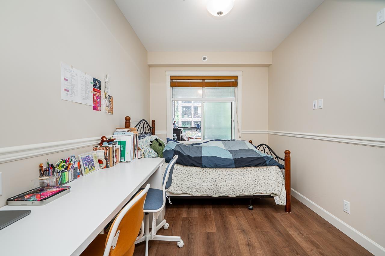 Yorkson Park - 2 Bed + 2 Bath + Den + Storage Unit. Functional layout with 2 large bedrooms across from each other- giving extra privacy, enclosed solarium with gas BBQ hook-up (gas included in strata fees), and 2 parking stalls with EV-capable rolling door storage by the parking space. Features include energy-efficient heat pump and A/C in every room, Samsung appliances, quartz countertops, heated bathroom floors with anti-fog mirrors, solid wood doors and closets, kitchen looking out to living area with ample cabinet space, European laminate flooring, Hybrid concrete and wood construction for quieter living. Convenient location across from Carvolth Park & Ride and beside the new 1.3-acre City Park. (id:58403)