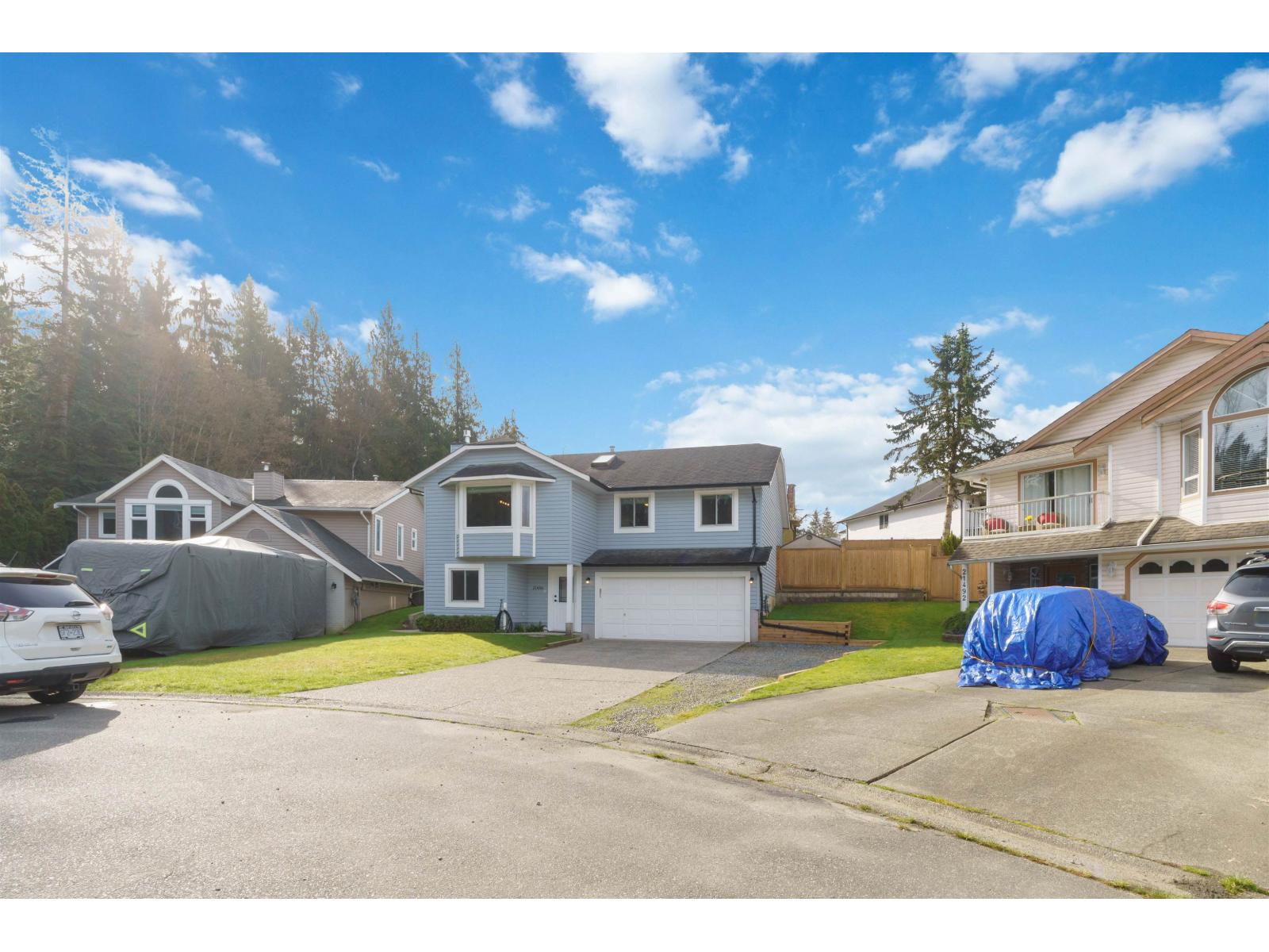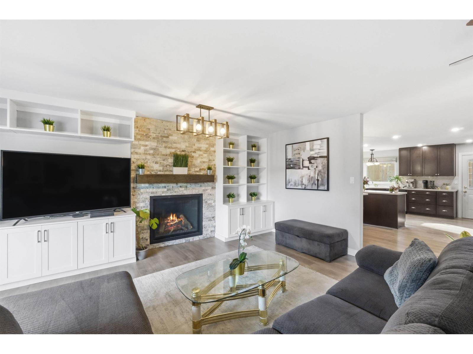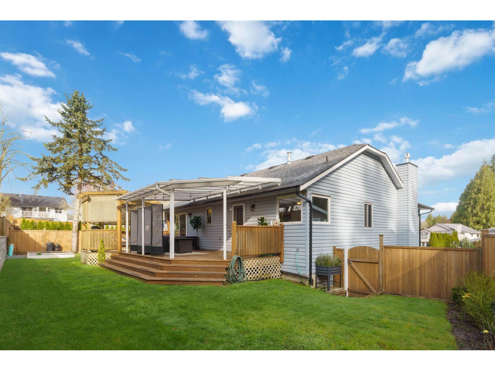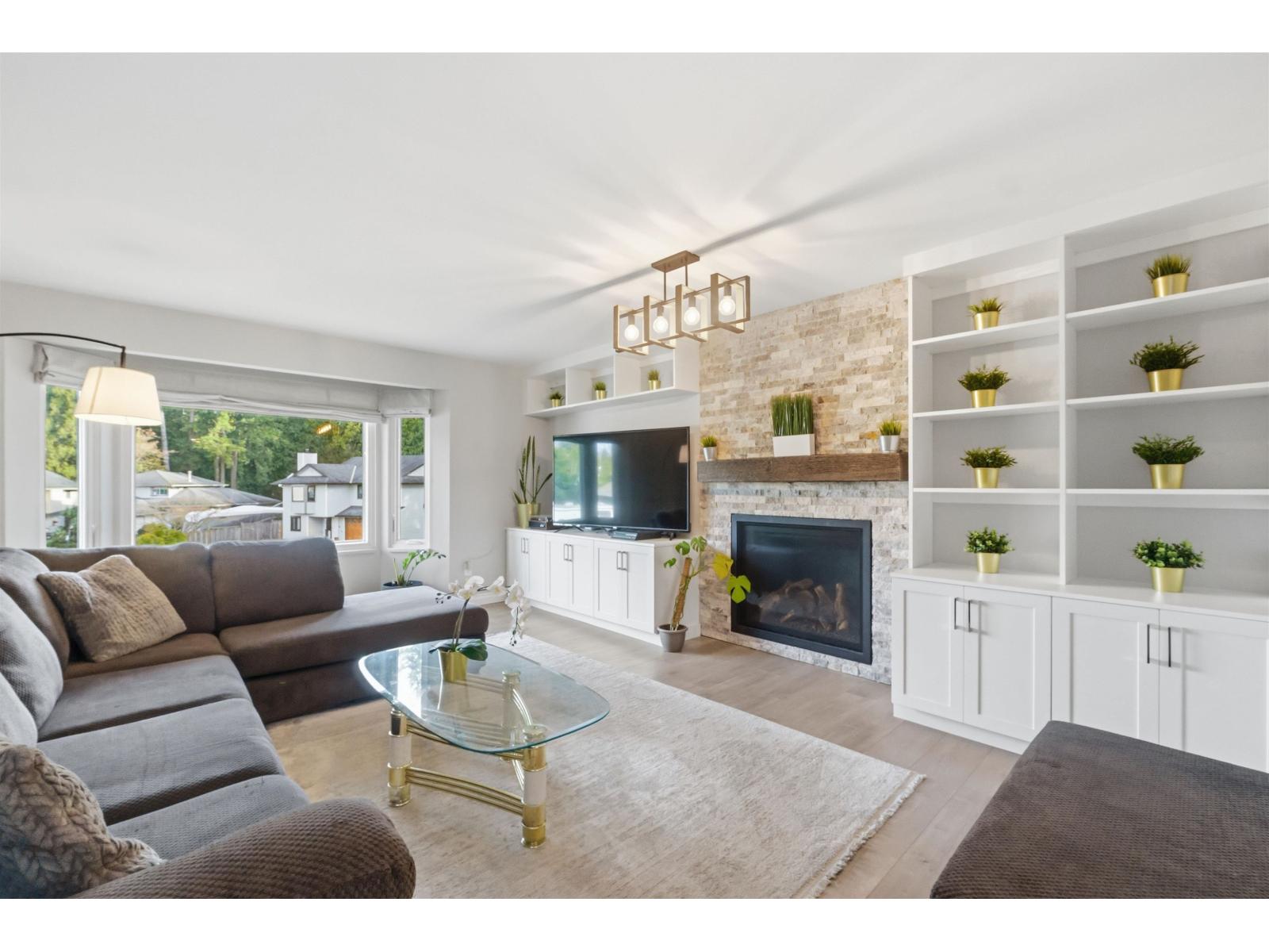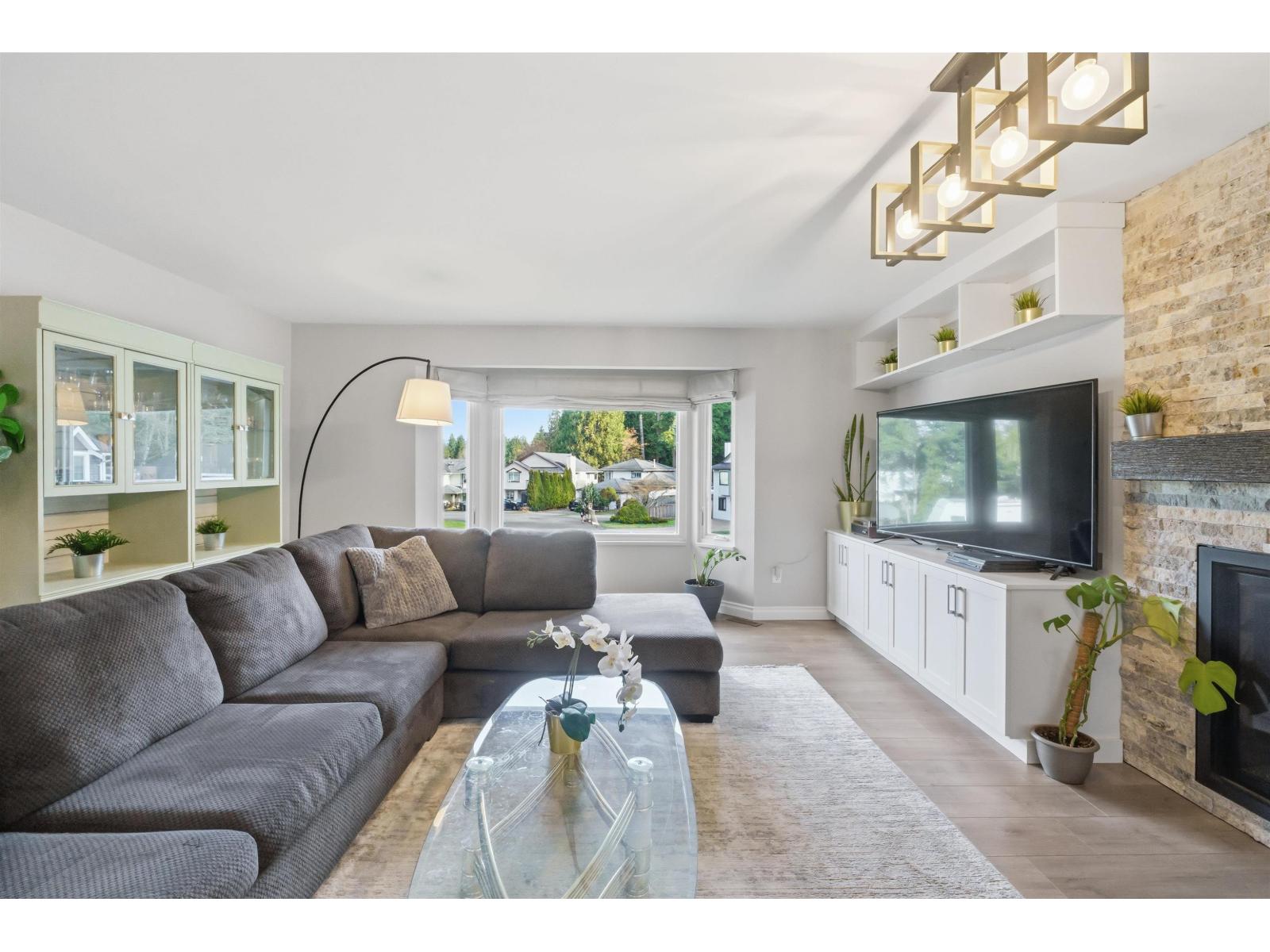 Tucked away on a quiet cul-de-sac in sought-after Walnut Grove, this move-in ready home offers mountain views, a sunny south-facing yard, RV parking and excellent suite potential. Inside, enjoy wide plank flooring, custom built-ins and cozy stone fireplace. The beautifully updated kitchen features shaker cabinets, quartz counters, stainless steel appliances, gas range and massive counter perfect for gathering. Downstairs offers a spacious rec room, full bath & separate entry. Step outside to the covered deck, pergola, garden beds and new retaining wall. Newer windows and heat pump for cool summer days. Minutes to Walnut Grove Secondary School, James Kennedy Elementary School and Walnut Grove Community Centre. Quiet cul-de-sac homes like this rarely come available in Walnut Grove. (id:58403)