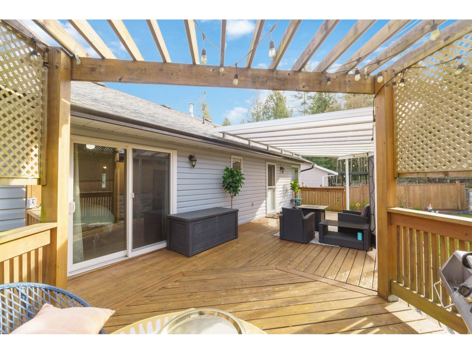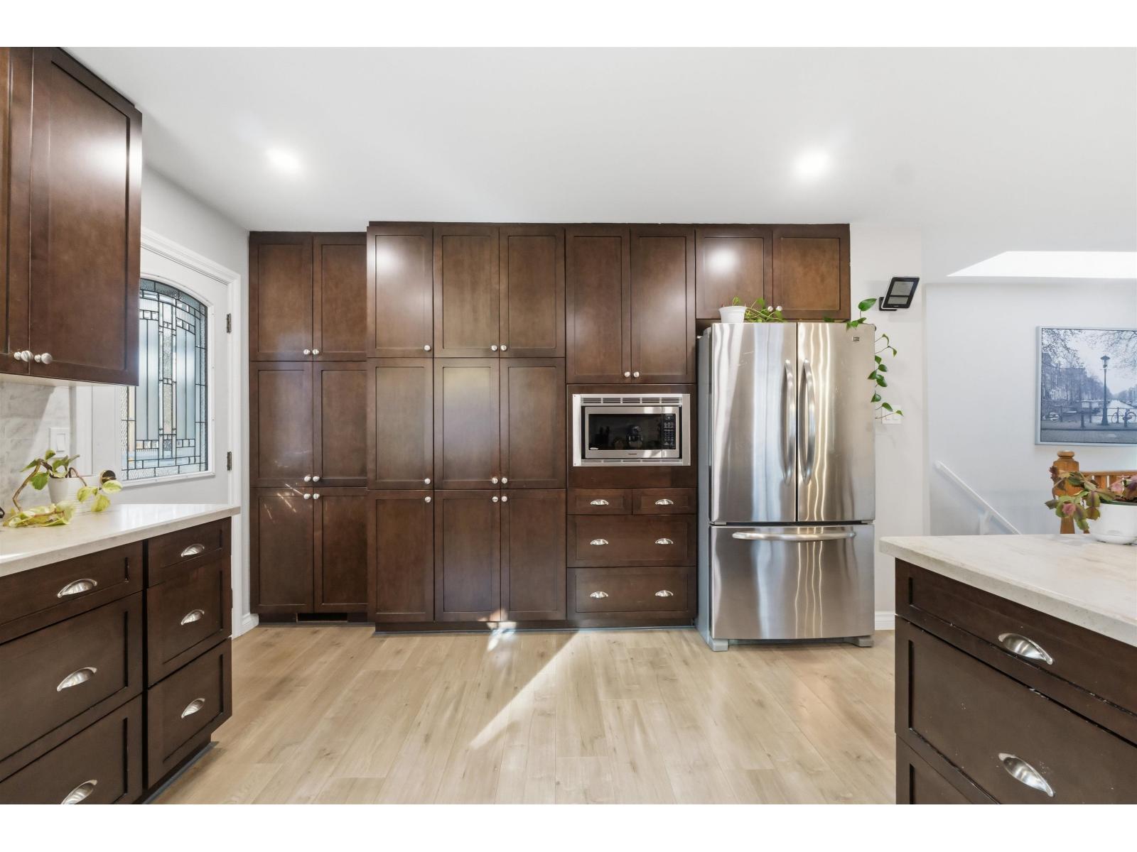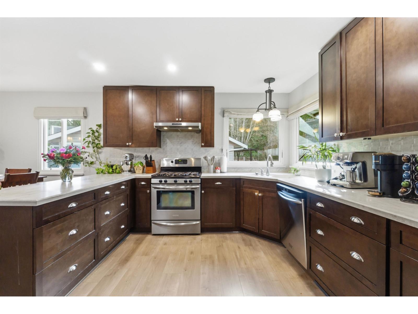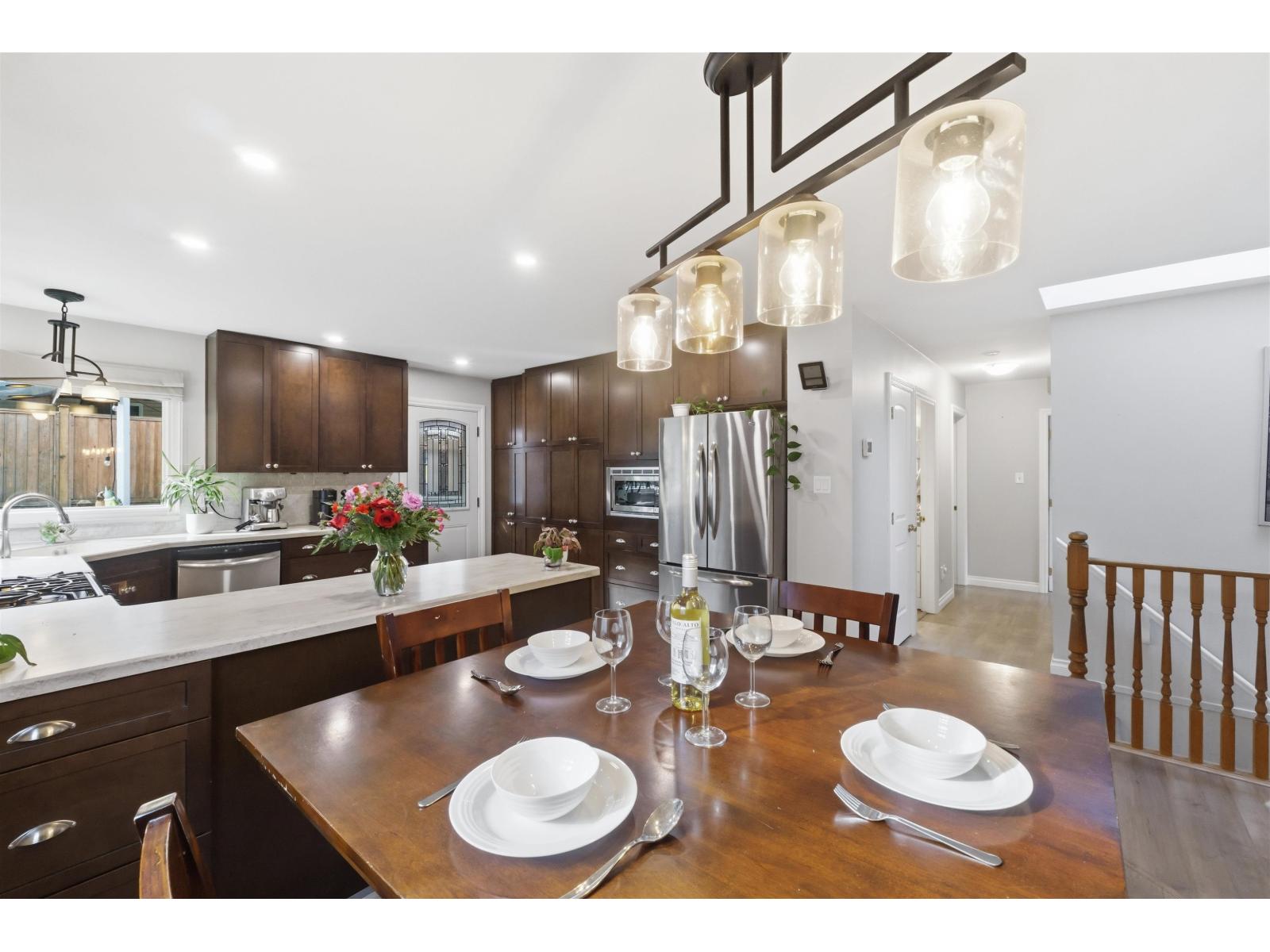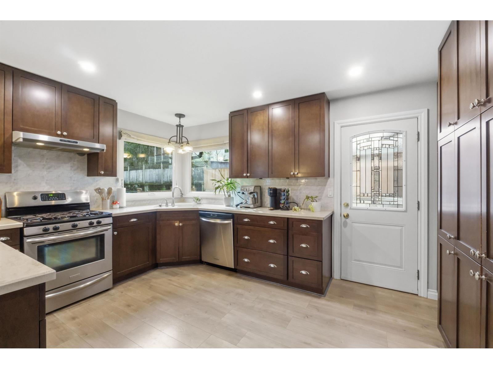 Tucked away on a quiet cul-de-sac in sought-after Walnut Grove, this move-in ready home offers mountain views, a sunny south-facing yard, RV parking and excellent suite potential. Inside, enjoy wide plank flooring, custom built-ins and cozy stone fireplace. The beautifully updated kitchen features shaker cabinets, quartz counters, stainless steel appliances, gas range and massive counter perfect for gathering. Downstairs offers a spacious rec room, full bath & separate entry. Step outside to the covered deck, pergola, garden beds and new retaining wall. Newer windows and heat pump for cool summer days. Minutes to Walnut Grove Secondary School, James Kennedy Elementary School and Walnut Grove Community Centre. Quiet cul-de-sac homes like this rarely come available in Walnut Grove. (id:58403)