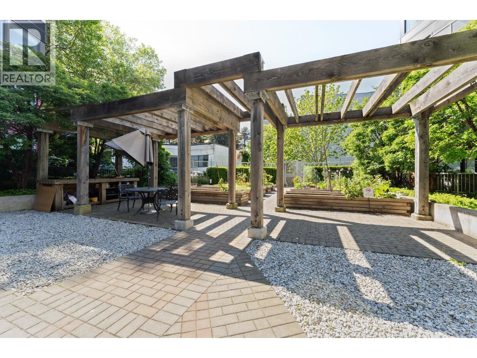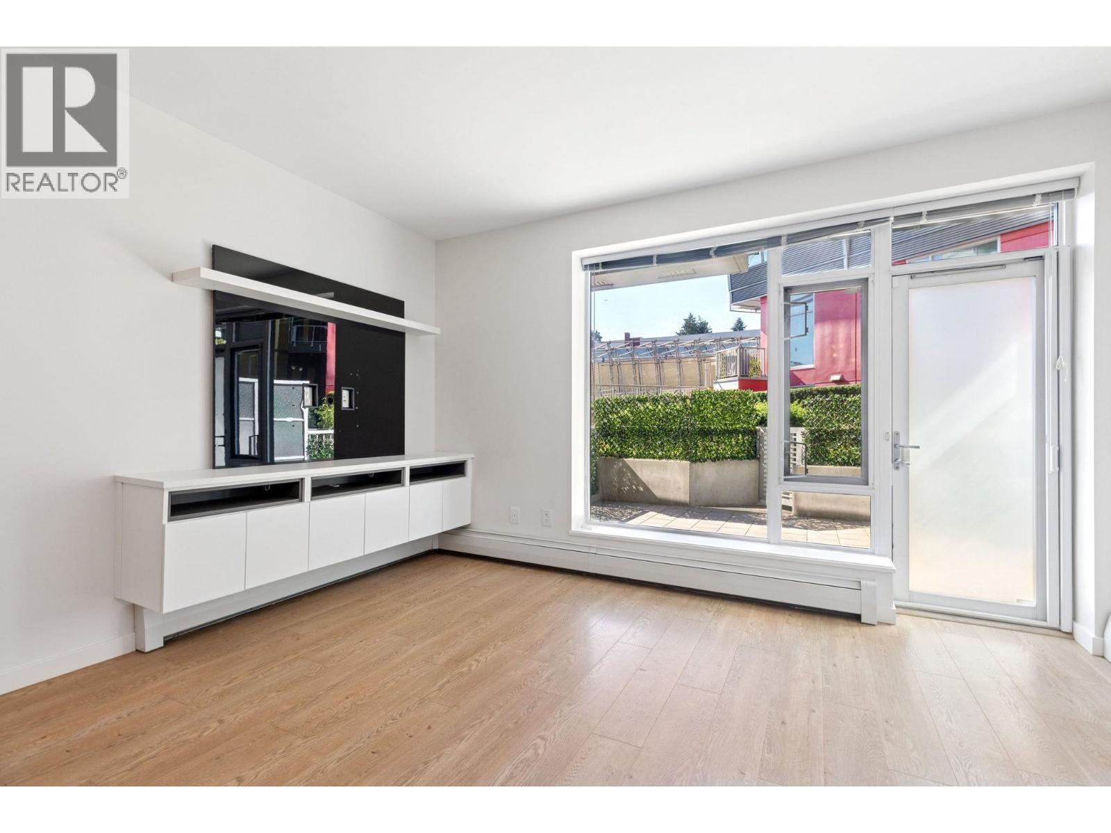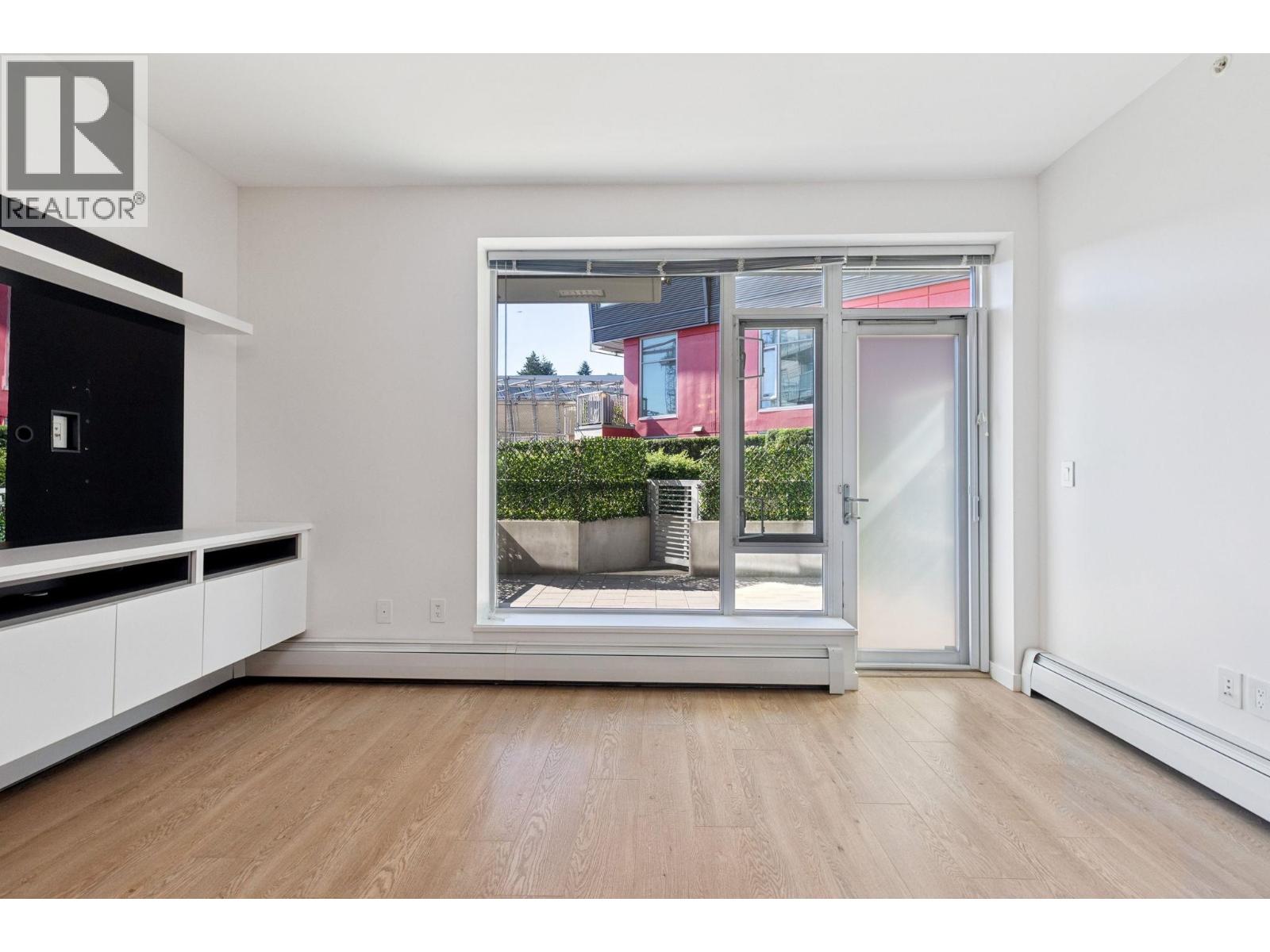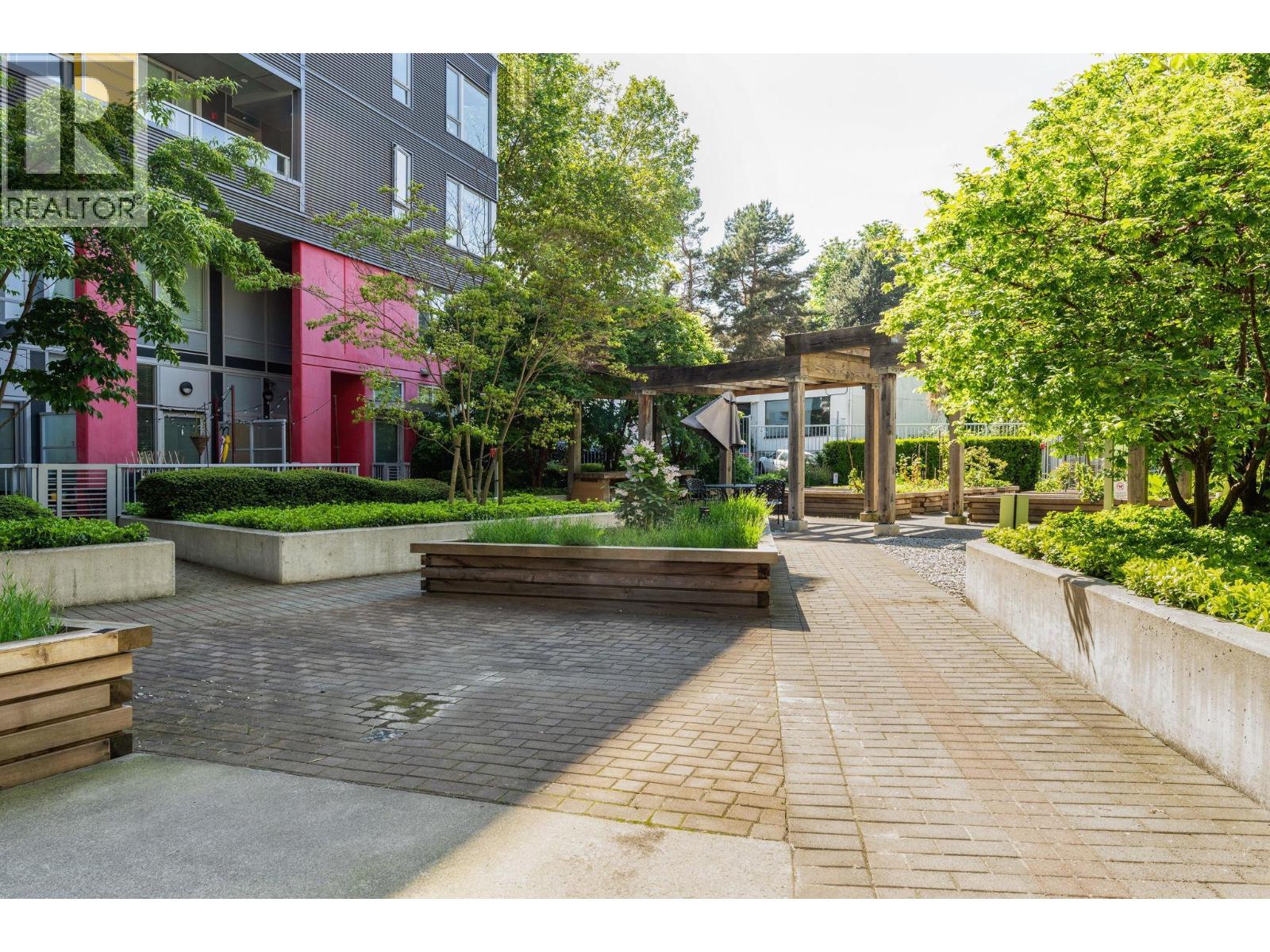 SUNNY GARDEN TERRACE HOME AT CANVAS. This contemporary 1 bedroom home is super functional and charming. Appreciate a chef's kitchen with full sized, stainless steel appliances including gas cooktop, over-height cabinetry and stone counters, flowing on durable laminate flooring into the dining area with movable island and living room with built-in media centre leading onto the sunny 182SF terrace with private entry/gas hook-up. This urban home features 9' ceilings and spacious bathroom with oversized vanity, deep soaker tub and in-floor radiant heating. Extensive amenities include fitness centre, lounge, garden and workshop. Includes 1 parking & 1 storage locker. Steps to Mount Pleasant's best restaurants, breweries, Seawall and new SkyTrain at Email Carr. *OPEN HOUSE SEPT 28, SUN 2-4PM* (id:58403)