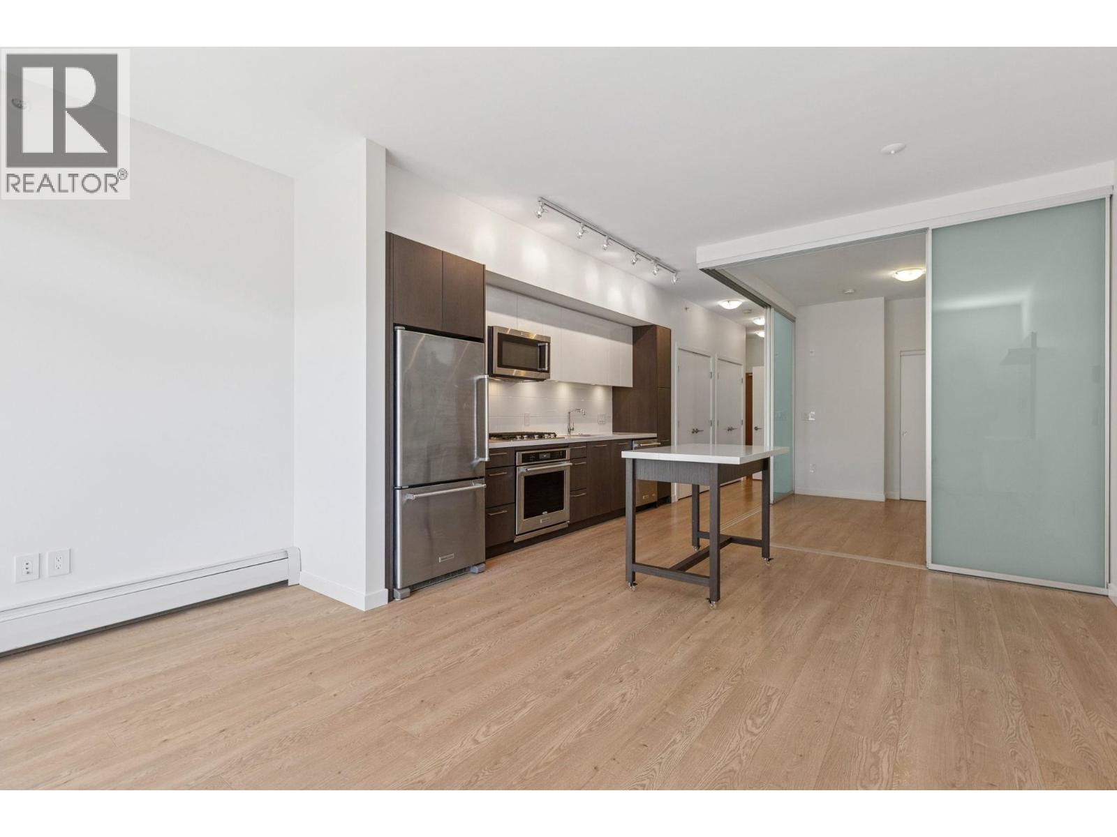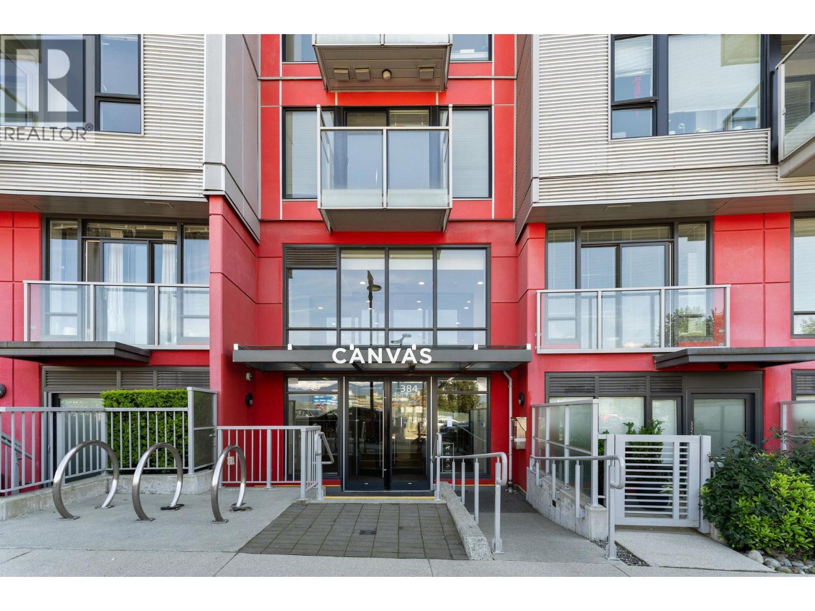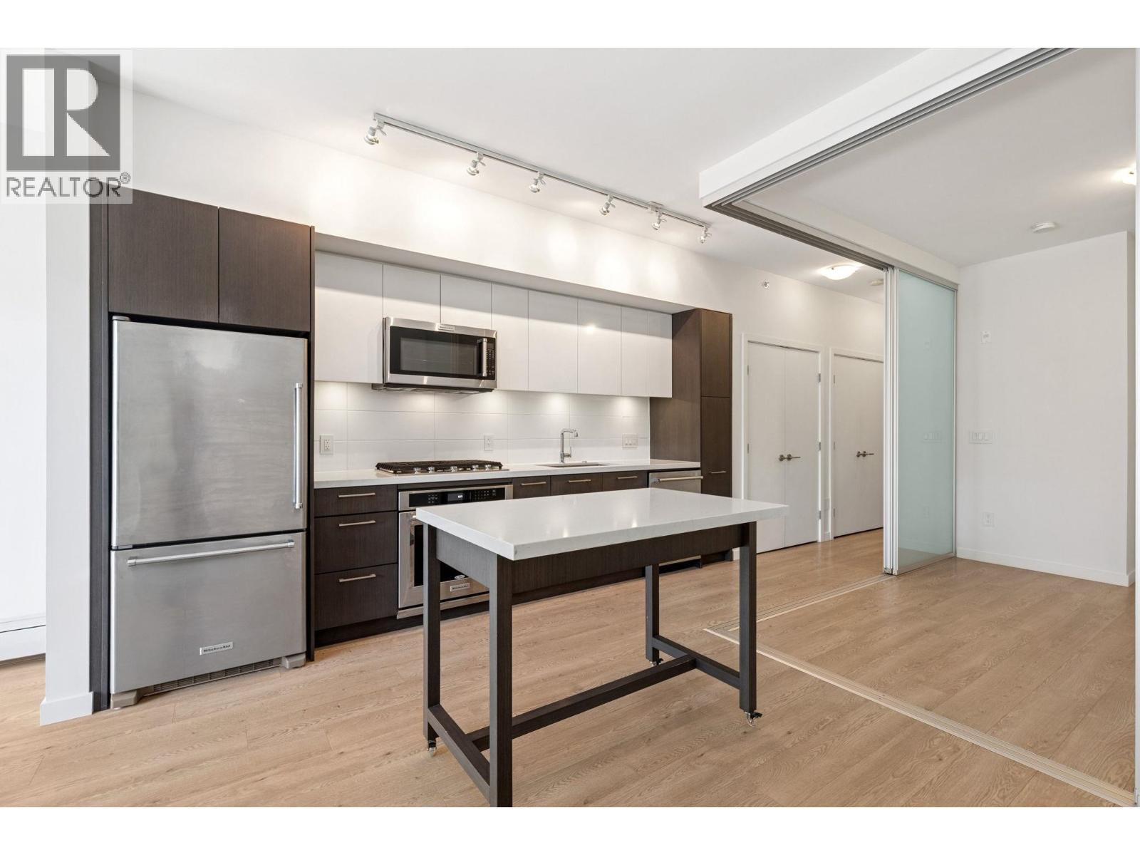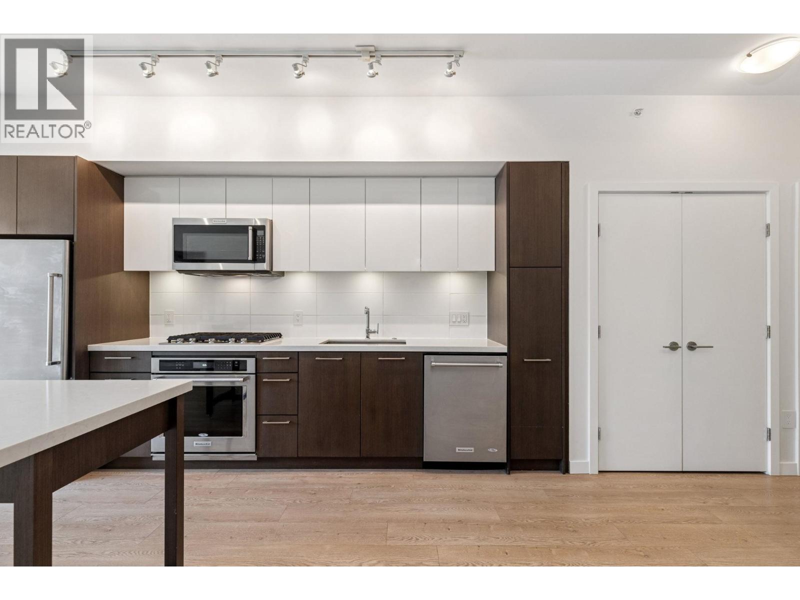 SUNNY GARDEN TERRACE HOME AT CANVAS. This contemporary 1 bedroom home is super functional and charming. Appreciate a chef's kitchen with full sized, stainless steel appliances including gas cooktop, over-height cabinetry and stone counters, flowing on durable laminate flooring into the dining area with movable island and living room with built-in media centre leading onto the sunny 182SF terrace with private entry/gas hook-up. This urban home features 9' ceilings and spacious bathroom with oversized vanity, deep soaker tub and in-floor radiant heating. Extensive amenities include fitness centre, lounge, garden and workshop. Includes 1 parking & 1 storage locker. Steps to Mount Pleasant's best restaurants, breweries, Seawall and new SkyTrain at Email Carr. *OPEN HOUSE SEPT 28, SUN 2-4PM* (id:58403)