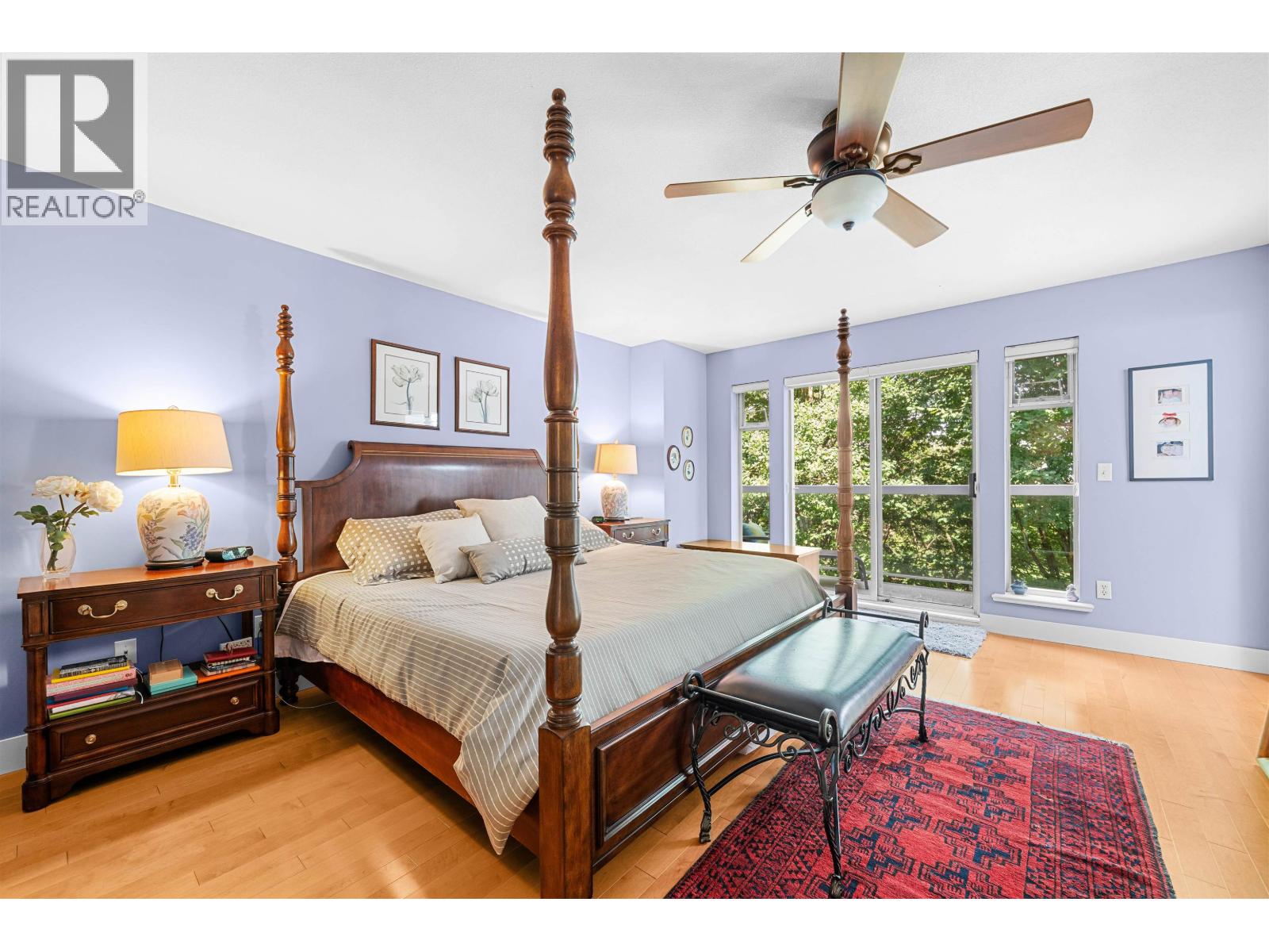 Spacious 2700sf Duplex Style Townhouse backing onto Glenbrook Ravine park! Fantastic opportunity to own a Large 3 Bed, 4 Bath, 3 Level, End-Unit Townhouse, with 2 car garage (+2 additional parking in front). Great location in the complex, backs onto greenbelt, with views of the Fraser River. Outdoor living with 3 Balconies, covered patio & private backyard. Beautifully updated kitchen & bathrooms, hardwood floors, lighting & brand new boiler. 3 Bed, 2 Bath Up. Walkout Basement with large Rec Room & Bath (w/ shower rough-in) leading to ground level patio/yard. Quiet, no through traffic, convenient access to parks, schools, shopping & transit. Building envelope upgrade (full rainscreen) scheduled for 2026, long-term peace of mind and enhanced future value! (id:58403)