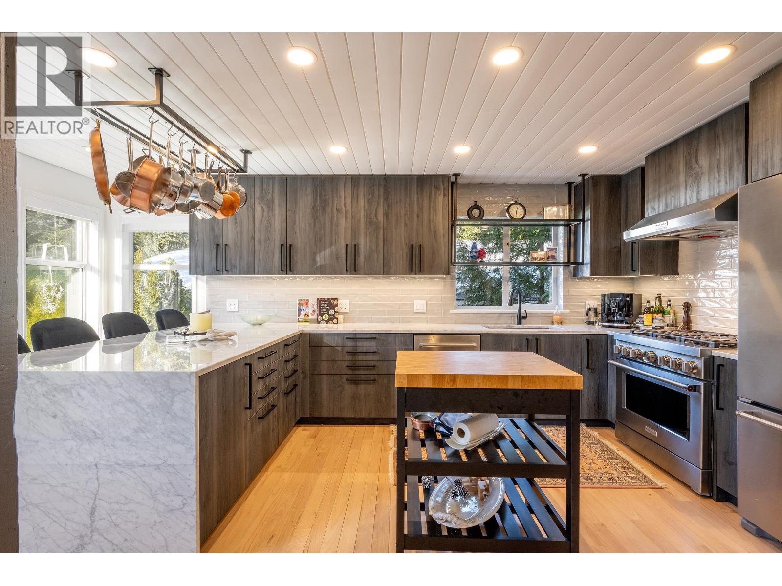Walk in and you immediately feel it. This is a home that´s been cared for, upgraded, and enjoyed. Vaulted ceilings open up the main living space while natural light pours in, giving the room a calm, welcoming energy. The gas fireplace anchors the space, perfect for winter evenings after skiing or quiet nights when the snow starts to fall. The kitchen is the heart of the home and it shows. Fully custom from top to bottom, every detail was intentionally chosen - custom cabinetry, Carrera marble countertops, under-cabinet lighting, and carefully selected hardware that ties it all together. It´s both beautiful and practical, designed for real living, entertaining, and everyday comfort. Step outside and you´re surrounded by nature. A private, two-tiered deck creates a true outdoor retreat, complete with a hot tub tucked among mature fir trees and natural rock. It´s peaceful, private, and unmistakably Whistler - a place where mornings are quiet, evenings are relaxed, and time slows down just enough. (id:58403)