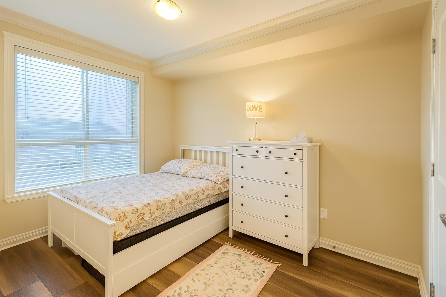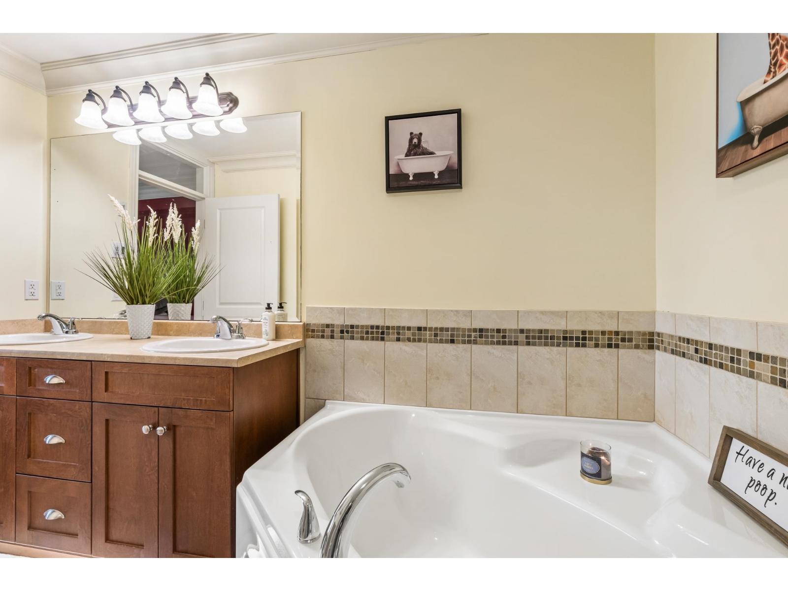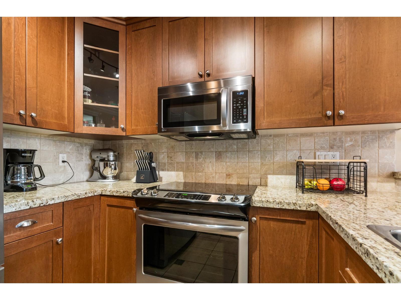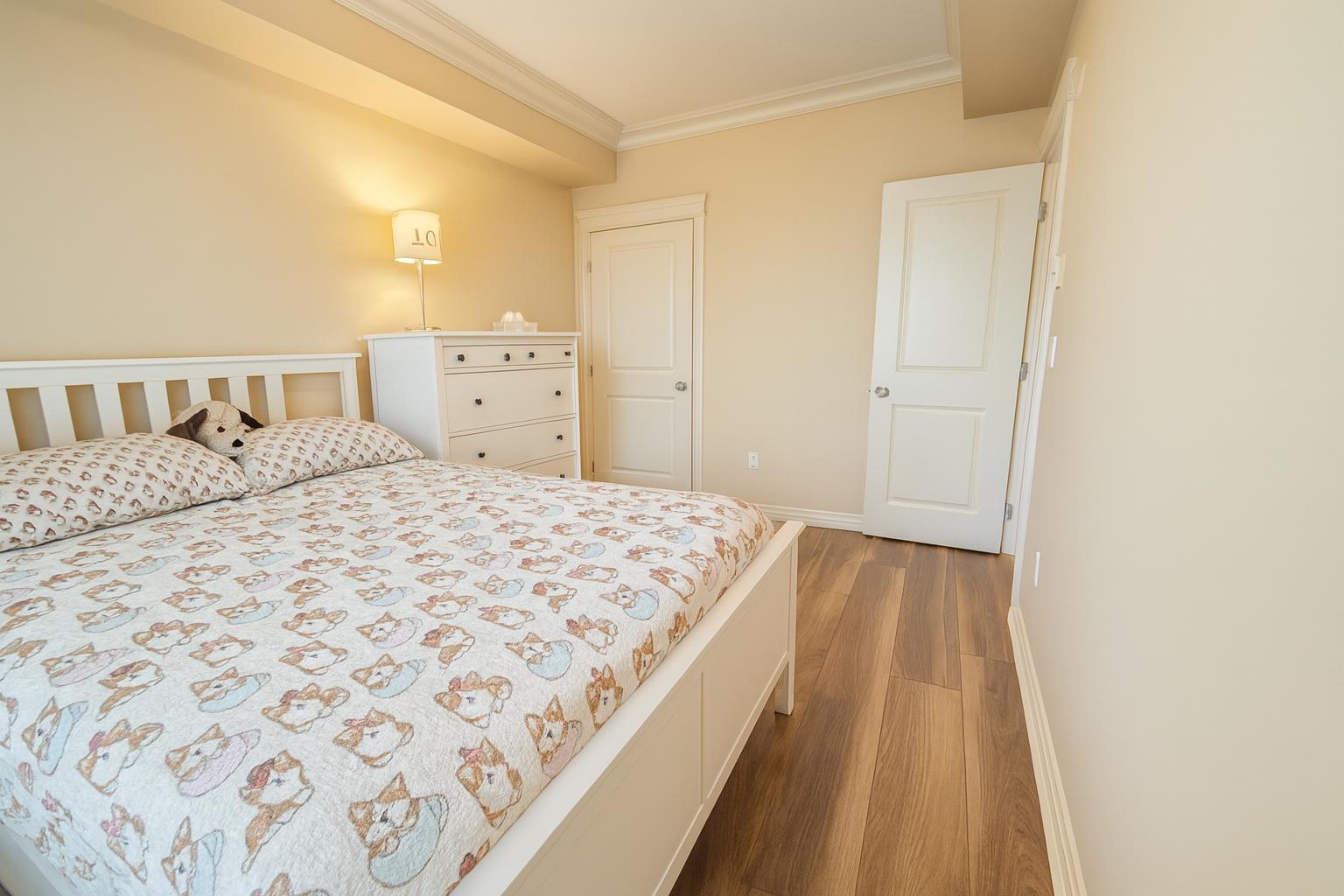 Immaculate, Modern & Move-In Ready! Tucked inside a quiet, gated community, this quality-built 2 bed, 2 bath home checks every box. With 9' ceilings, a cozy stone fireplace, crown mouldings, & sun-filled windows, the open layout feels bright & inviting. The kitchen boasts granite counters & flows into a rare oversized laundry room with pantry & extra storage, a true bonus! Both bedrooms are generous in size; the primary easily fits a king bed & features a walk-in closet + spa-inspired ensuite with soaker tub, double sinks & heated floors. Recent updates include a new washer/dryer, hot water tank & flooring. Step out to your west-facing balcony and enjoy peaceful sunsets. Well-managed strata with NEW ROOF, LOW strata fees. Walk to shops, transit, schools & recreation. (id:58403)