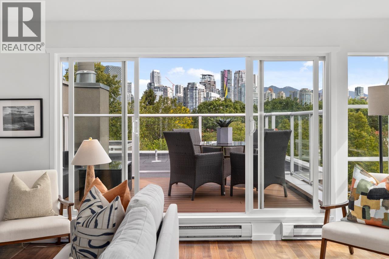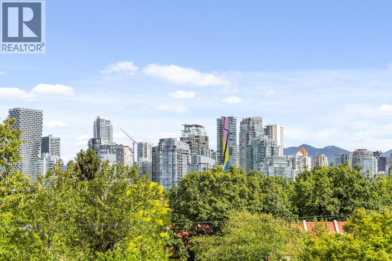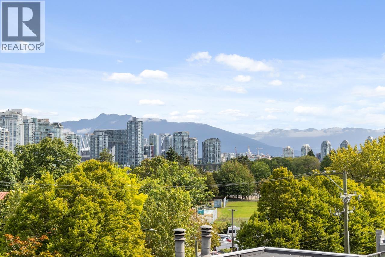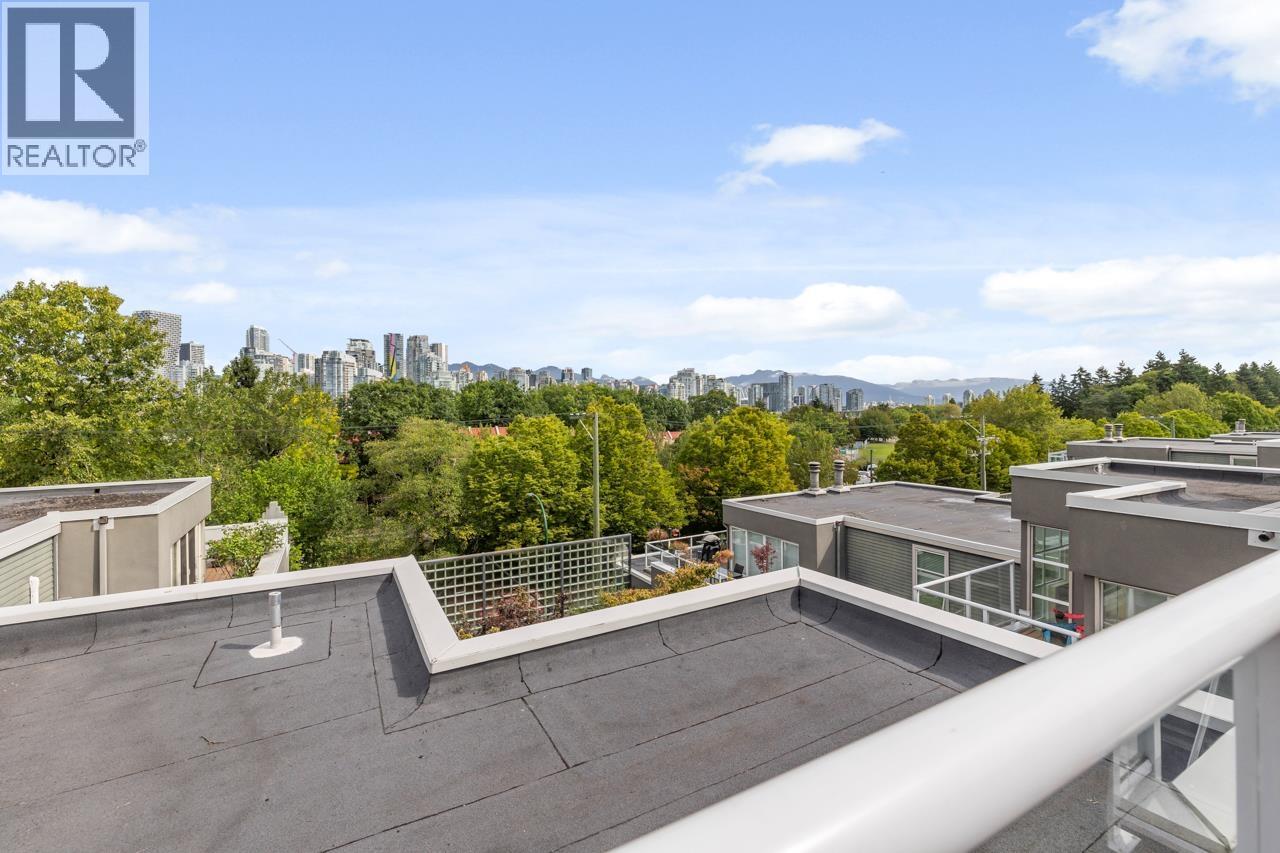 Gorgeous 3 bedroom + media-rec room/office townhouse. Quiet, bright, corner, lane-side home with South, East & north exposure. Excellent 3 level plan provides great separation for a busy family or working from home. Bedrooms & media/rec room are privately situated below the open plan sky lit top floor featuring sunny kitchen, spacious dining & x-large living room with panoramic mountain & city views. Double glass sliders extends the living area onto the wonderful view deck. Own front door, direct street level split entry provides convenient entry & exit, perfect for teens or visiting clients. House-like with loads of storage. Central & convenient to transit, Granville Island, False Creek's Charleson Park, Broadway shops, restaurants, 4 blks to new subway station. This is unique and special. (id:58403)