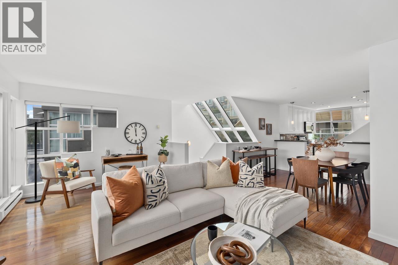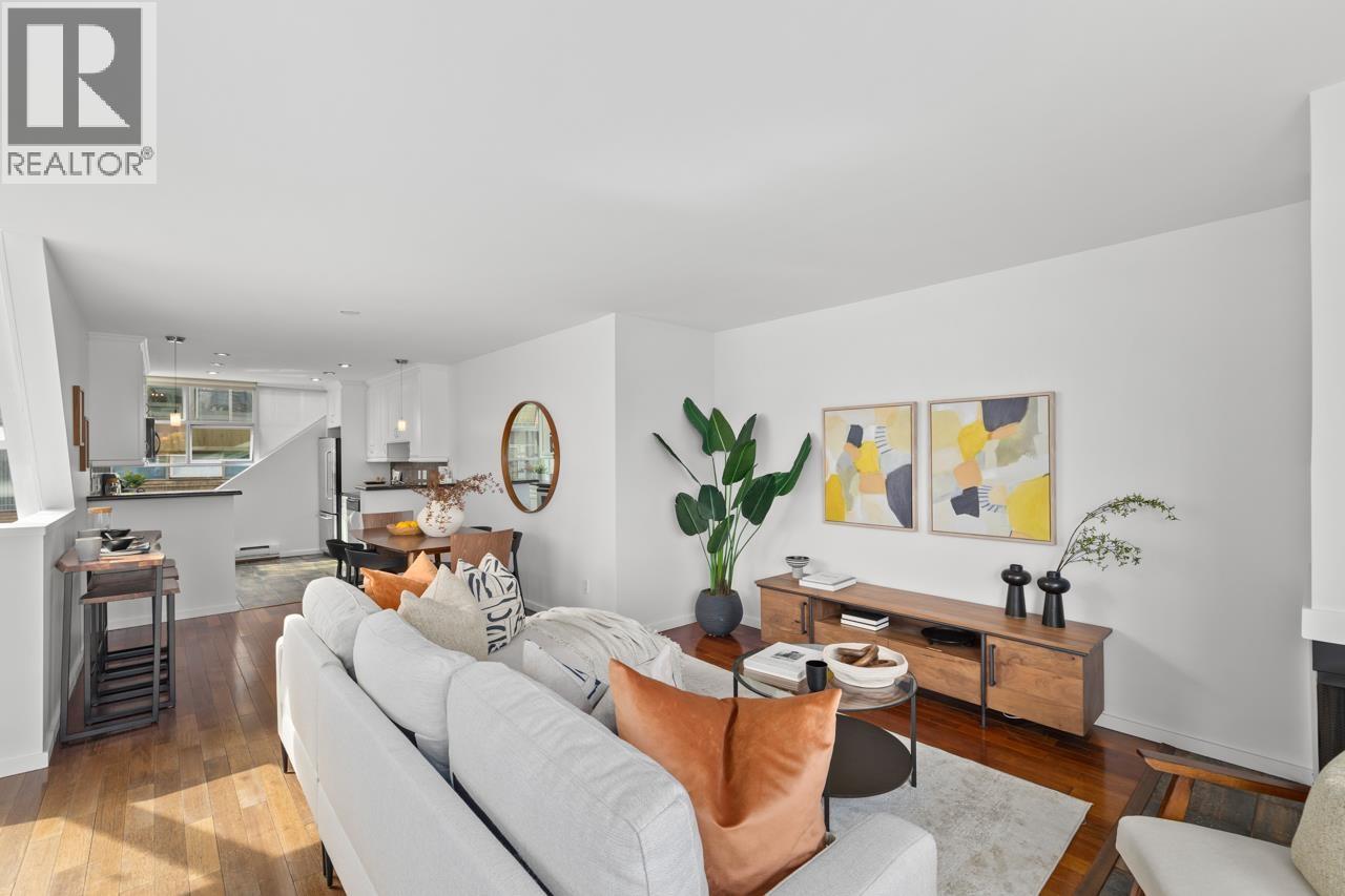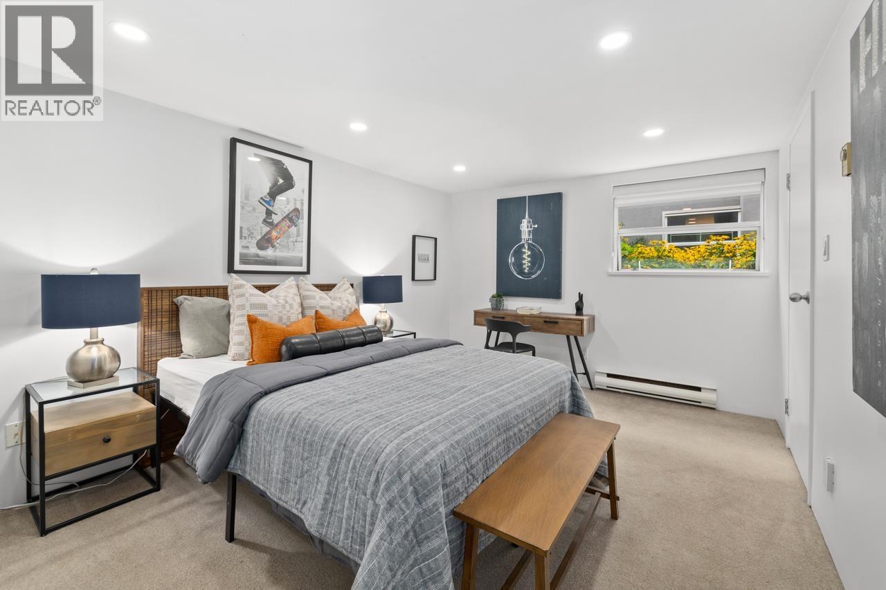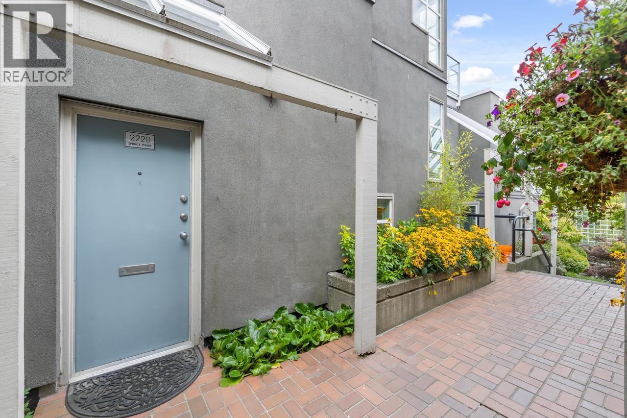 Gorgeous 3 bedroom + media-rec room/office townhouse. Quiet, bright, corner, lane-side home with South, East & north exposure. Excellent 3 level plan provides great separation for a busy family or working from home. Bedrooms & media/rec room are privately situated below the open plan sky lit top floor featuring sunny kitchen, spacious dining & x-large living room with panoramic mountain & city views. Double glass sliders extends the living area onto the wonderful view deck. Own front door, direct street level split entry provides convenient entry & exit, perfect for teens or visiting clients. House-like with loads of storage. Central & convenient to transit, Granville Island, False Creek's Charleson Park, Broadway shops, restaurants, 4 blks to new subway station. This is unique and special. (id:58403)