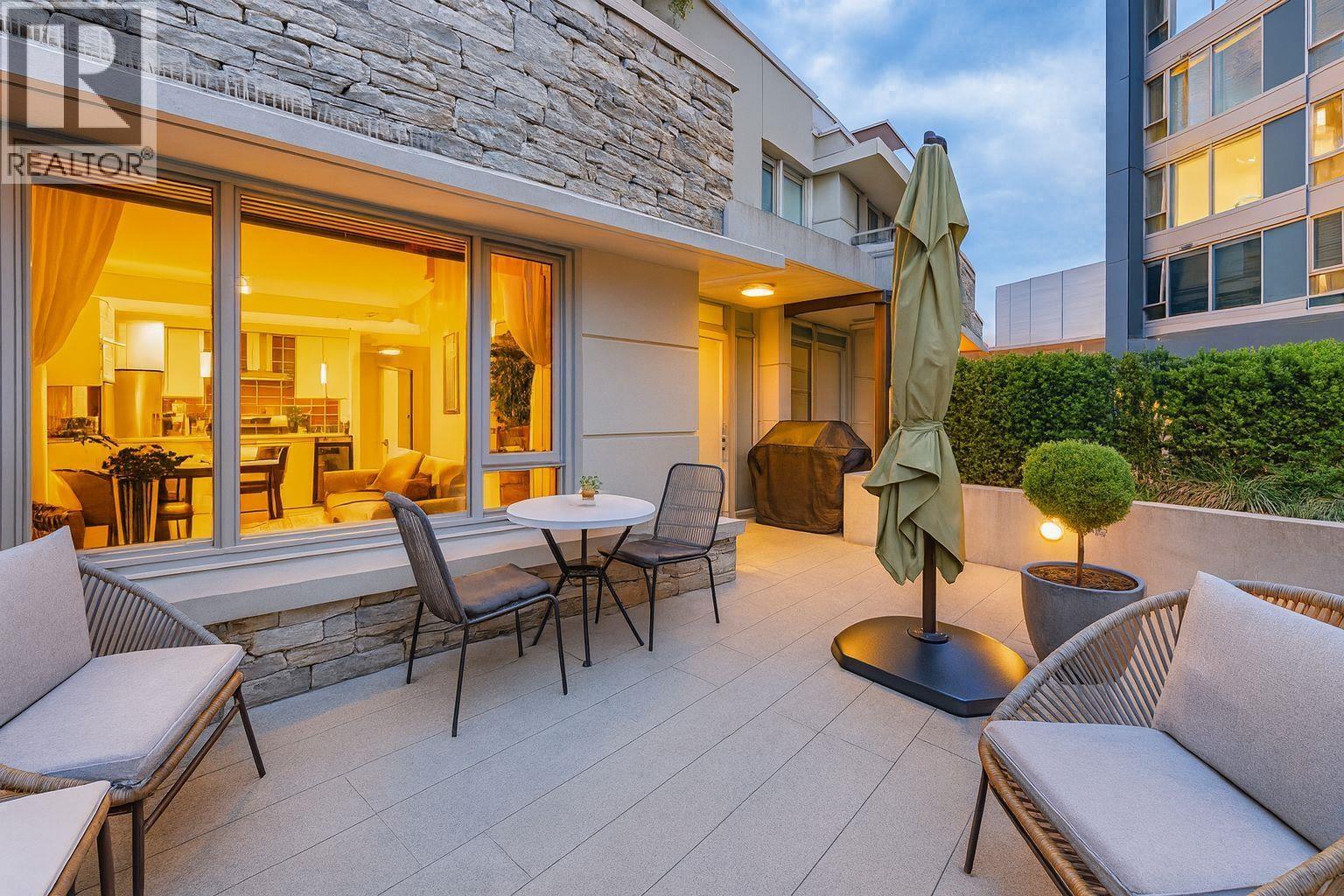 Repriced & Motivated Seller! Rare downtown oasis-exceptional 3-bed, 3-bath townhome offering luxury, privacy & tranquility. 1442 square ft interior + 753 square ft outdoor space including rooftop patio, courtyard & master balcony. Quiet side of building-away from SkyTrain. No neighbors above/below; thick walls ensure peace. Renovated with modern finishes, smart switches & open living/kitchen with flex for office/nursery. Resort-style amenities: lap pool, jacuzzi, sauna, gym, 24-hr concierge & security. Pet & rental friendly. Two parking, oversized locker & in-suite storage. Listed well below assessed value, fully furnished, easy to show! (id:58403)