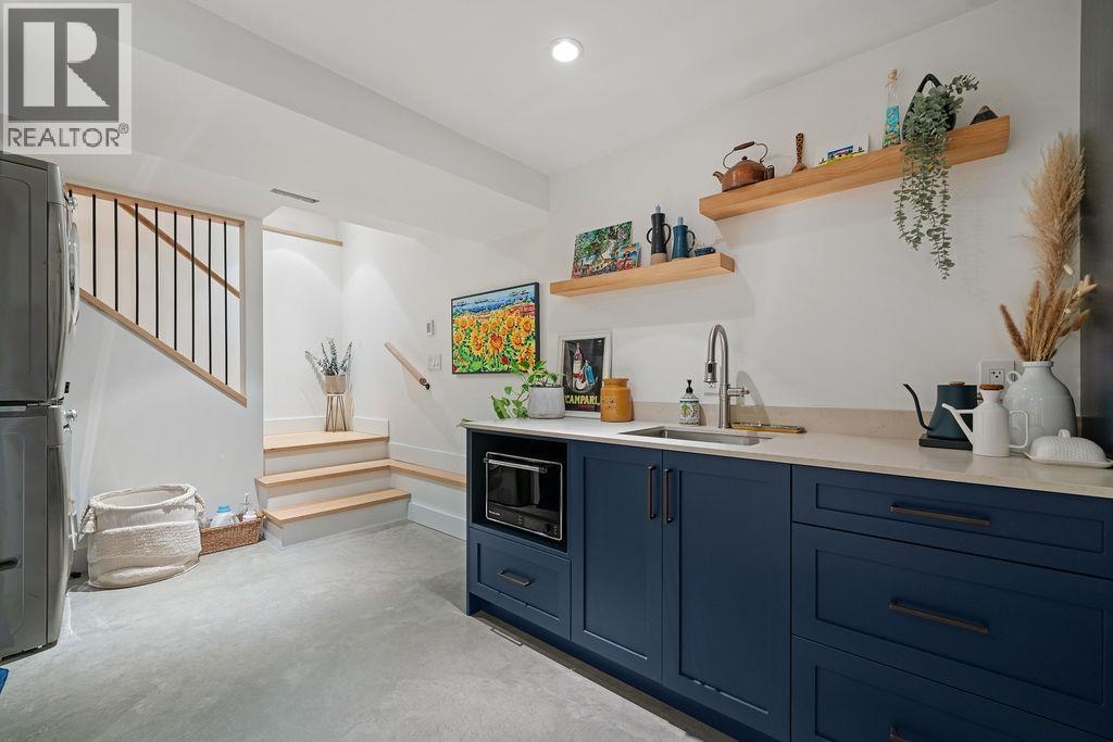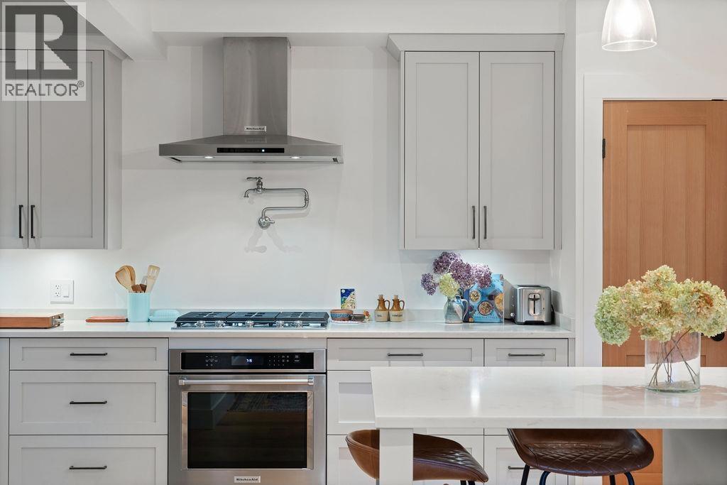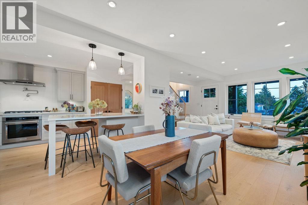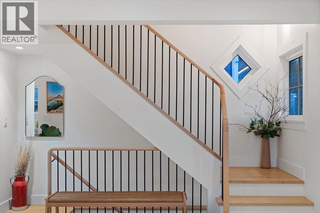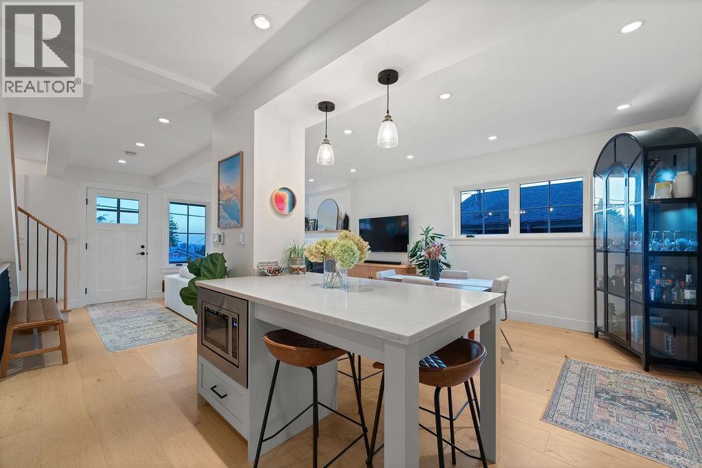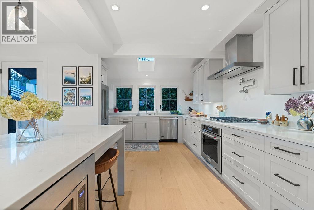 This extensively renovated home has been meticulously upgraded over the past 8 years, with nearly every component renewed-plumbing, electrical, insulation, drywall, windows, cedar shingle siding, and high-end custom finishes throughout. Inside, it features engineered wide-plank white oak flooring and heated polished concrete on the lower level. A Rinnai on-demand hot water system and air-handling furnace provide year-round efficiency and comfort. The kitchen is a showstopper with solid maple millwork, stone countertops, a large island, and premium KitchenAid and Viking appliances. The spa-like primary bath includes NuHeat in-floor heating, a frameless glass shower, stone soaker tub, and a bespoke double vanity. Enjoy panoramic ocean, city, and English Bay views from multiple sun-drenched decks. The lower level offers suite potential with its own kitchen, bath, and entry. A drivable grass driveway, new LG laundry, lush landscaping, and carport complete this exceptional property. (id:58403)