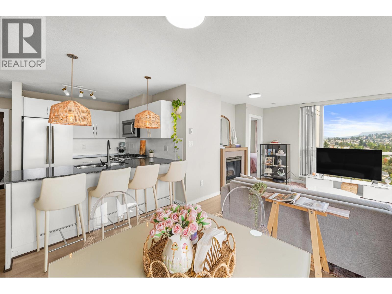 Beautiful Mountain & City Views: 2 bed 2 bath 915sf North East Corner unit! Bonus 2 parking! Fantastic open concept floorplan with floor to ceiling windows showing off stunning city & mountain views & features stone counters, kitchen aid cafe series & Forno appliances, wide plank laminate flooring through the spacious living/dining rooms.2 good sized bedrooms on opposite sides of the unit, including a fantastic primary suite with walk in closet & 4 pce ensuite! Great building built by Ledingham McAllister & amenities incl gym, hot tub, party room & meeting area. One of the most desired locations in the city: just steps to the skytrain, Amazing Brentwood Mall, restaurants, shopping, cafes, parks, schools. 2 parking & 1 storage. Strata installed 4 EV parking stalls. (id:58403)
