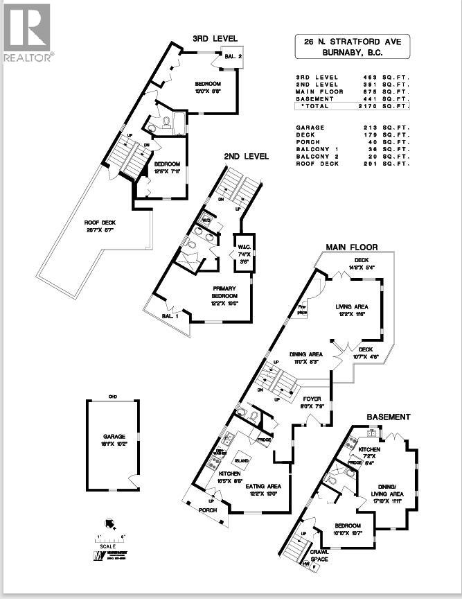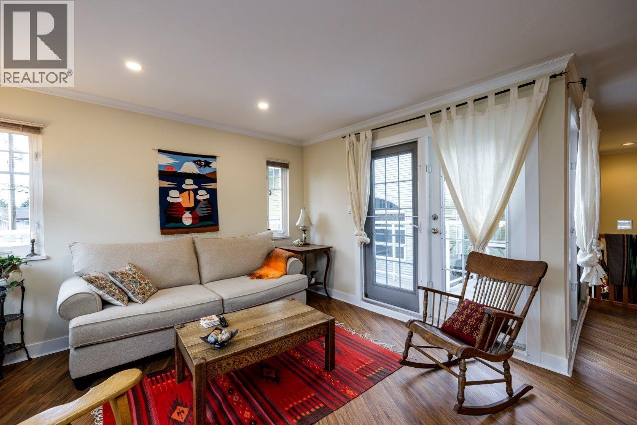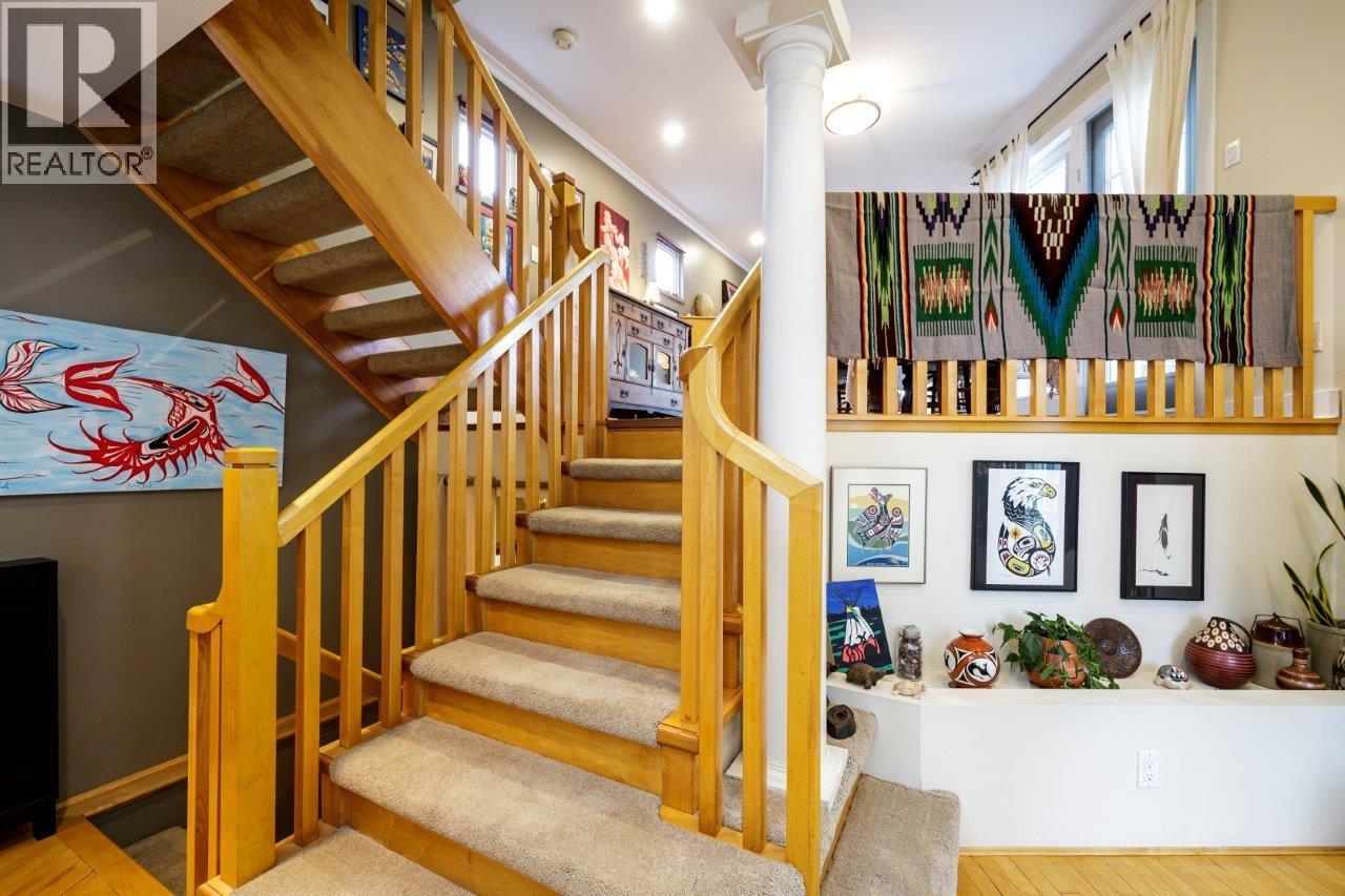 Beautiful detached home in quiet Capital Hill area with panoramic views of Burrard Inlet and Burnaby Mountain from a large 300 sf rooftop deck. This West Coast Contemporary three story designed home has four bedrooms and four bathrooms, including a one bedroom walk out suite. Great indoor/outdoor living with multiple decks and balconies on all floors. Other features include a large kitchen with an island and separate eating area, high vaulted ceilings, in-floor radiant heat, a gas fireplace to cozy up to in the living room, French doors in the dining room, and wood floors. Lane access to a one car garage and carport. Updates include windows, deck surfaces, painting and exterior siding. Central location close to amenities, recreation, walking trail, and great schools. Easy to show. Great value! (id:58403)