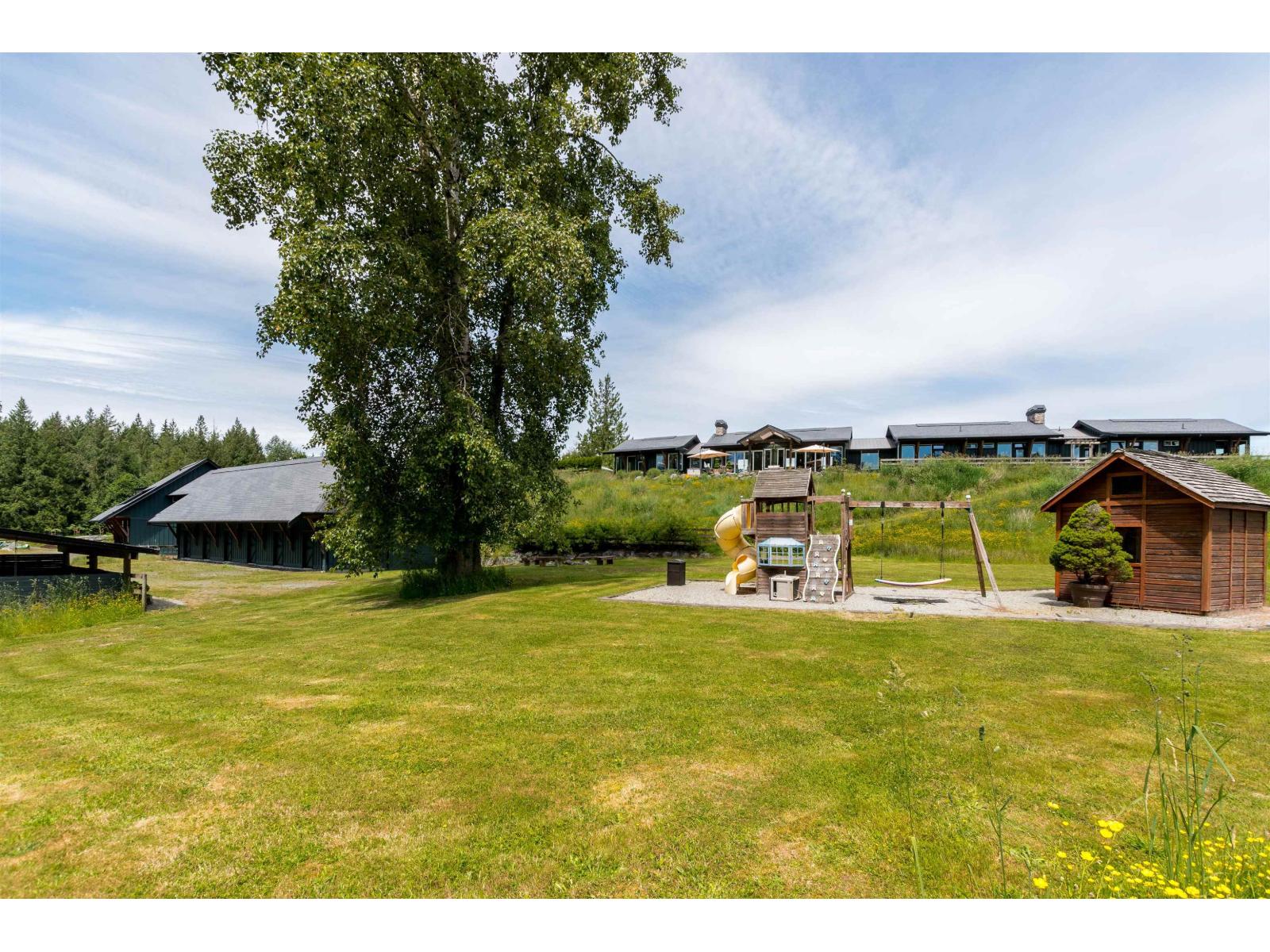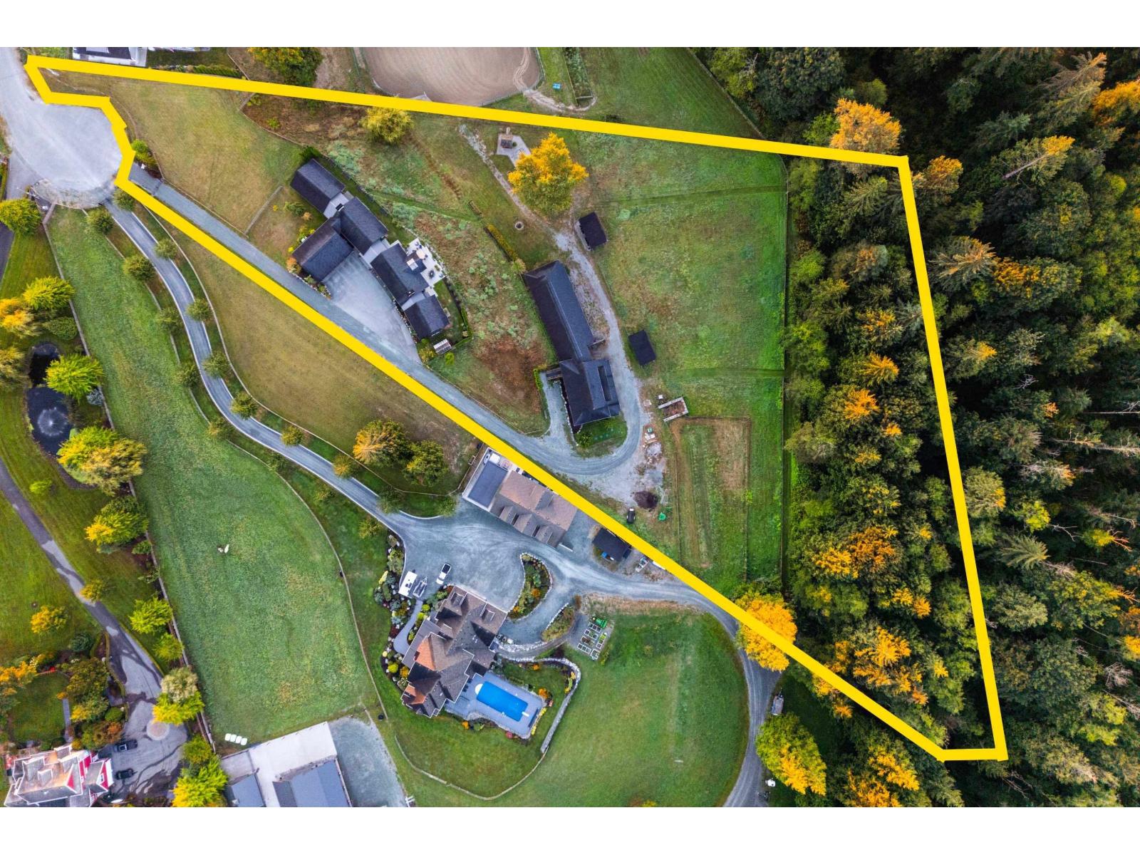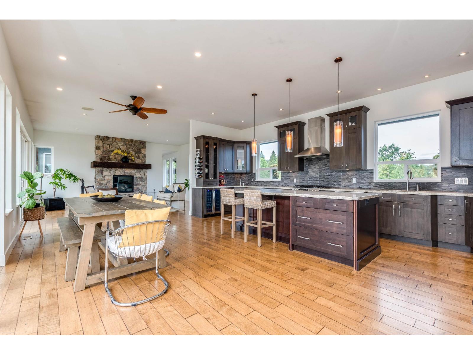 Experience country luxury living in this beautiful 4-bed rancher, perfectly set up for multi gen life or hobby farm dreams. Gourmet chef's kitchen features gas stove, breakfast bar & flows seamlessly into open-concept living. Boasting 3 ensuites, including his & hers walk-in closets & private den. Rich wood & tile flooring throughout, A/C, natural gas BBQ hookup, generator, 2 hot water tanks & UV water filter add comfort. Fresh paint inside (2025) & out (2024), triple attached garage, S facing patio & an impressive 32x28 workshop (200amps, 10' ceilings) for car buff/RV. Separate 2-bed unauth suite offers flexibility for extended family, guests/income. 7-stall barn includes in/outs, hay loft, tack room, etc. Mins to Thunderbird Show Park & backing onto 160 acre park & salmon spawning stream (id:58403)