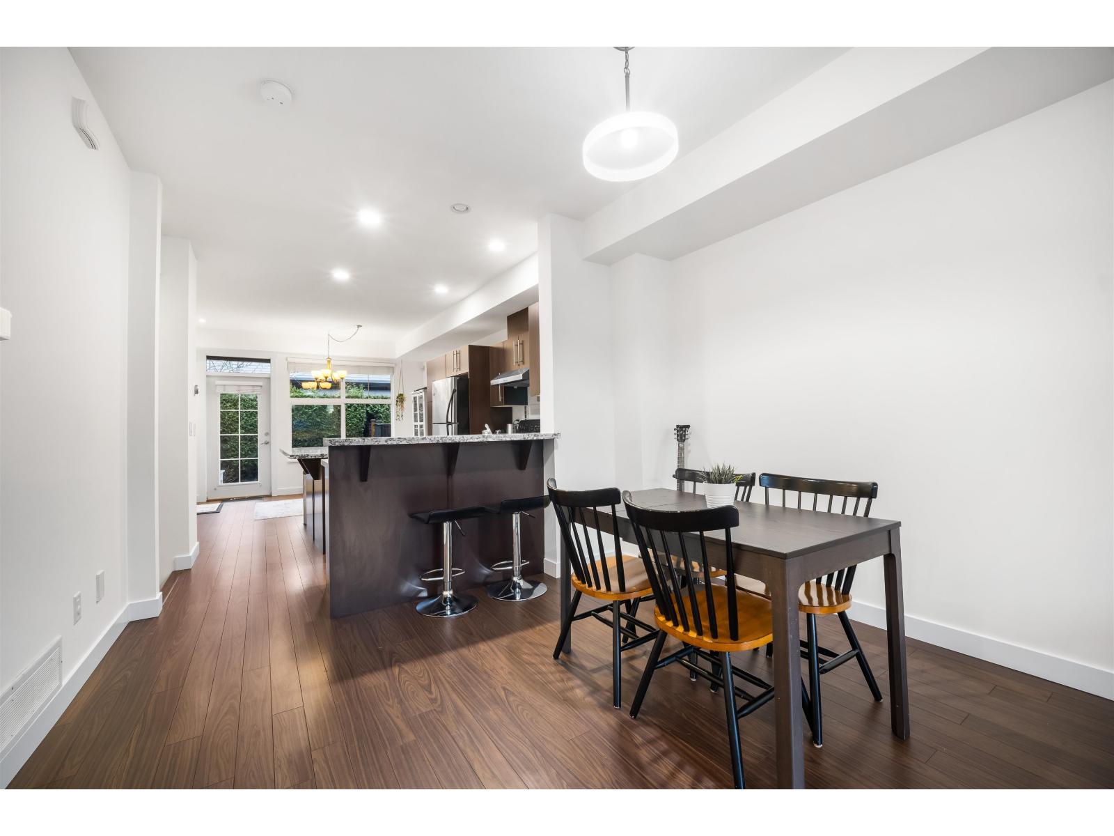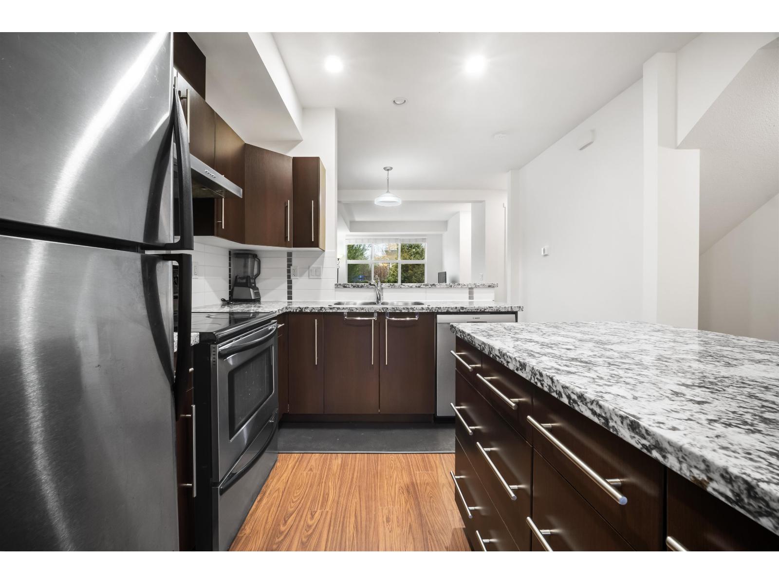 Bright and spacious 4 bed home offering over 1,700 sqft of thoughtfully designed living space in a fantastic location! Built for today's lifestyle, it features 9' ceilings and a bright open-concept layout. The kitchen shines with granite counters, stainless steel appliances, island, pantry, and eating bar-perfect for entertaining. The cozy family room with gas fireplace opens to a fully fenced south-facing backyard with a generous patio. Upstairs offers 3 bedrooms and 2 full baths, including a large, spacious primary suite. A 4th bedroom/office below adds flexibility. Major 2024 upgrades: luxury vinyl flooring, A/C, furnace & heat pump with 10-year warranty, and new hot water tank. Freshly painted in 2026. Conveniently located near shopping, schools and new SkyTrain line. Open House Sunday March 29 (2-4PM)! (id:58403)