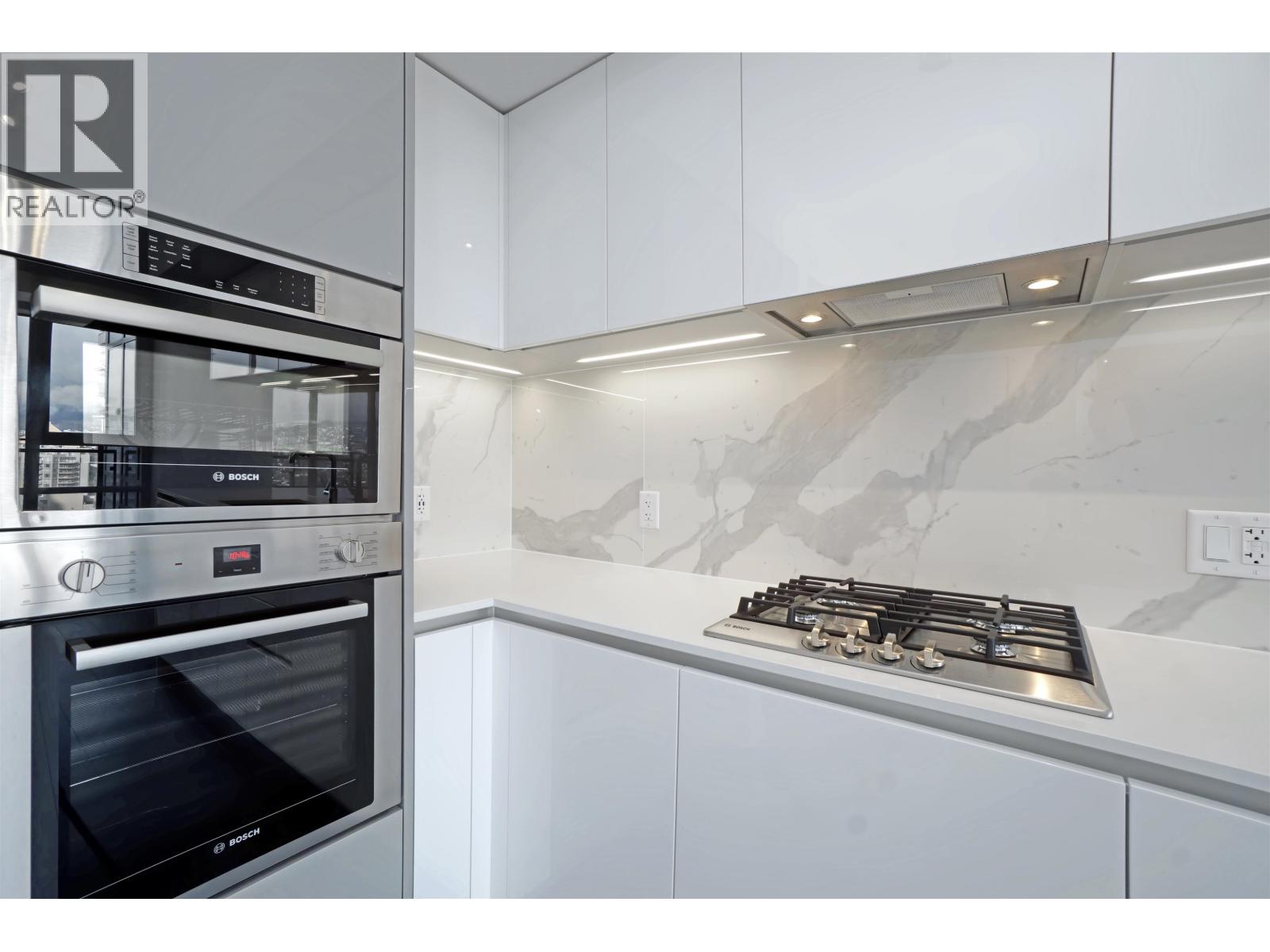 Cirrus at Solo District in Brentwood. Steps to Whole foods, new Brentwood Mall, skytrain station, restaurants, stores and etc. This high level stunning 1-bed + den offers panoramic mountain and city views with top of the line interiors finishing. Morden kitchen with stainless steel Bosch professional lines appliances, Italian Armony Cucine cabinetry, quartz counter-tops, wall oven and tons of storage space. Air condition keeps the room comform all year long. Great layout with spacious size in every room, large bathroom, huge balcony. LEED gold standard building with top of class quality. Amenities include exercise room, lounge, outdoor garden and BBQ, and 24-7 concierge services. 1 Parking & 1 Locker included. Open House: Mar 28, 2-4PM (id:58403)