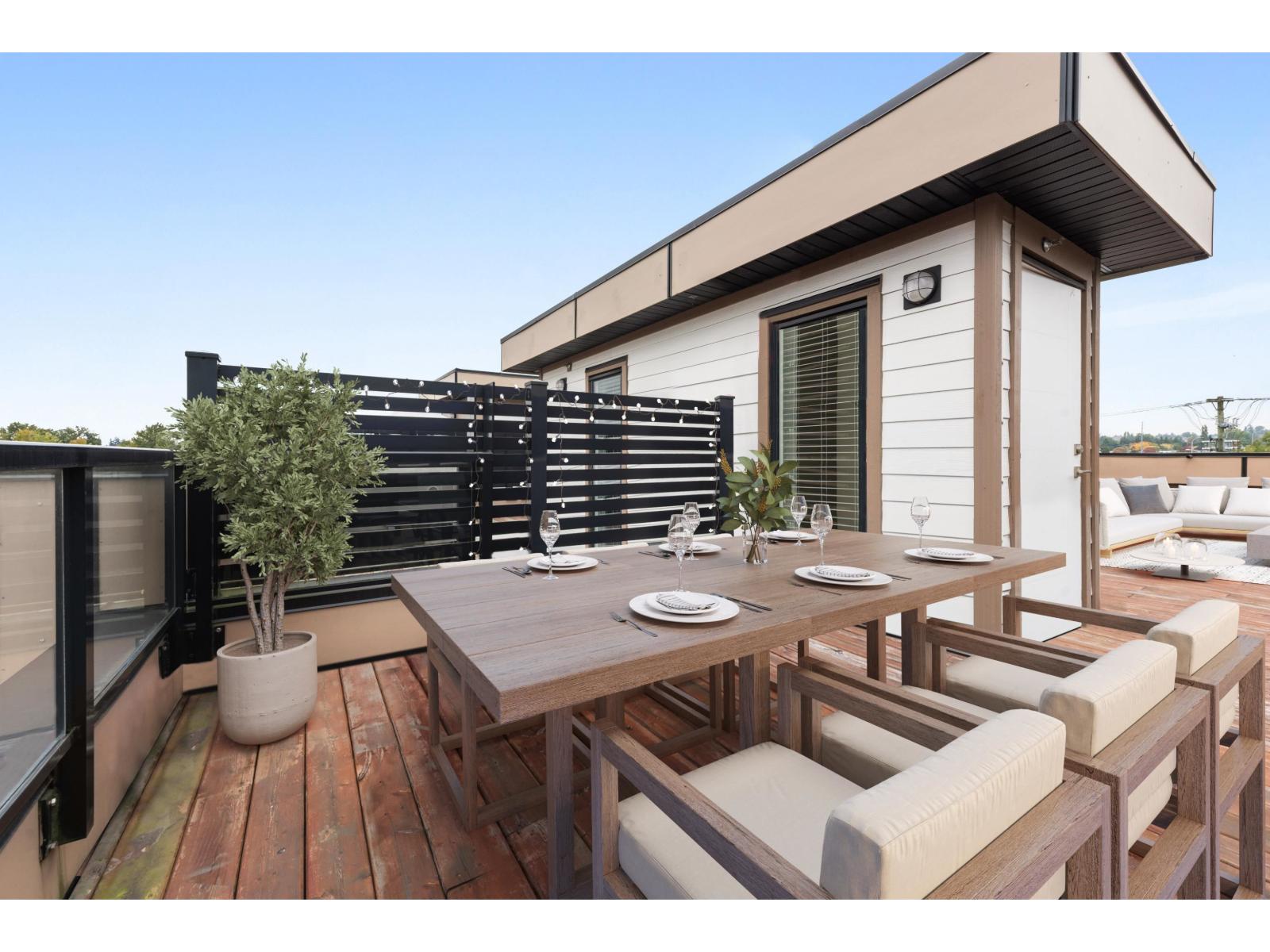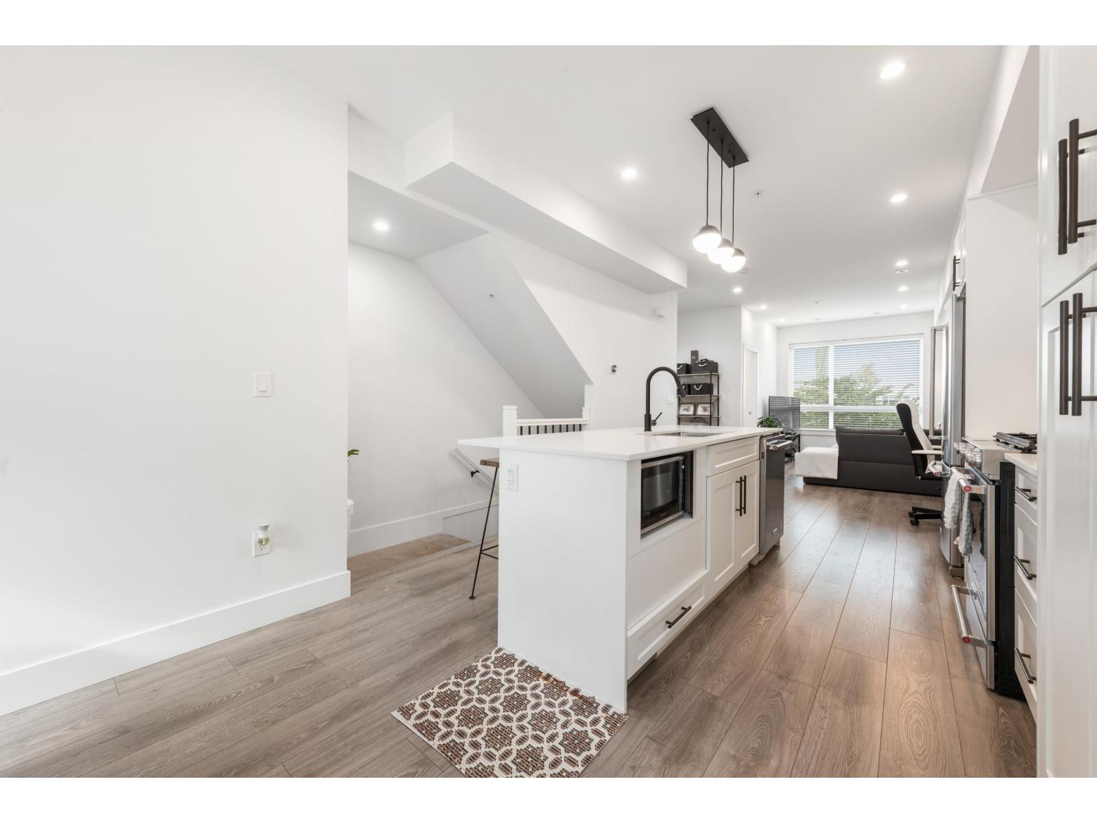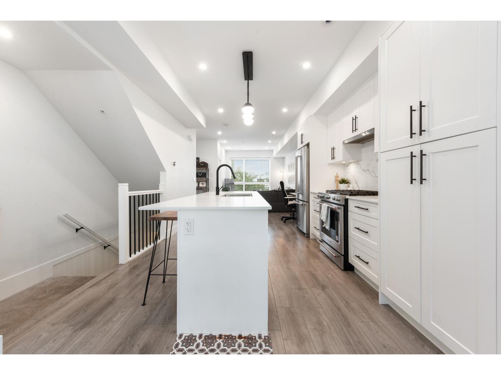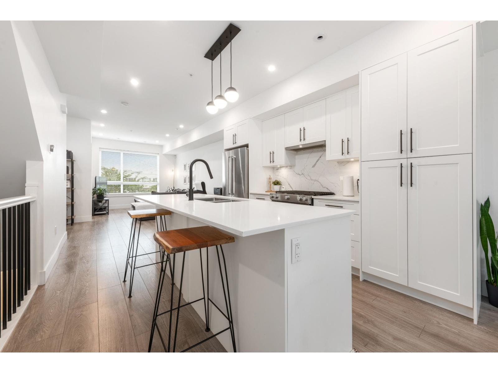 Welcome to Winston Terraces - a boutique collection of 26 thoughtfully crafted homes in the heart of Langley. This modern 2-bed, 3-bath townhome blends contemporary design with everyday comfort. The main floor features an open-concept layout with high ceilings, rich laminate flooring, & a stylish kitchen complete with quartz countertops, stainless steel appliances, & an oversized island perfect for entertaining. You'll also love the added comfort of air conditioning during the warmer months. Upstairs, enjoy two spacious bedrooms, including a bright primary suite with its own ensuite bath. Head up to your massive rooftop patio for morning coffees, sunset dinners, or weekend BBQs - an entertainer's dream! Ideally located just minutes from downtown Langley, shops, dining, parks, & Fraser Hwy, this home truly delivers the best of urban convenience & modern living. (id:58403)