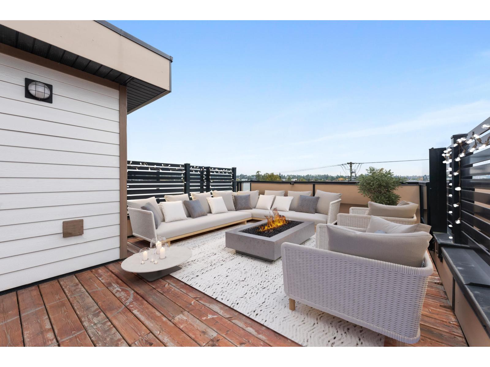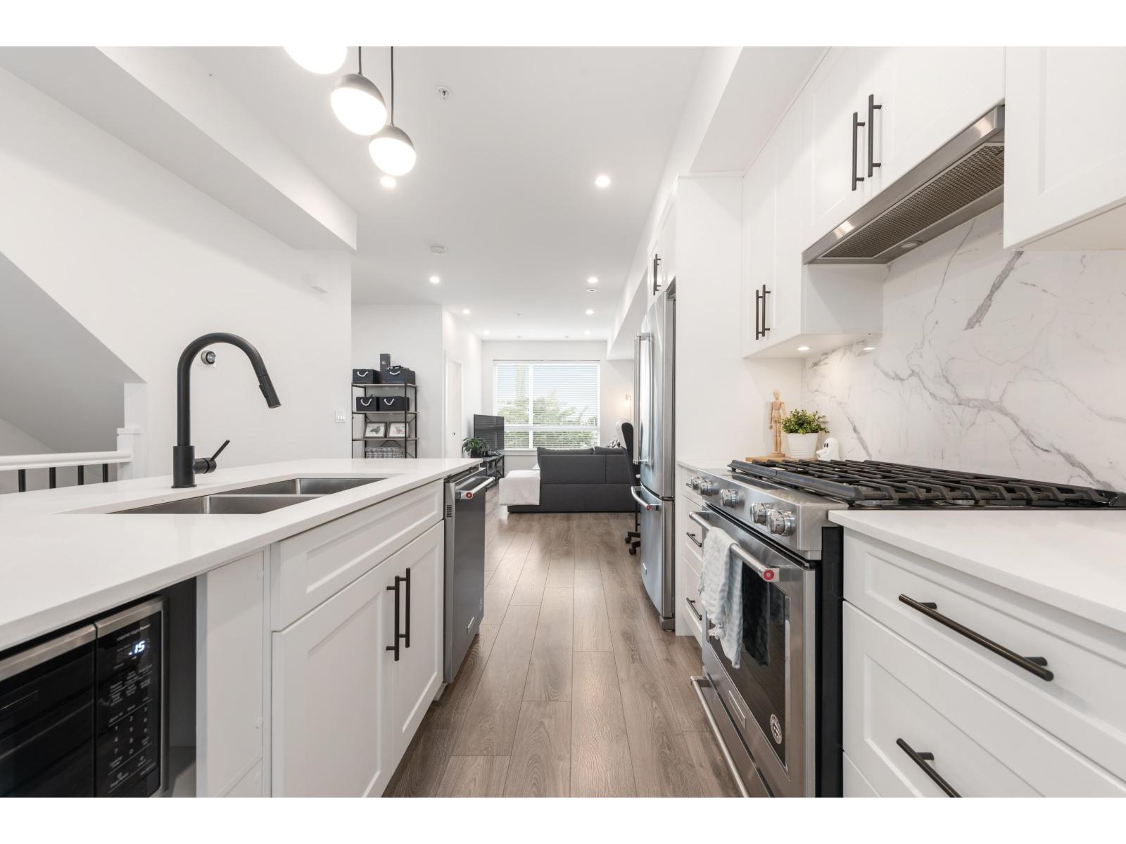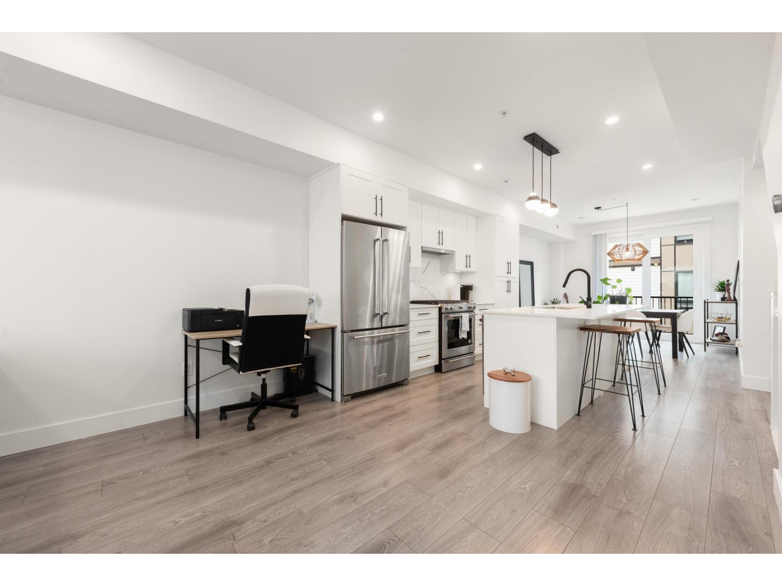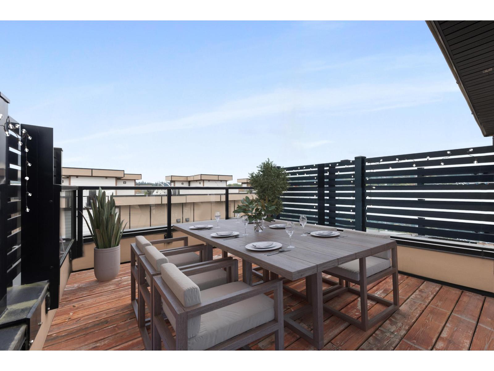 Welcome to Winston Terraces - a boutique collection of 26 thoughtfully crafted homes in the heart of Langley. This modern 2-bed, 3-bath townhome blends contemporary design with everyday comfort. The main floor features an open-concept layout with high ceilings, rich laminate flooring, & a stylish kitchen complete with quartz countertops, stainless steel appliances, & an oversized island perfect for entertaining. You'll also love the added comfort of air conditioning during the warmer months. Upstairs, enjoy two spacious bedrooms, including a bright primary suite with its own ensuite bath. Head up to your massive rooftop patio for morning coffees, sunset dinners, or weekend BBQs - an entertainer's dream! Ideally located just minutes from downtown Langley, shops, dining, parks, & Fraser Hwy, this home truly delivers the best of urban convenience & modern living. (id:58403)