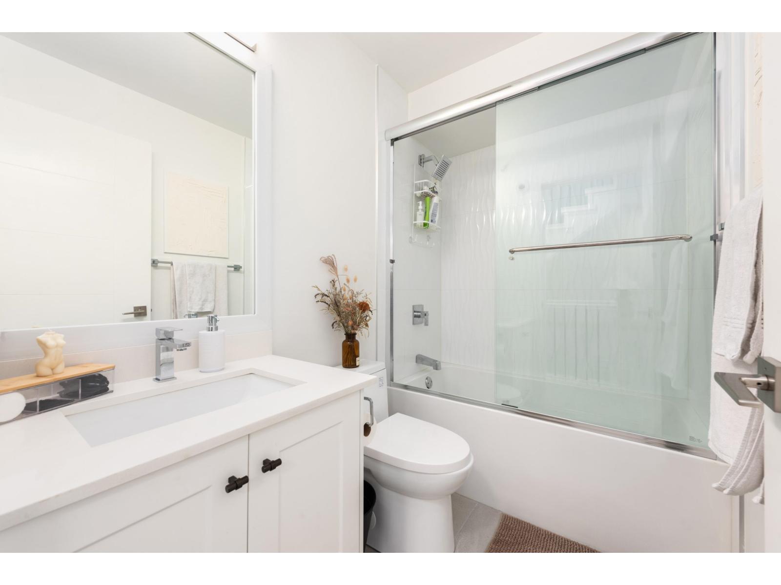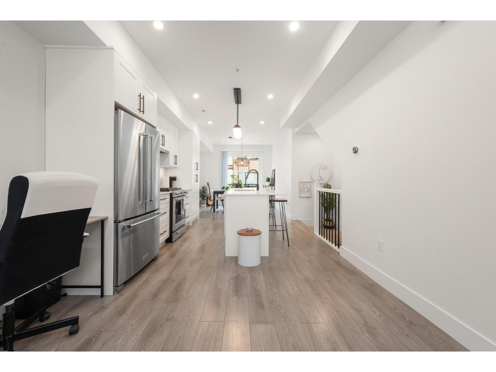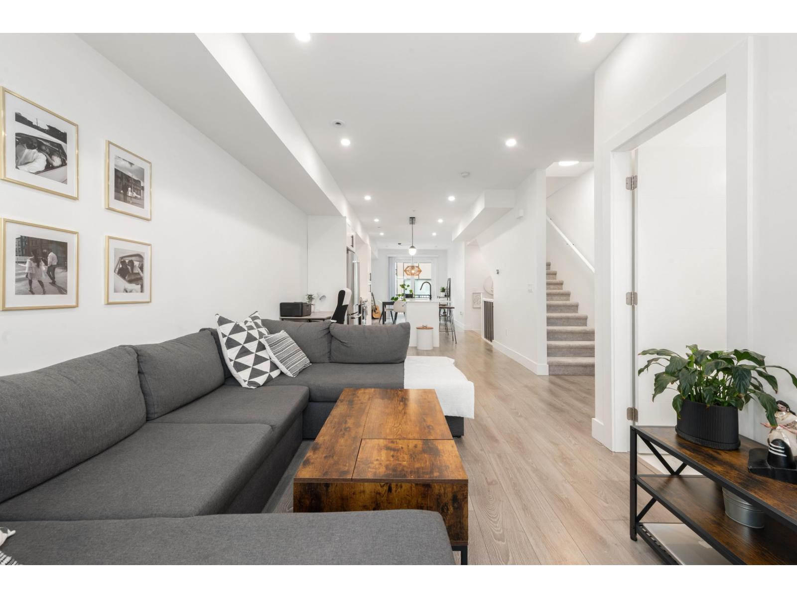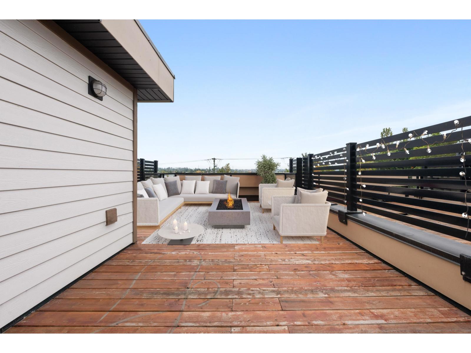 Welcome to Winston Terraces - a boutique collection of 26 thoughtfully crafted homes in the heart of Langley. This modern 2-bed, 3-bath townhome blends contemporary design with everyday comfort. The main floor features an open-concept layout with high ceilings, rich laminate flooring, & a stylish kitchen complete with quartz countertops, stainless steel appliances, & an oversized island perfect for entertaining. You'll also love the added comfort of air conditioning during the warmer months. Upstairs, enjoy two spacious bedrooms, including a bright primary suite with its own ensuite bath. Head up to your massive rooftop patio for morning coffees, sunset dinners, or weekend BBQs - an entertainer's dream! Ideally located just minutes from downtown Langley, shops, dining, parks, & Fraser Hwy, this home truly delivers the best of urban convenience & modern living. (id:58403)