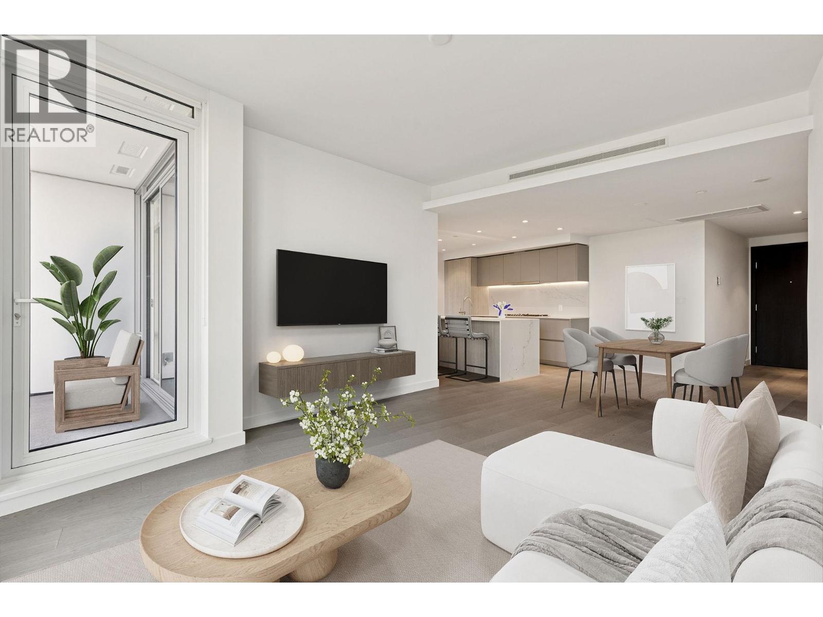 Privacy, views & space define this impressive 2-bed home overlooking a park with water, mountain, & Downtown Vancouver views. The well-designed layout offers a spacious primary bedroom with ensuite & walk-through closet, plus a 2nd bedroom with walk-in-closet. Enjoy TWO covered patios with a rare unobstructed outlook & gas hook up. The home features an upgraded Gaggenau appliance package, floor-to-ceiling triple glazed windows, elevated ceiling heights, heated tile bathroom floors, & A/C. The EXTRAS truly set this home apart: 2 parking stalls, incl. 1 EV-ready, a motorcycle stall, a private storage ROOM, an additional storage locker, and TWO bike lockers. Benefits include concierge, a guest suite, and access to Denna Club amenities (fitness centre, indoor pool, hot tub, steam, sauna, and more)! (id:58403)