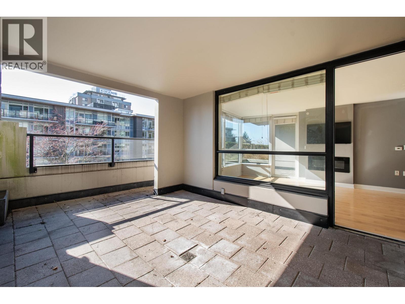 Welcome to The Envy in the heart of Lower Lonsdale. This rare one bedroom offers 703 square ft of well laid out living space plus an incredible 358 square ft south facing patio, much of it covered so it can be enjoyed year round. The open plan layout feels bright and airy thanks to an extra wall of windows in the living room, and you can step out onto the large, very private patio from both sides of the living space overlooking the rooftop garden. Features include radiant in floor heating, engineered wood floors and quartz counters. Concrete building with unlimited rentals and two pets allowed. All just steps to the Seabus, great restaurants, shops and everything Lower Lonsdale has to offer. Easy to show! (id:58403)