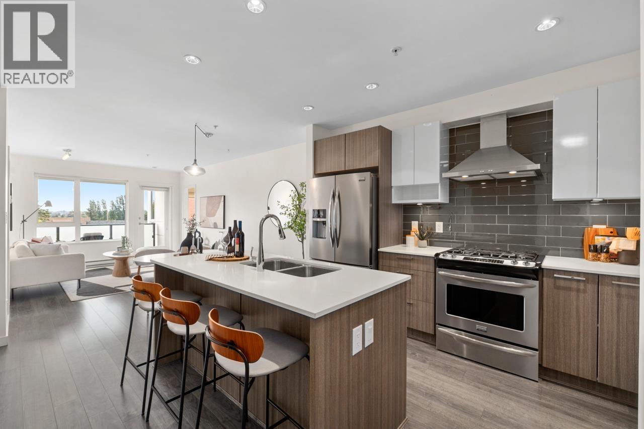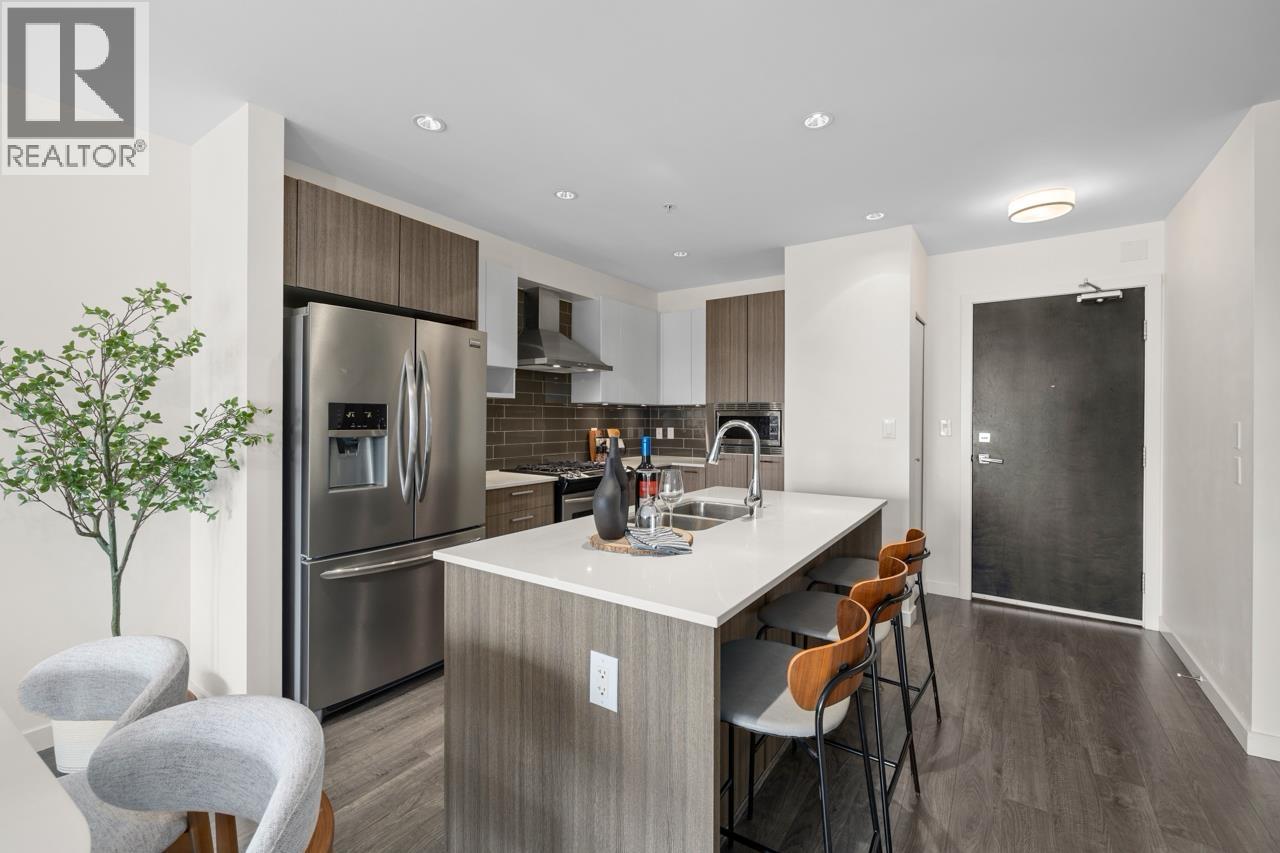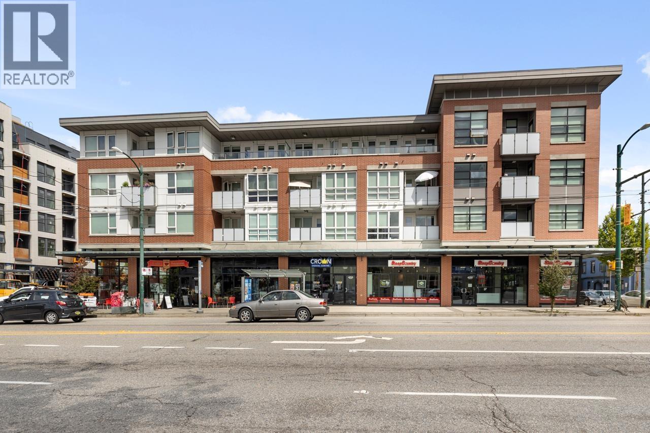 Bright and inviting 2 bed + den/storage, 2 bath condo at Main & 24th by Wesgroup! Offering 872 sqft of well designed living space. The open floor plan features a spacious kitchen with a large island, full size stainless-steel appliances including a gas stove, perfect for entertaining. East-facing on the quiet side of the building, the suite enjoys a treed outlook over the rooftops, mountain views and a large balcony. The bedrooms are separated for privacy, plenty of storage in-suite plus a locker. Comes with two parking stalls, visitor parking, and bike storage. Step outside to enjoy Main Street´s popular cafés, bakeries, and restaurants, all in a vibrant, walkable neighbourhood. Ideal for those seeking comfort, convenience, and a community feel in the heart of Vancouver. Open Sunday 2-4pm (id:58403)