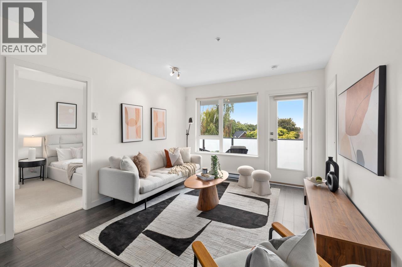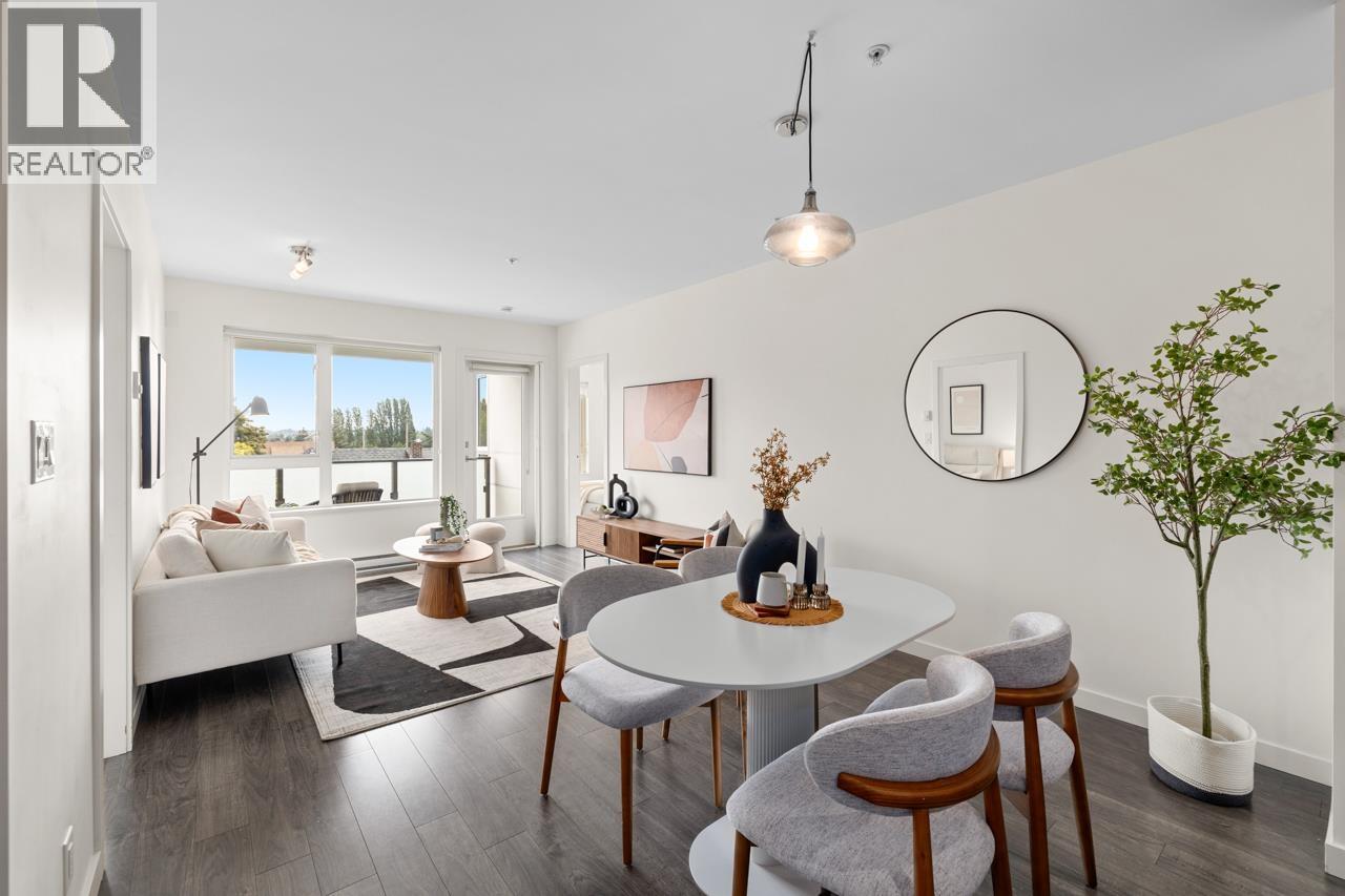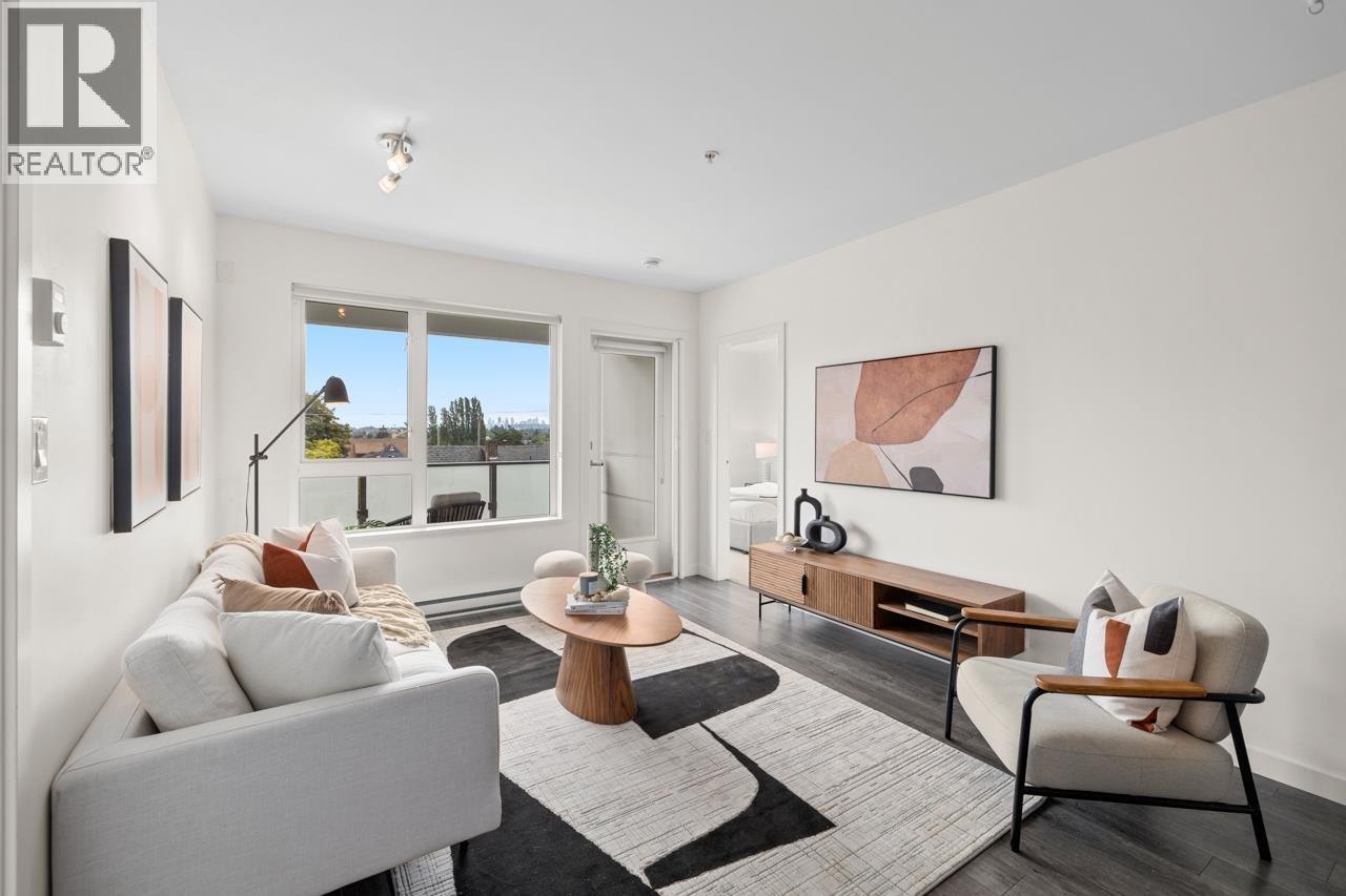 Bright and inviting 2 bed + den/storage, 2 bath condo at Main & 24th by Wesgroup! Offering 872 sqft of well designed living space. The open floor plan features a spacious kitchen with a large island, full size stainless-steel appliances including a gas stove, perfect for entertaining. East-facing on the quiet side of the building, the suite enjoys a treed outlook over the rooftops, mountain views and a large balcony. The bedrooms are separated for privacy, plenty of storage in-suite plus a locker. Comes with two parking stalls, visitor parking, and bike storage. Step outside to enjoy Main Street´s popular cafés, bakeries, and restaurants, all in a vibrant, walkable neighbourhood. Ideal for those seeking comfort, convenience, and a community feel in the heart of Vancouver. Open Sunday 2-4pm (id:58403)