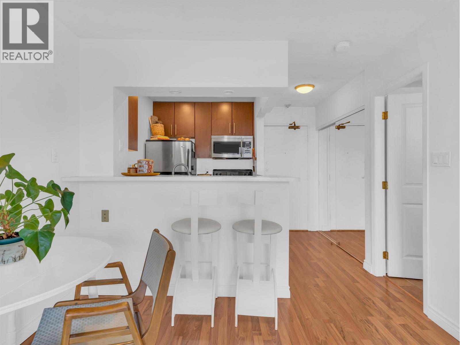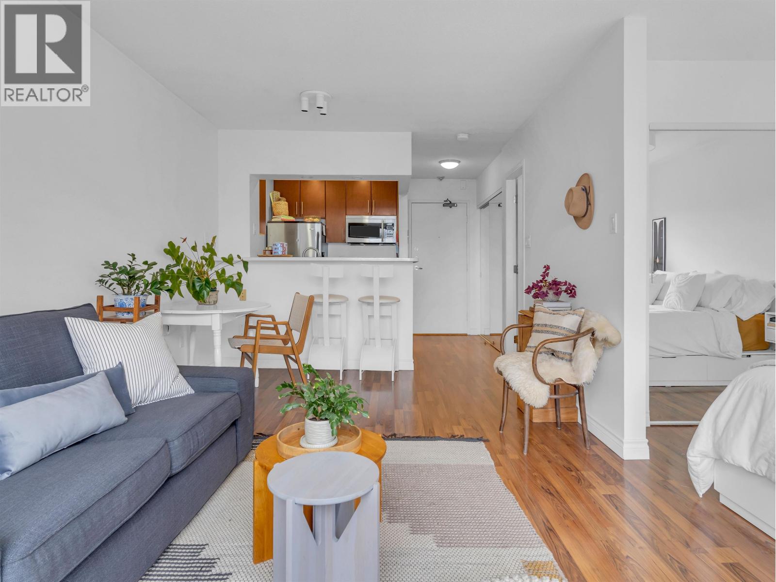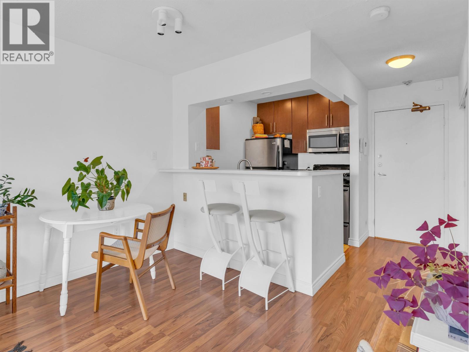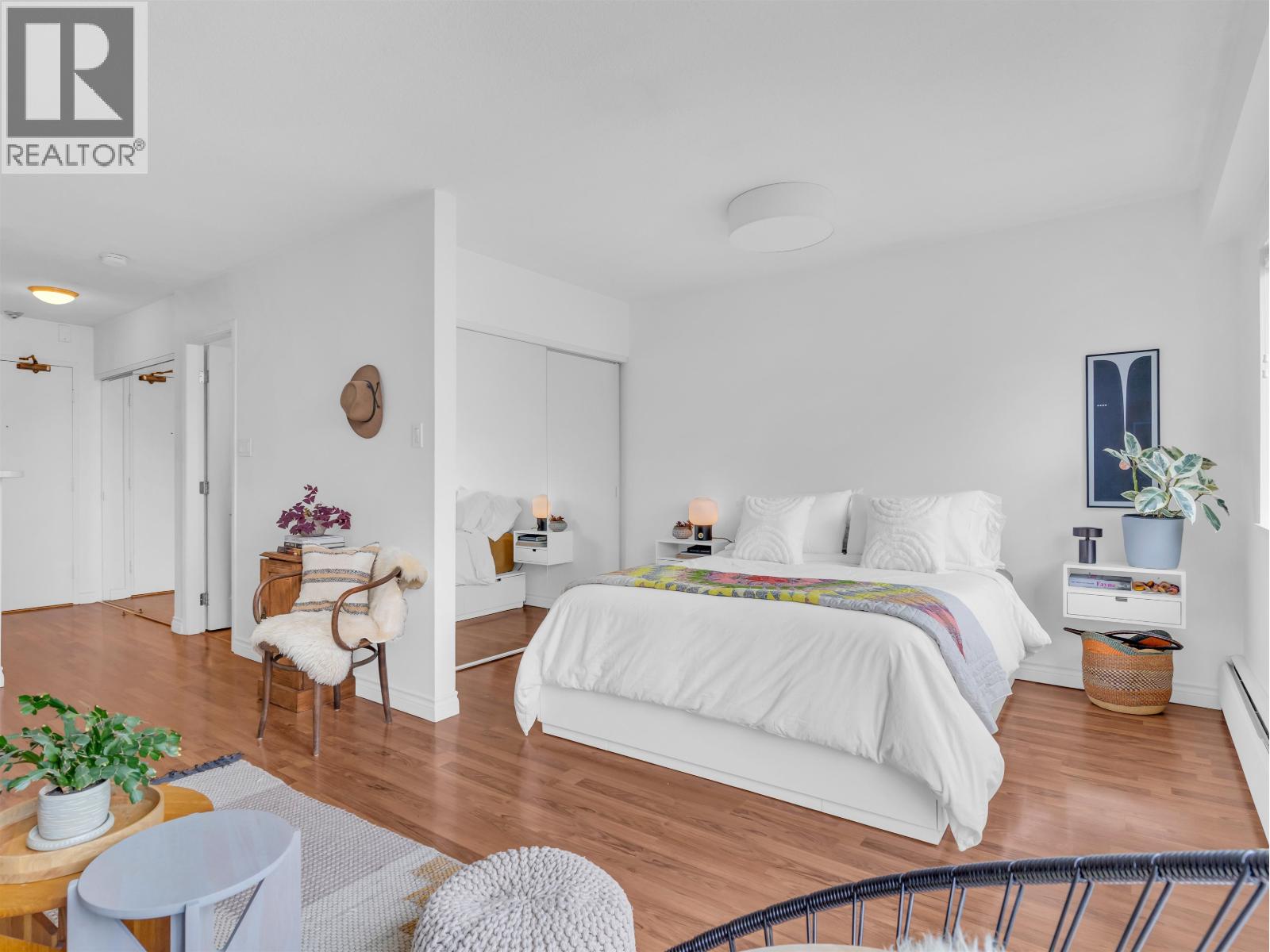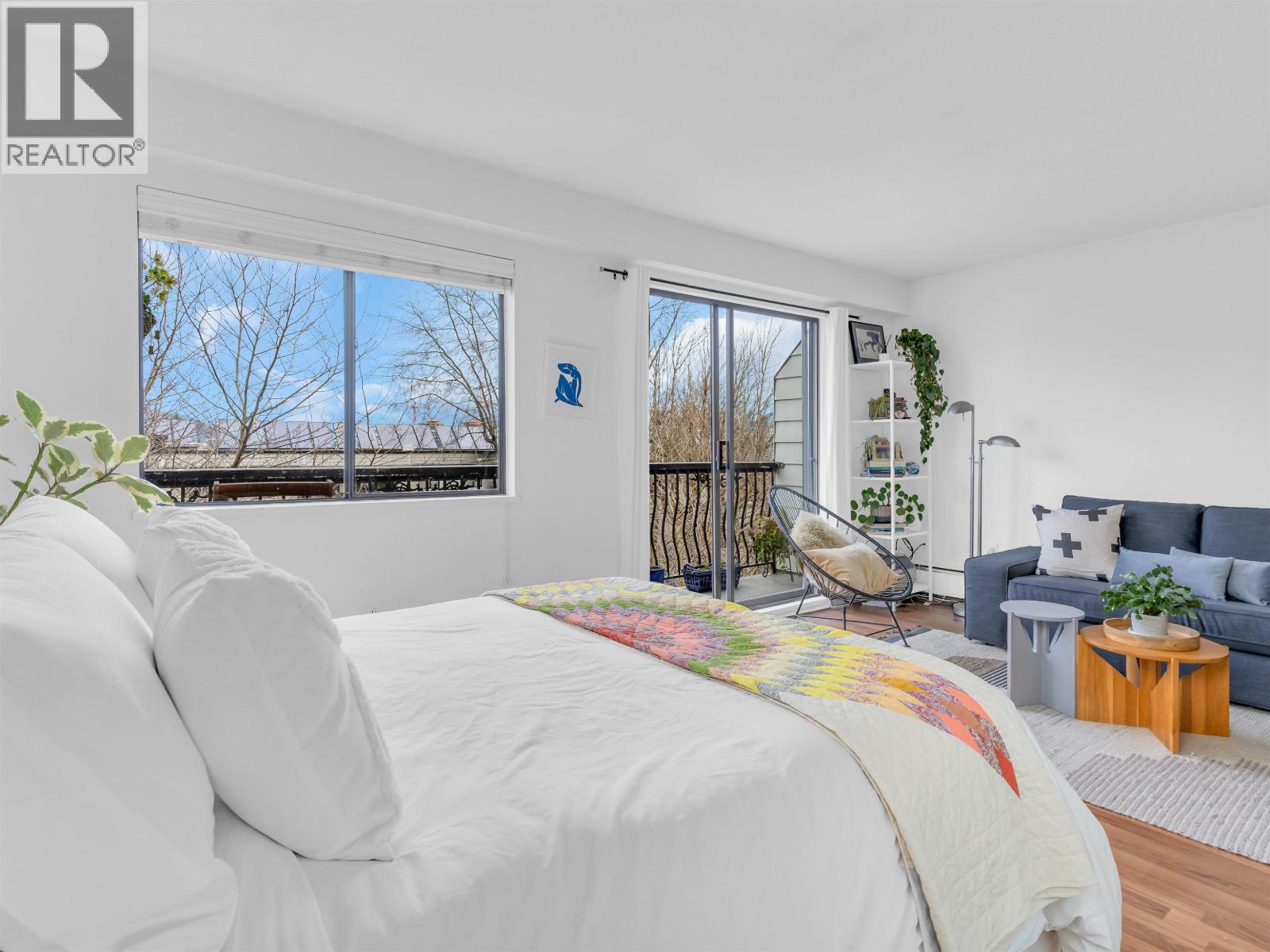 Excellent value for this top-floor studio nestled in central Kitsilano. This bright, renovated home offers a functional layout featuring a sleeping nook and ample storage. Add a sliding partition for seclusion or maintain the open flow to appreciate mountain vistas from your windows. This space fits a dining set or offers casual seating at the kitchen´s breakfast bar. Relax on the expansive balcony overlooking vibrant spring blossoms along this lush, quiet street. The suite remains breezy in summer, includes fiber-optic wiring, one parking stall, a massive locker, and access to secure bike storage. Steps from Kits Beach, Arbutus Greenway, local eateries, the future Skytrain, and West 4th shopping. This prime location is truly unbeatable! Pets welcome! (id:58403)