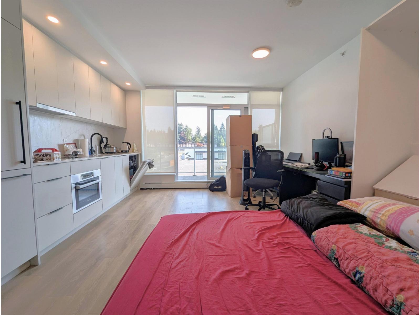 Live at Georgetown by Anthem, a 10-acre master-planned community, & enjoy high-quality construction in Surrey centre, conveniently located across from Central City Shopping Centre and just 6 min walk to the SkyTrain station. This cozy, well-laid out studio features a simple but perfect floorplan incl a built-in wall bed, paneled European stainless steel appliances and fixtures, quartz counters & and a huge 107sf balcony with an open east-facing exposure. Georgetown offers concierge service and an amenity pavilion w/ gym, yoga studio, indoor/outdoor lounges with theatres, co-work spaces, study rooms, games room, dog run, & a beautifully landscaped terrace. Includes 1 storage locker and remainder of 2-5-10 year warranty. (id:58403)