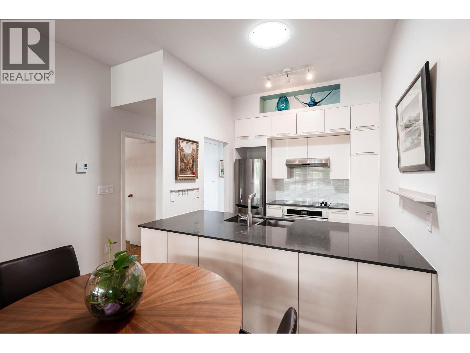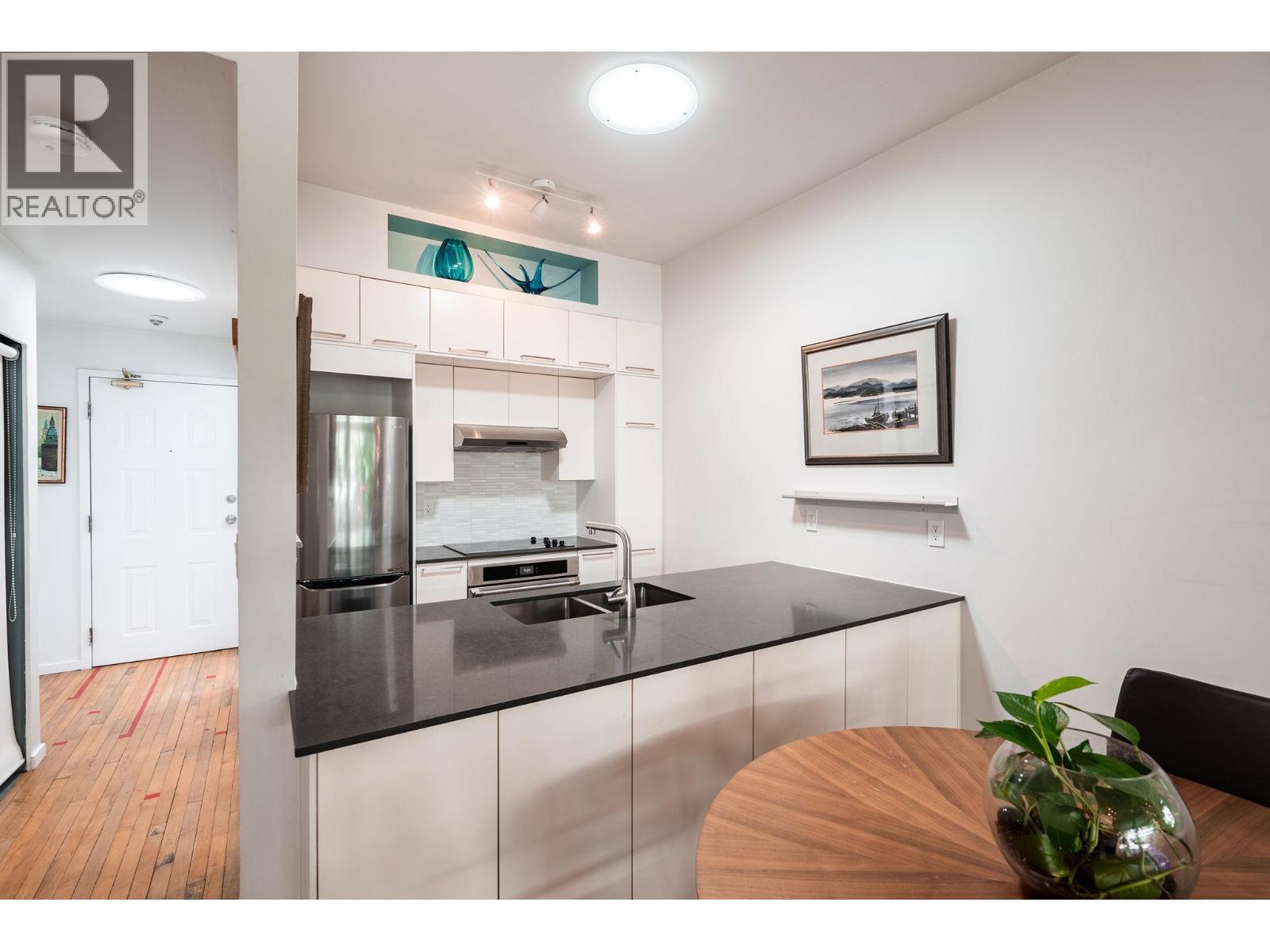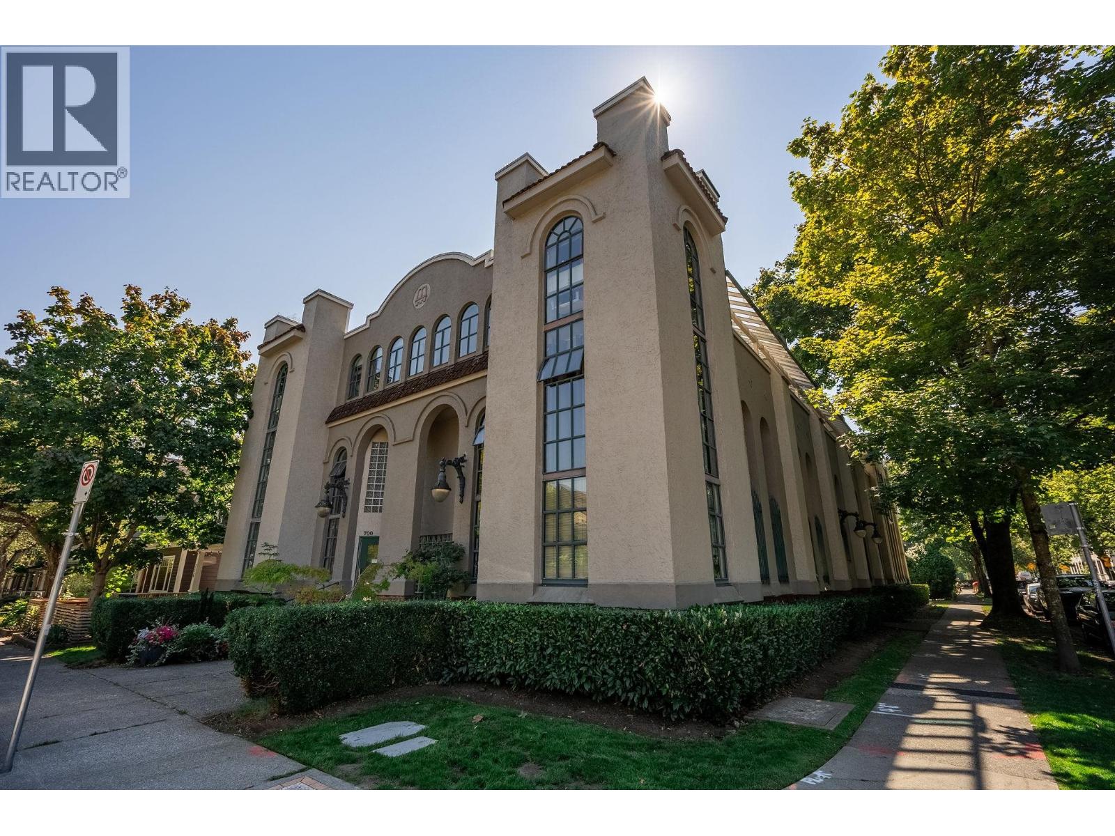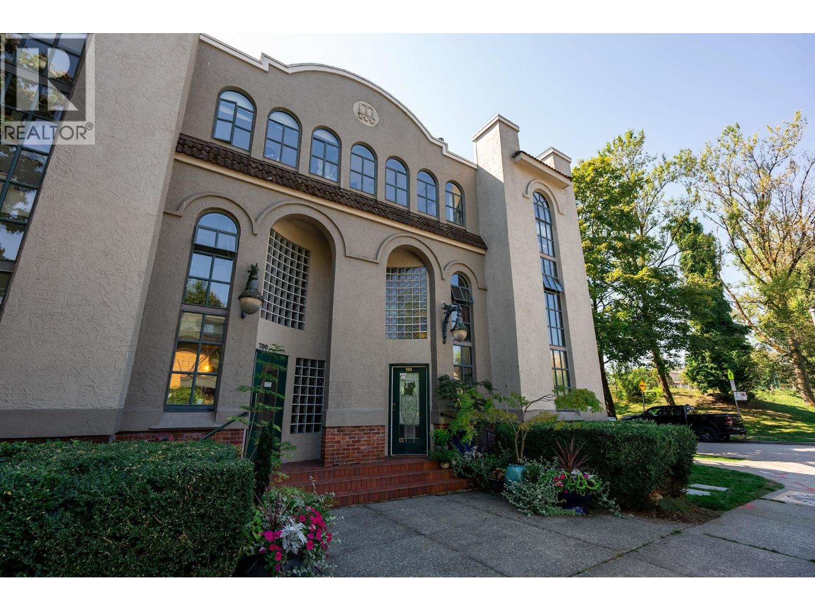 Penthouse living in a landmark, where light, volume, & character combine in a way modern condos simply can´t replicate. Fully renovated, 10´ ceilings, 4 skylights, full-span windows, & a rare sense of air & openness. Once Vancouver´s 1st synagogue, the building delivers heritage presence & the home, both cozy charm (wood fireplace!) & modern design - reclaimed flooring, Bocci lighting, sleek built-ins, spa bath. A huge bedroom allows for home office or flex/creative space, & the covered balcony is a treehouse retreat. Steps to MacLean Park, Community Centre, Railtown, & standouts like Kissa Tanto, Barbara, Finch´s & more . This is not a $/SF purchase, but a unicorn home in a unicorn building in a neighbourhood where community is palpable. In-suite W/D. Walk-up. 1 parking, 1 storage (id:58403)