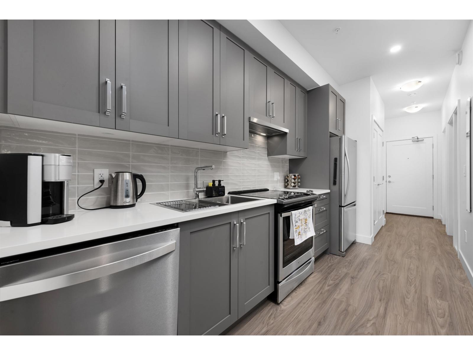Welcome to The Corners, a modern 4-year-old building in the heart of Clayton, one of Cloverdale's fastest-growing communities. This well-maintained 1-bedroom, 1-bathroom home is a great opportunity for investors or first-time buyers looking for an affordable entry into the market. The unit is vacant and priced to sell, offering immediate flexibility for move-in or rental potential. Residents enjoy premium amenities including a fully equipped fitness centre, stylish lounge, games room, and guest suites, a true extension of your living space. Located in a vibrant, walkable neighbourhood close to parks, schools, shopping, and restaurants. With the future Surrey-Langley SkyTrain extension expected nearby, this home offers strong long-term investment potential in a rapidly growing area. (id:58403)