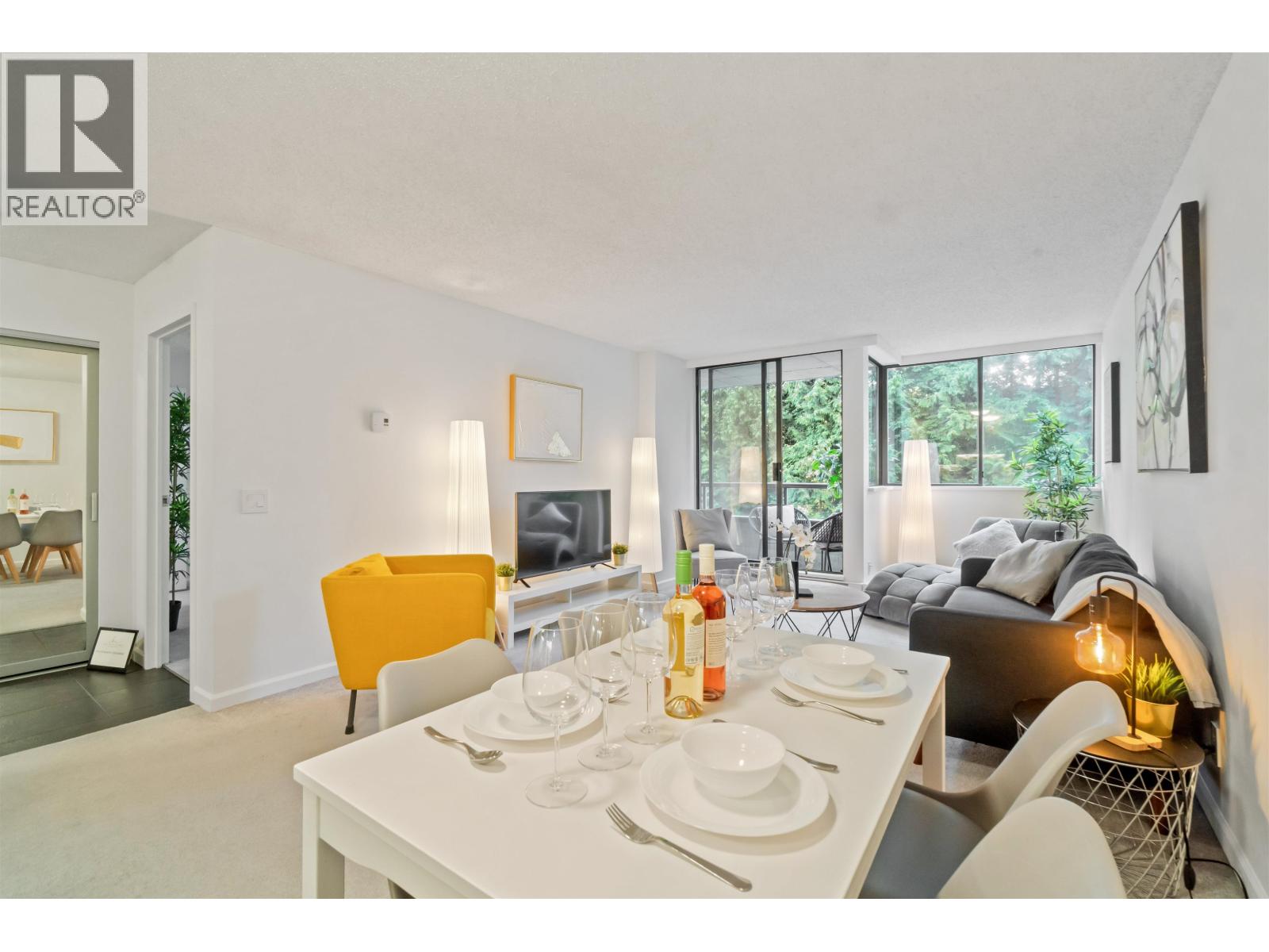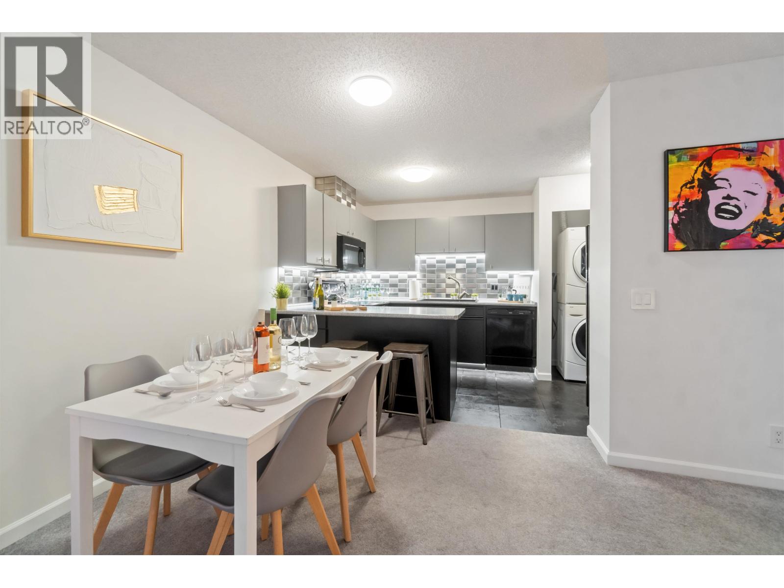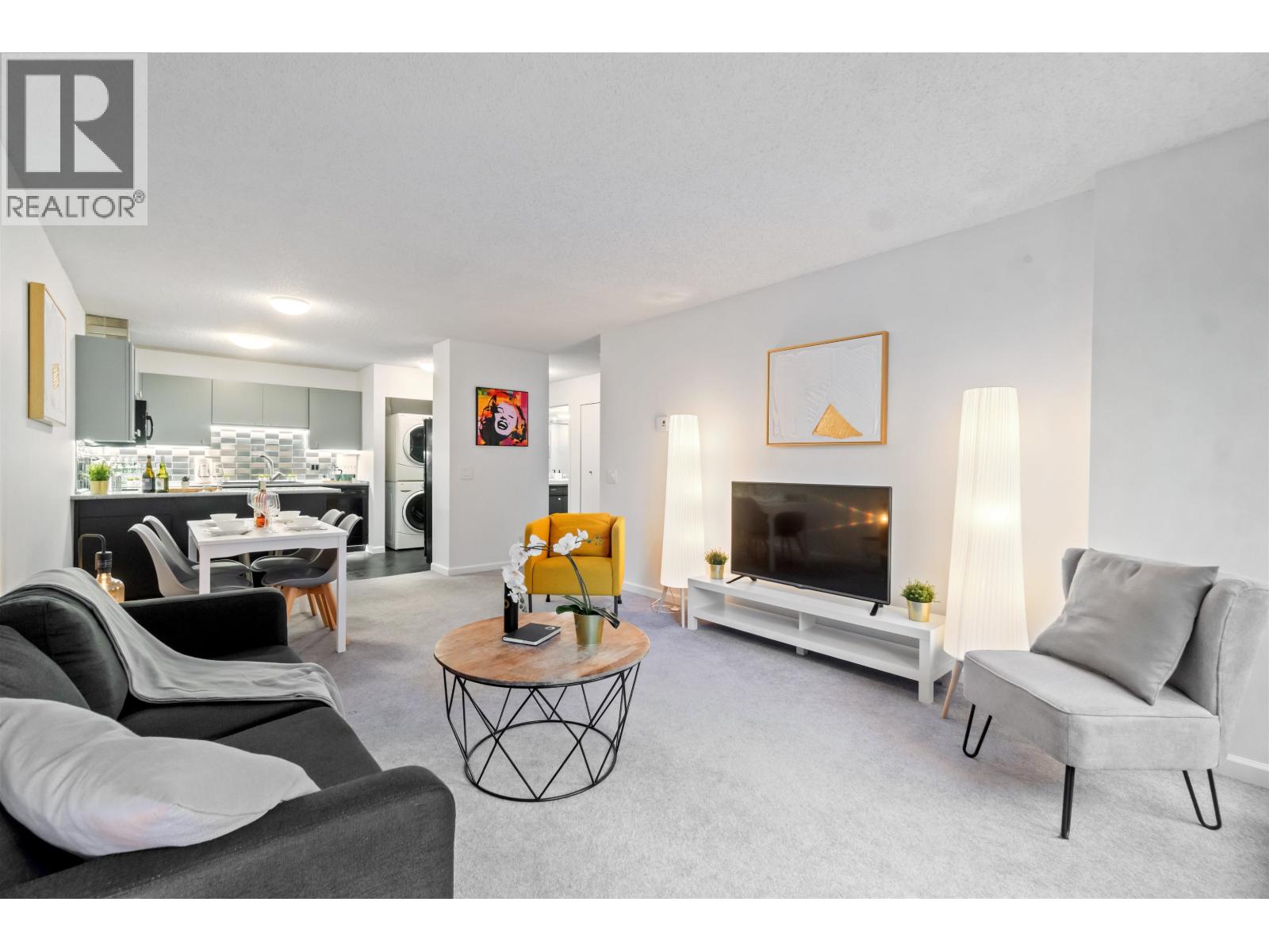Welcome home to 3970 Carrigan Court - Discovery Place II. This spacious 1-bedroom home offers nearly 800 sqft of bright living space. Enjoy an oversized bedroom with walk-in closet and nook, open dining and living areas, plus in-suite laundry. Recent updates include fresh paint, new washer and dryer, stylish backsplash tiles, upgraded kitchen and bathroom lighting, new sinks in both kitchen and bathroom, new carpet, baseboard heaters, and updated light switches and outlets. Completely turn-key - nothing to fix, just move in and enjoy. The location is unbeatable - just steps to Lougheed Mall, SkyTrain, and bus loop for quick access across Metro Vancouver. Surrounded by shopping, dining, and cafés, this home blends comfort and convenience. Perfect home for starters, downsizers and investors. (id:58403)