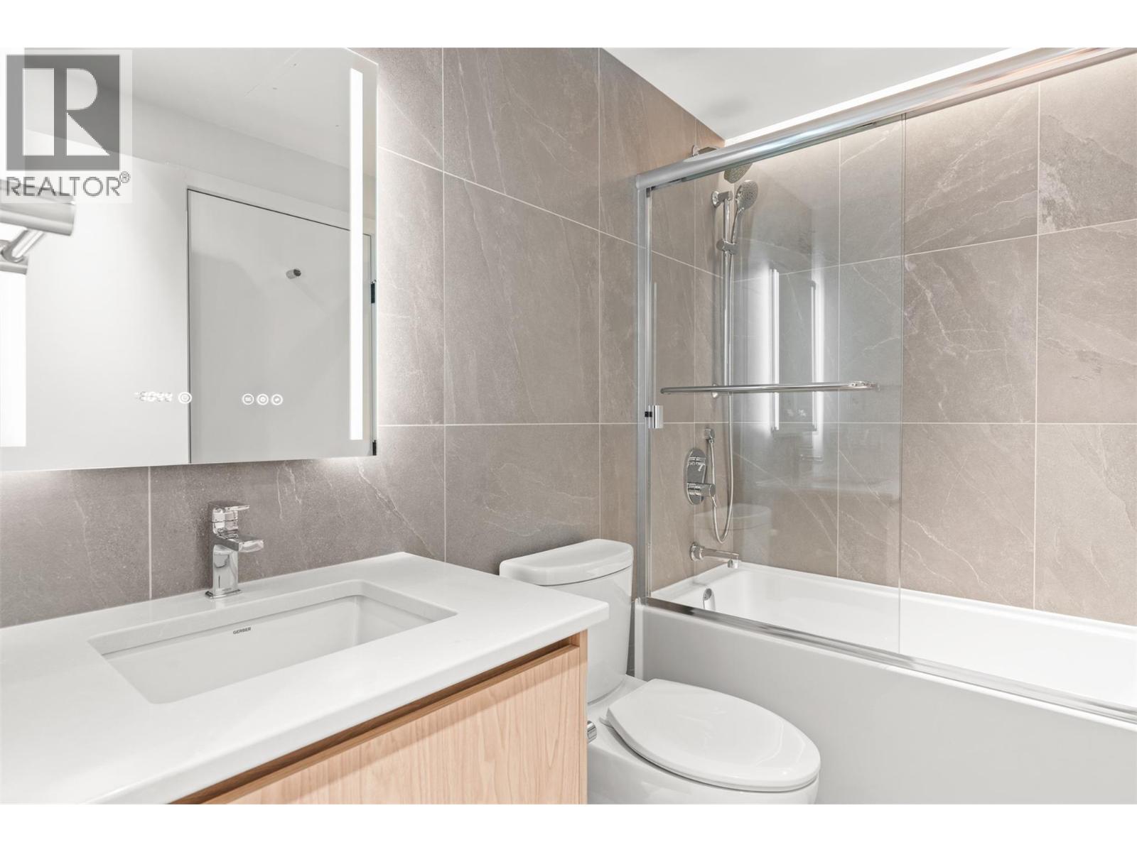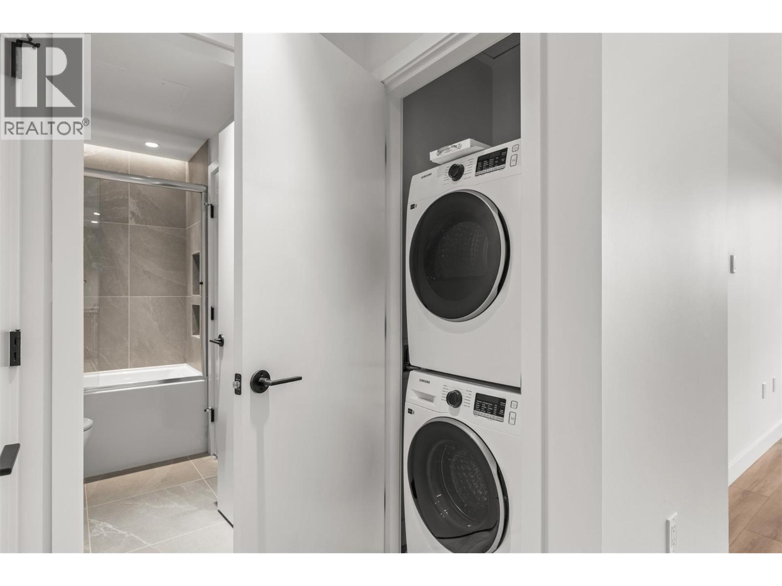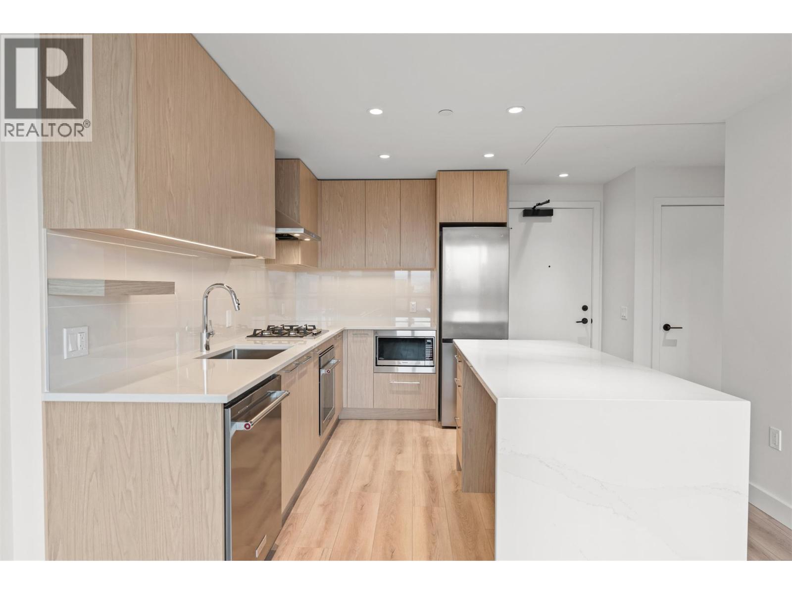 Introducing ALMA, proudly crafted by Mission Group. This 5th floor east-facing 1-bed, 1-bath home is filled with beautiful morning light, offering 540 sqft of interior living plus a 100 sqft terrace, seamlessly pairing intentional design with elevated finishes in the heart of the Lower Mission. The striking kitchen features sleek flat-panel wood-grain cabinetry, a dramatic quartz waterfall dining island, and premium stainless-steel appliances. The open-concept layout is perfectly suited for everyday living and effortless entertaining, enhanced by expansive windows that flood the home with natural light, durable laminate flooring through the main living areas, and plush woven broadloom carpeting in the bedroom. The primary suite boasts a walk-through closet, while the ensuite showcases large-format tile, a rainfall shower, custom-tiled niche, and soft ambient lighting that creates a retreat-like escape. Additional highlights include roller shades on every window, individually controlled heating and cooling, and one secure underground parking stall. Residents enjoy access to amenities including an 8,000 sqft lakeview terrace with firepits, BBQs, and community gardens, plus a fully equipped fitness centre, dog wash, and bike maintenance station. With a walk score of 93, you’re just steps to transit, KGH, the shops and dining of vibrant Pandosy Village, and the shores of Okanagan Lake. Sqft and room sizes are approximate and may vary. This newly constructed home is move-in ready (id:58403)