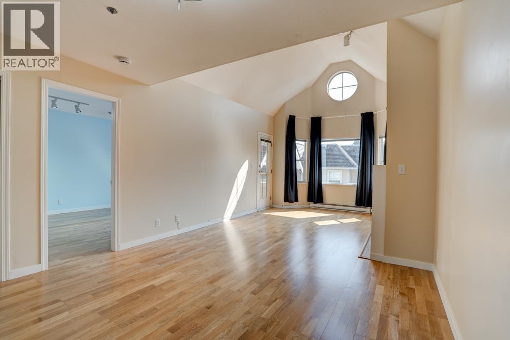 Welcome to THE COURTYARD, in a prime Burnaby location. This TOP FLOOR PENTHOUSE suite offers VAULTED CEILINGS, bright and functional 1 bed, 1 bath with enough room for a home office. The over sized primary bedroom can comfortably fit a king sized bed. Unit faces south east towards courtyard and away from busy street. The open living and dining area is surrounded by lots of windows, filling the home with natural light and flowing seamlessly onto a private balcony, ideal for morning coffee or evening relaxation. Conveniently situated within walking distance to Royal Oak SkyTrain Station, Metrotown´s shops and restaurants, and Bonsor Park and Community Centre. Perfect for first-time buyers, downsizers, or investors. OPEN HOUSE - SAT (NOV 16) 1-3 PM (id:58403)