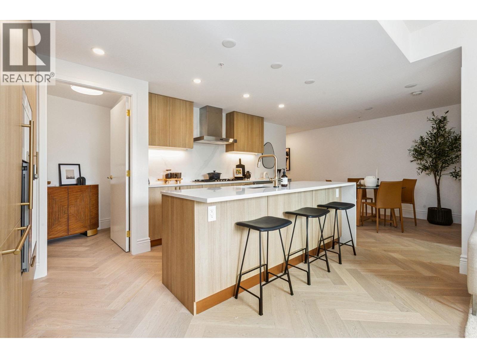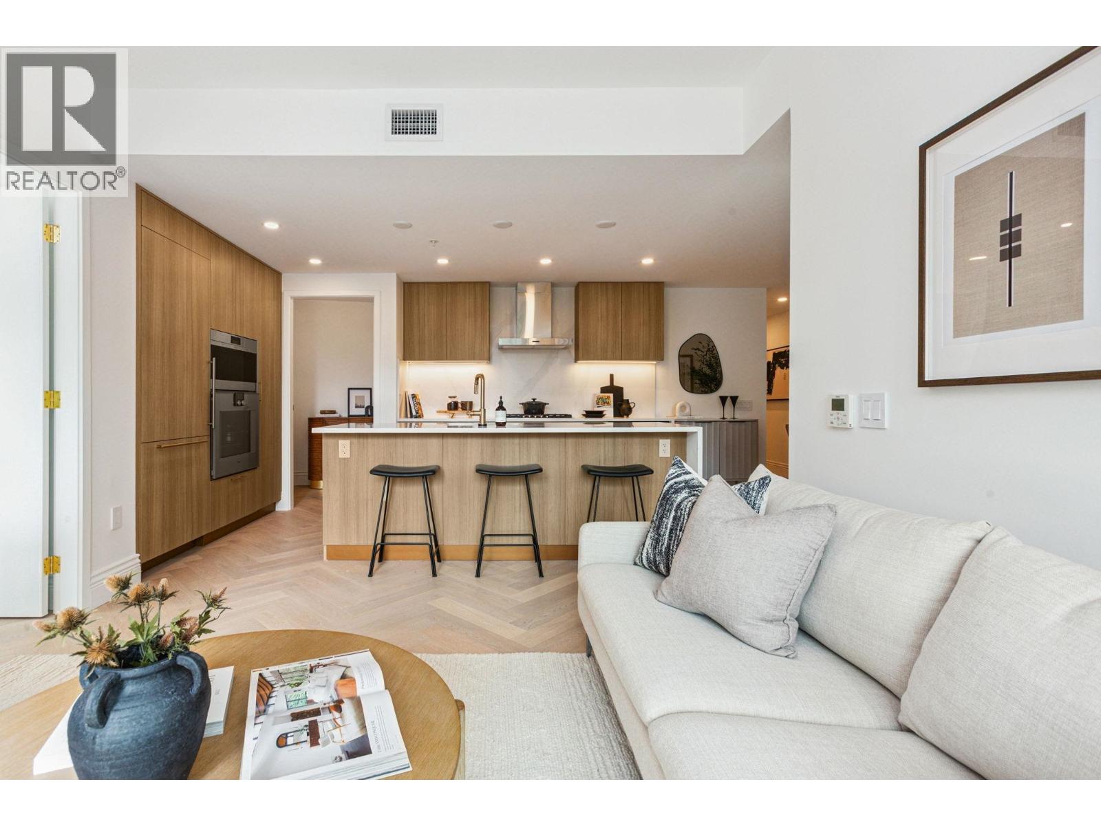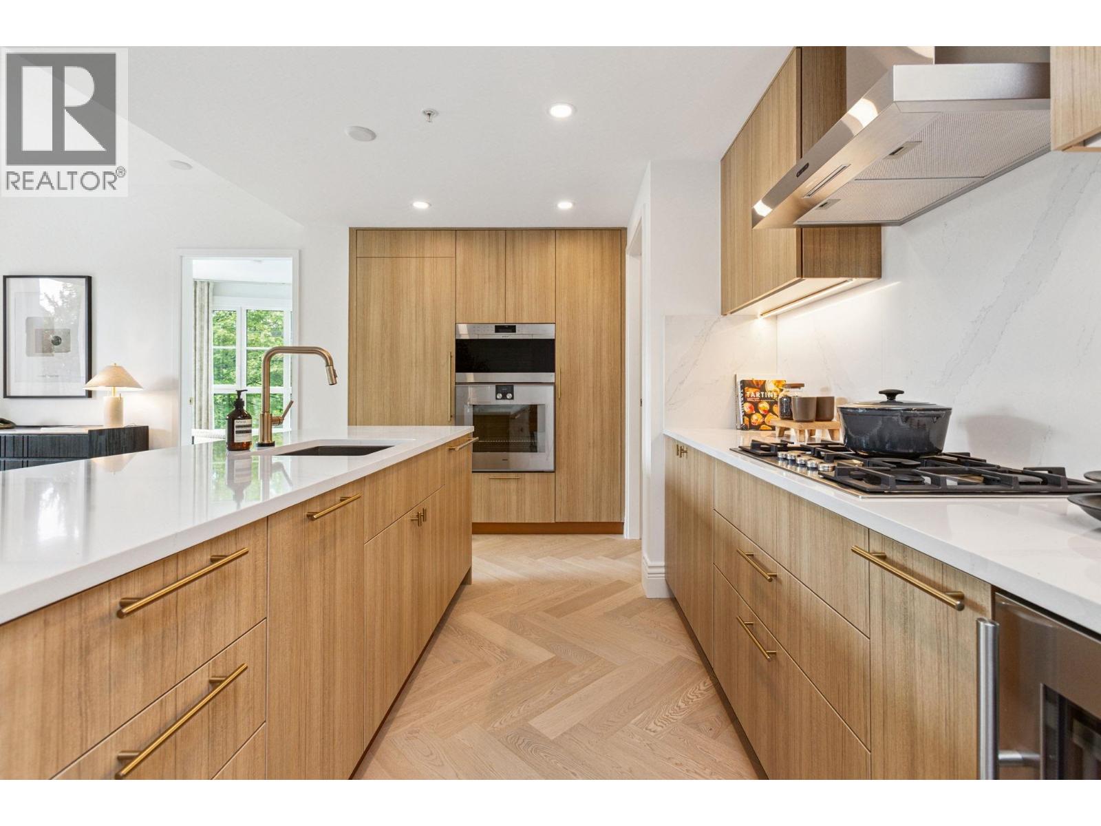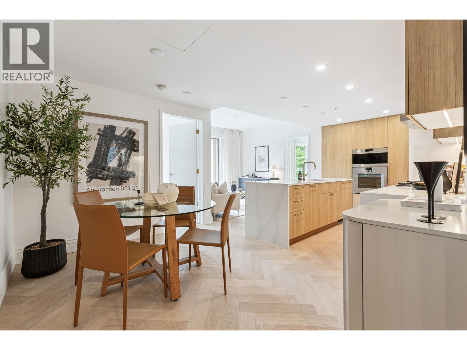 Discover Chloé in the prestigious heart of Kerrisdale. This 1,158 SF 2-bed, 2-bath, den + flex SW corner home features abundant natural light and a functional open layout. Parisian-inspired interiors by CHIL Interior Design include overheight ceilings, herringbone hardwood floors, Italian porcelain tile, Gaggenau appliances, Wolf steam oven and wine fridge. Relax in the luxurious 5-piece spa bath with standalone tub, quartz counters, Kohler fixtures, and Nu Heat in-floor heating. Air conditioning included. Quality concrete construction ensures durability, complemented by a 2-5-10 yr warranty. Residents enjoy concierge, lounge, fitness studio, music room, landscaped courtyard, and rooftop terrace. Steps to shops, cafés, parks, and top schools. (id:58403)