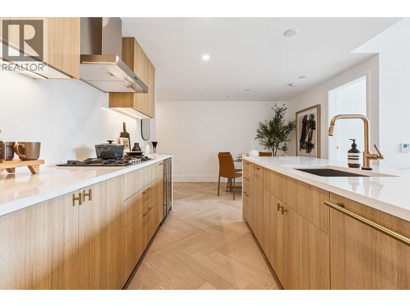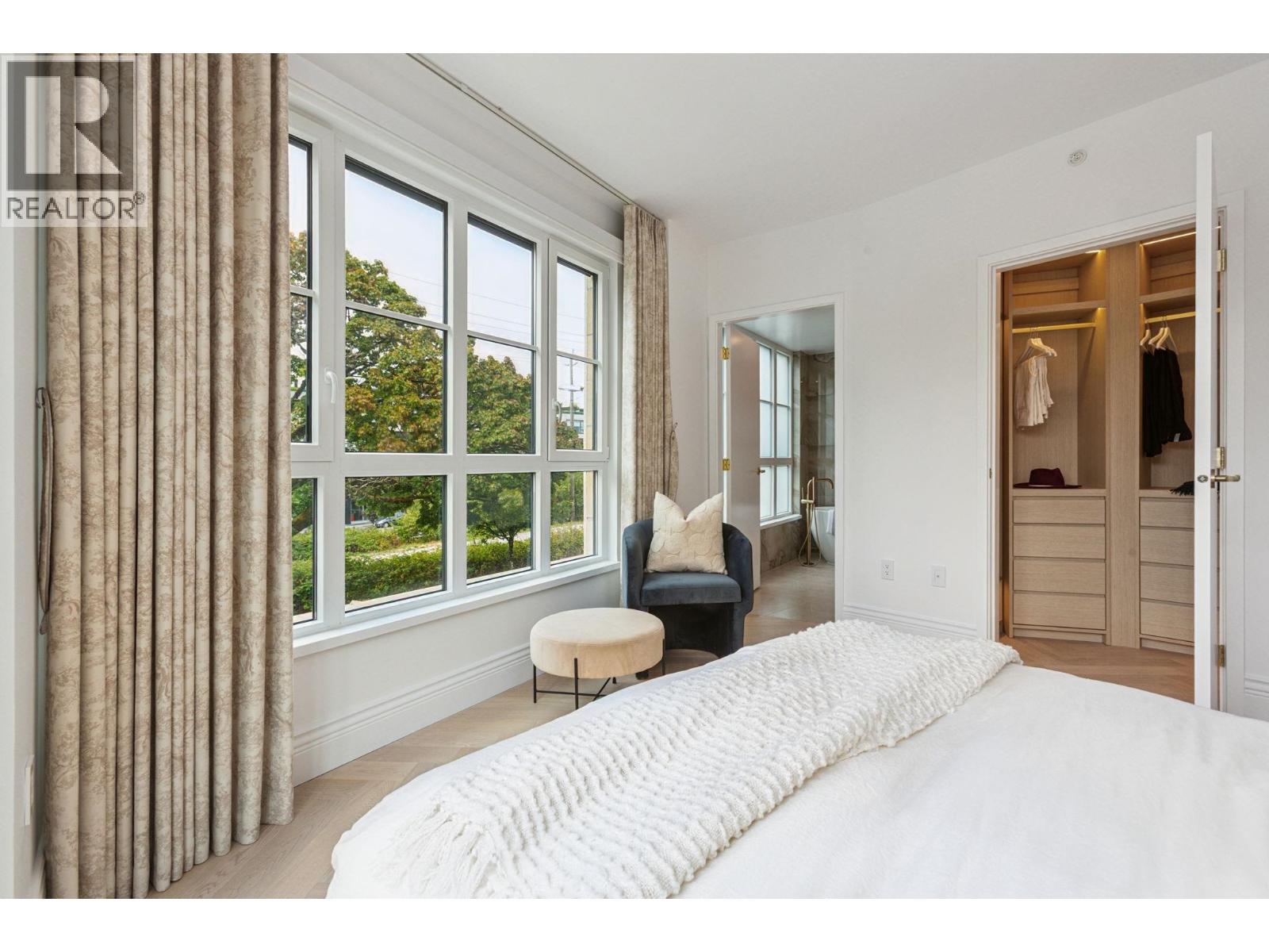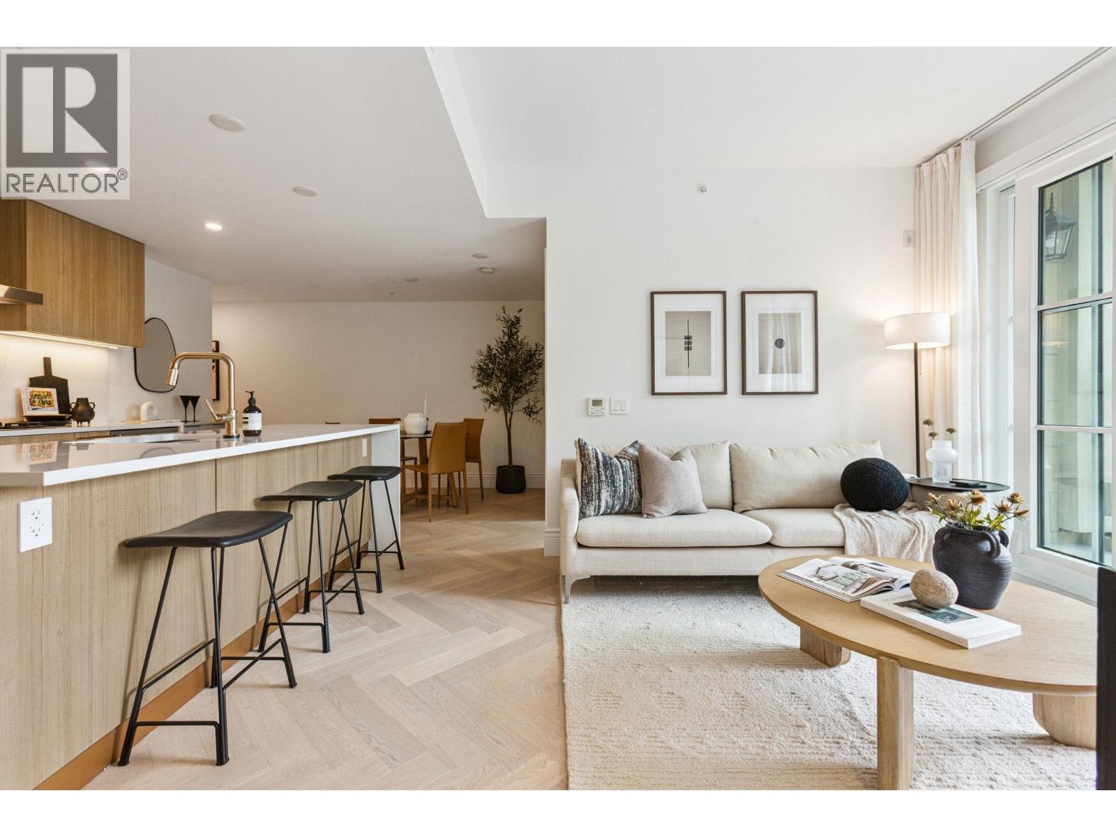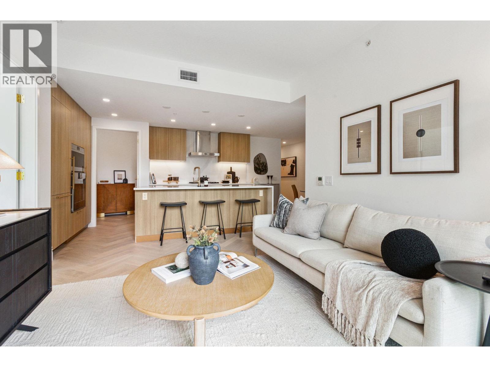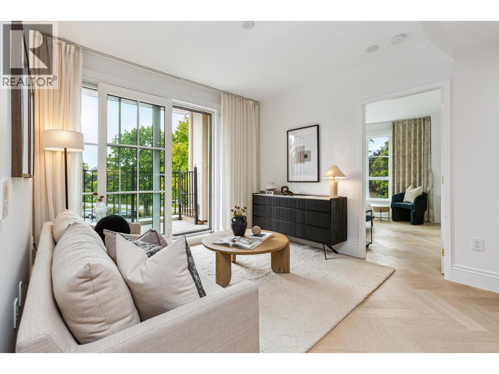 Discover Chloé in the prestigious heart of Kerrisdale. This 1,158 SF 2-bed, 2-bath, den + flex SW corner home features abundant natural light and a functional open layout. Parisian-inspired interiors by CHIL Interior Design include overheight ceilings, herringbone hardwood floors, Italian porcelain tile, Gaggenau appliances, Wolf steam oven and wine fridge. Relax in the luxurious 5-piece spa bath with standalone tub, quartz counters, Kohler fixtures, and Nu Heat in-floor heating. Air conditioning included. Quality concrete construction ensures durability, complemented by a 2-5-10 yr warranty. Residents enjoy concierge, lounge, fitness studio, music room, landscaped courtyard, and rooftop terrace. Steps to shops, cafés, parks, and top schools. (id:58403)