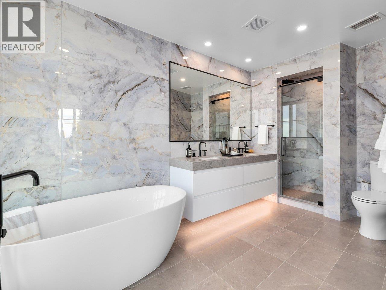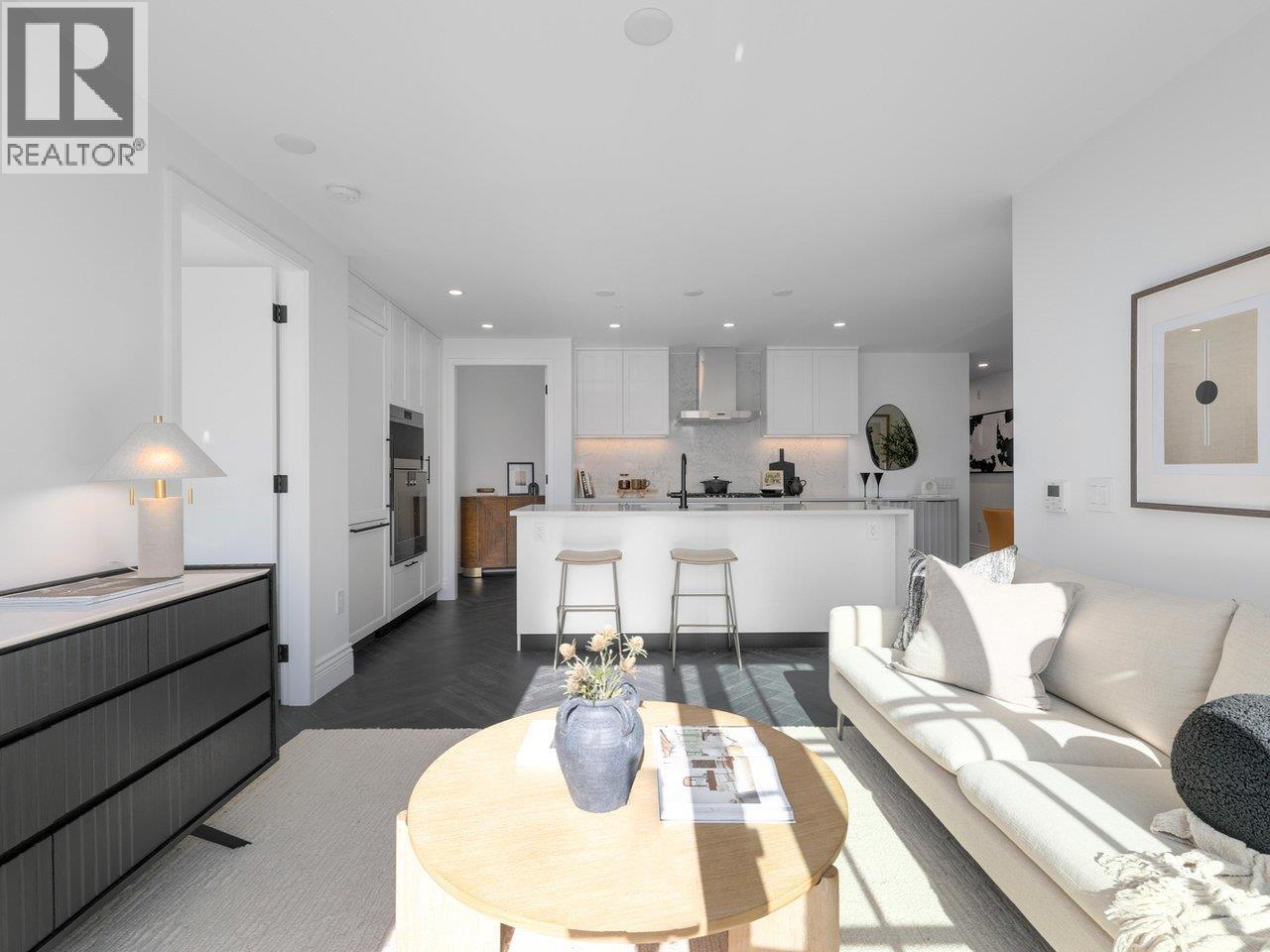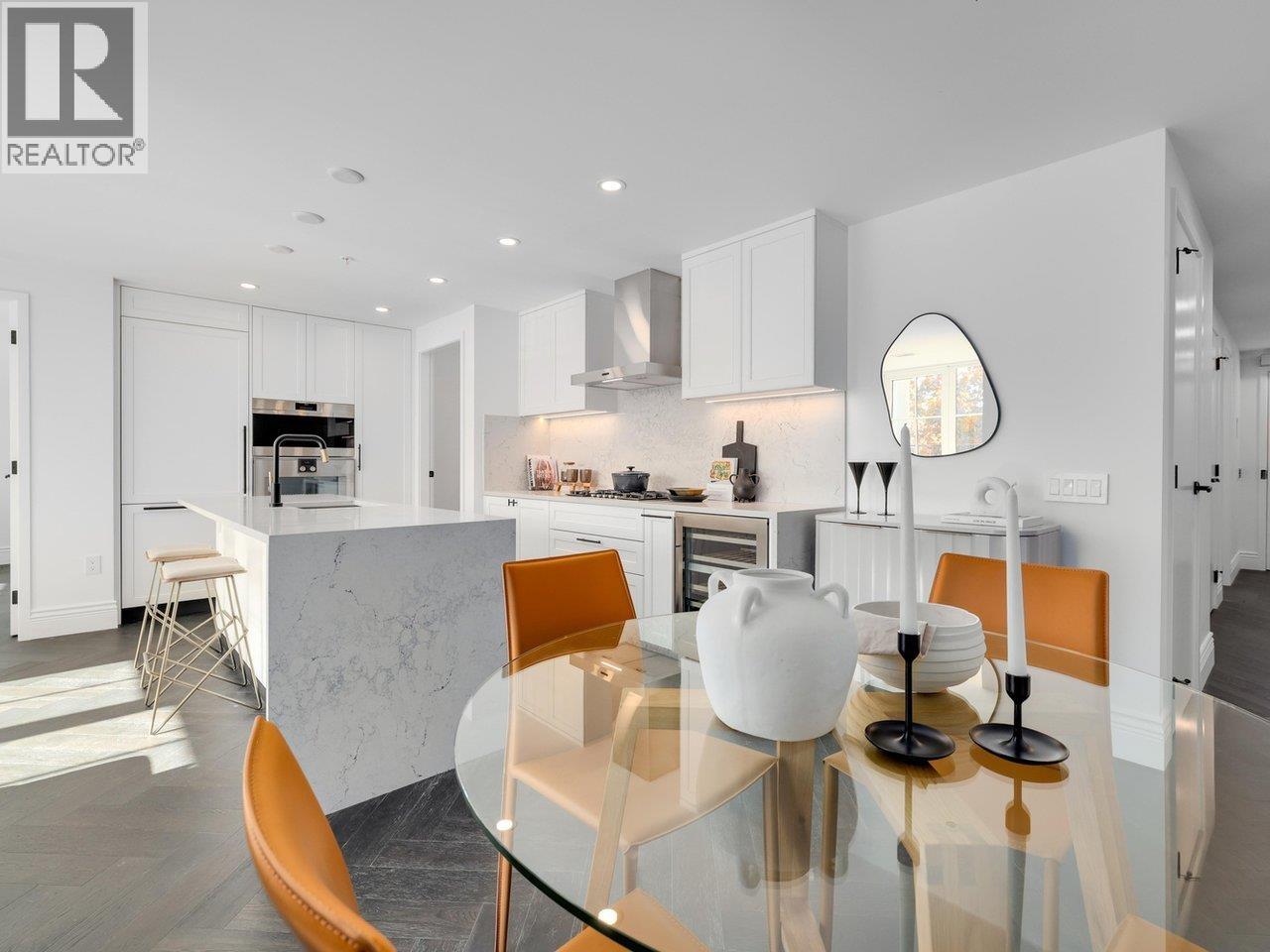 Discover Chloé in the prestigious heart of Kerrisdale. This 1,158 SF 2-bed, 2-bath, den + flex SW corner home features abundant natural light and a functional open layout. Parisian-inspired interiors by CHIL Interior Design include overheight ceilings, herringbone hardwood floors, Italian porcelain tile, Gaggenau appliances, Wolf steam oven and wine fridge. Relax in the luxurious 5-piece spa bath with standalone tub, quartz counters, Kohler fixtures, and Nu Heat in-floor heating. Air conditioning included. NOTE THAT 2 PARKING IS INCLUDED. Quality concrete construction ensures durability, complemented by a 2-5-10 yr warranty. Residents enjoy concierge, lounge, fitness studio, music room, landscaped courtyard, and rooftop terrace. Steps to shops, cafés, parks, and top schools. (id:58403)
