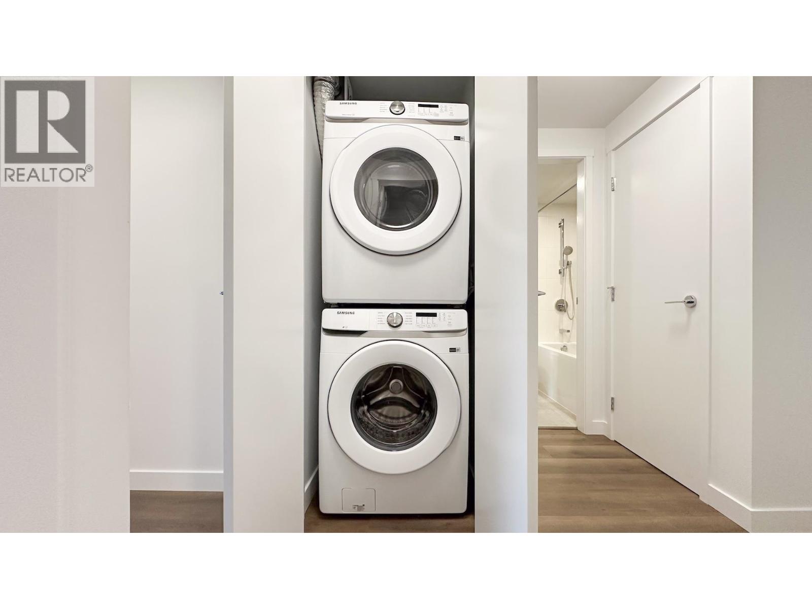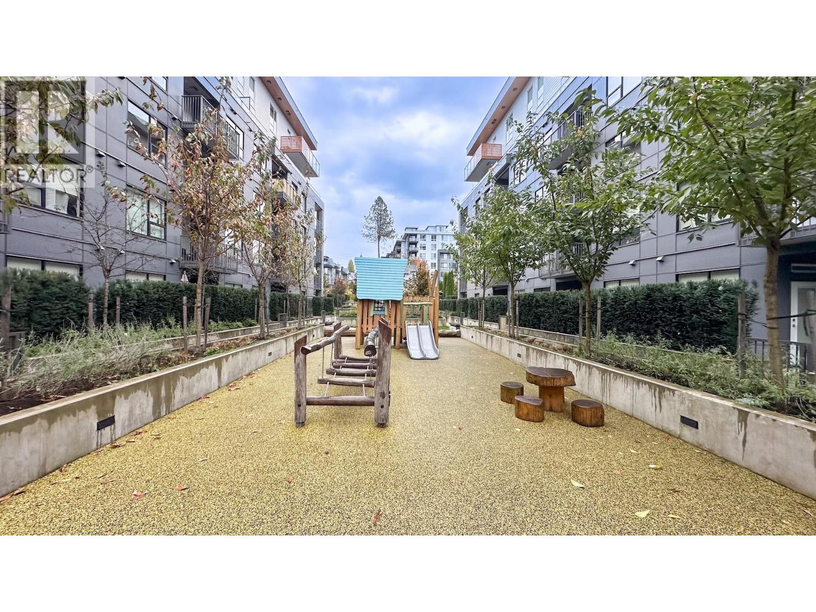 Welcome to Port & Mill built in 2023 by Streetside, part of reputable developer Qualico. South facing 1 bedrm + den home feels brand new. L-shaped kitchen features full size Kitchen Aid & Blomberg appliances & quartz countertops. Bedroom features cozy carpet with spacious walk-thru closets & cheater ensuite access to bathroom. Den is large enough to function as a comfortable single bedrm, nursery, TV room or office. Full size washer/dryer. Parking features level 2 EV charger - just plug in your car! Bike locker. Amenities include caretaker; large party rm/lounge; gym; outdoor seating area with BBQ; courtyard garden & kid's play area. Located steps from shopping at Burquitlam incl. Safeway and Burquitlam SkyTrain. Easy access to Port Moody, SFU, and the Highway. OPEN HOUSE Sat & Sun Nov 8+9, 2-4pm! (id:58403)