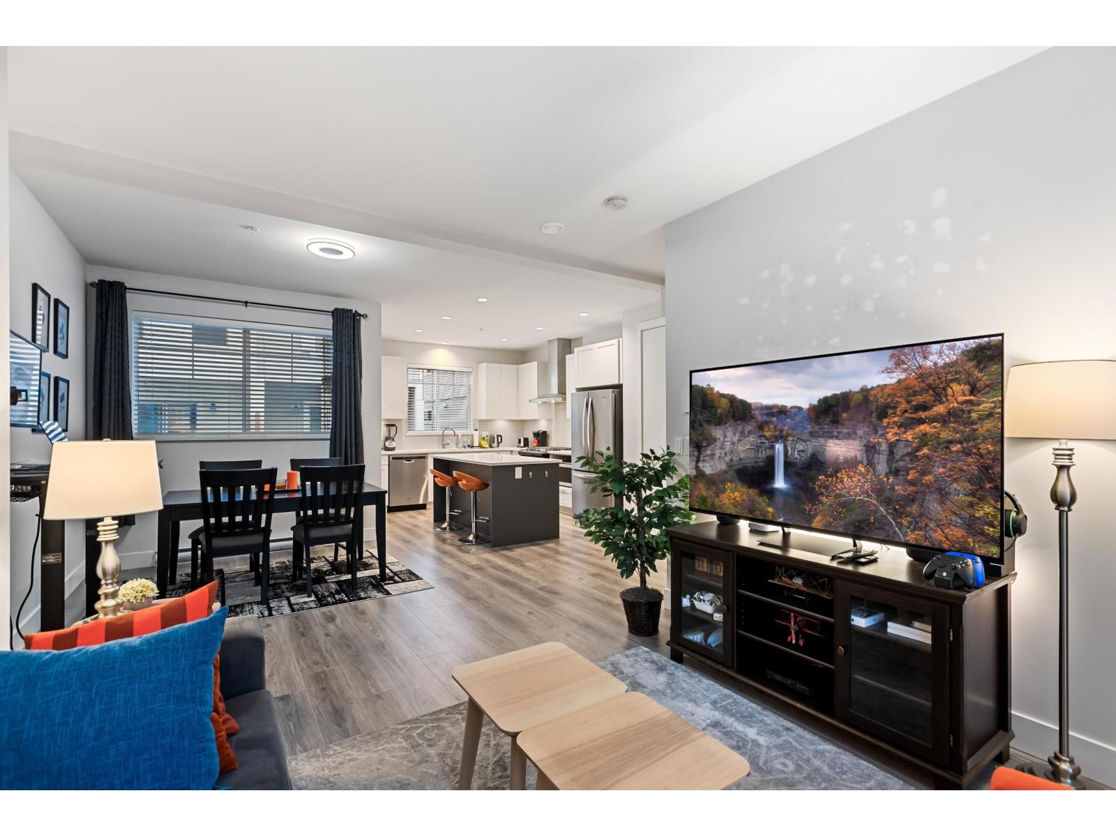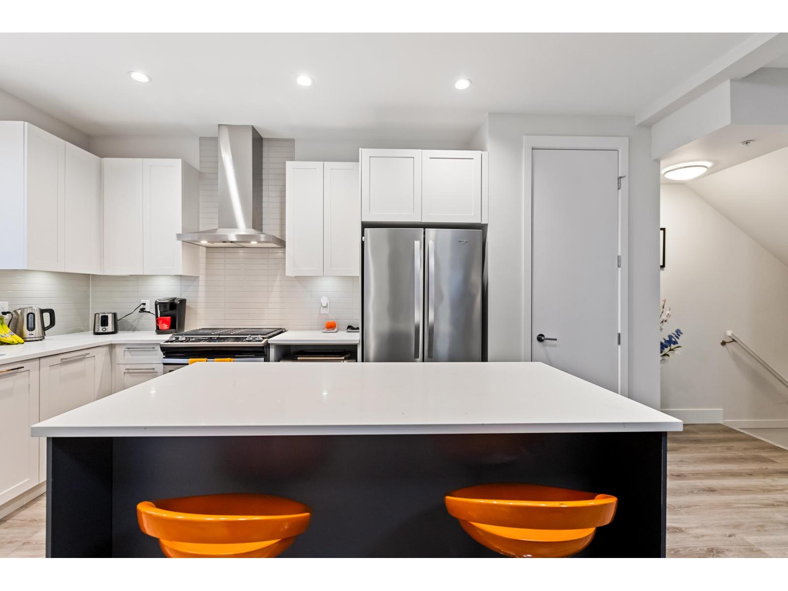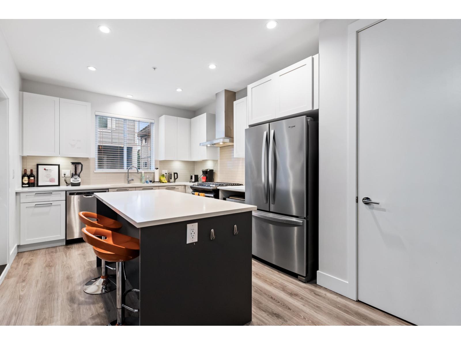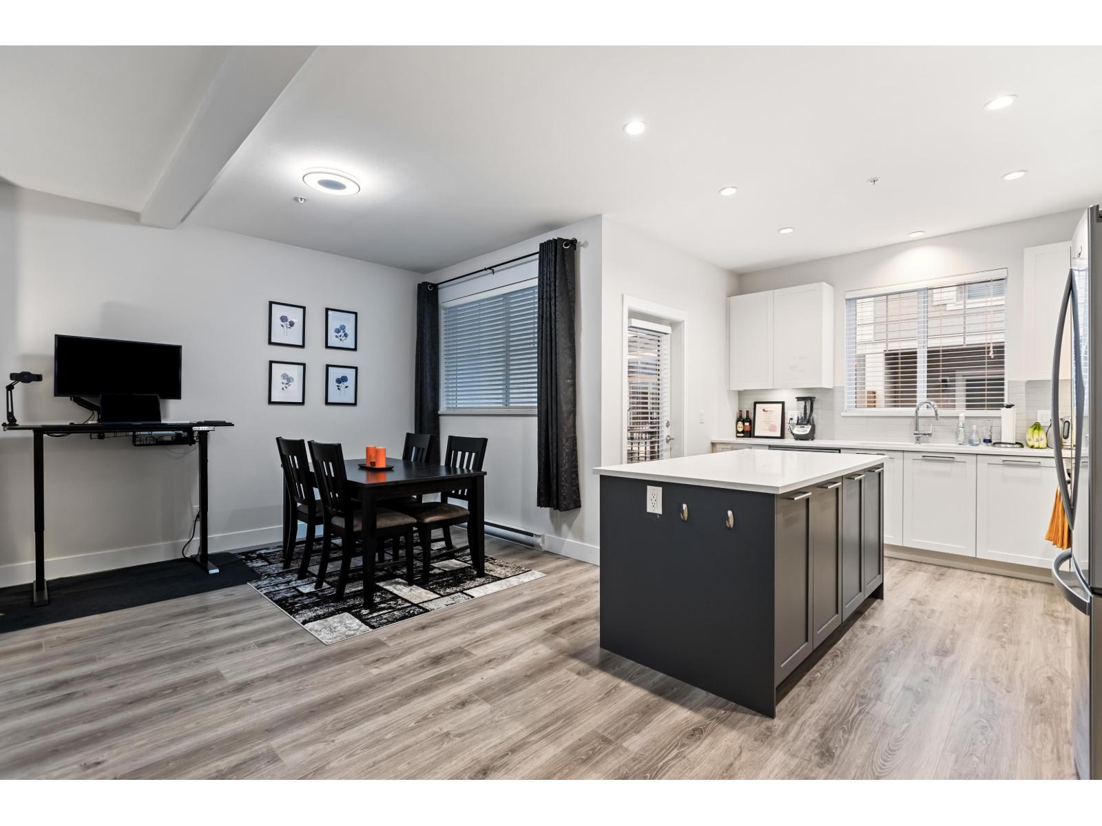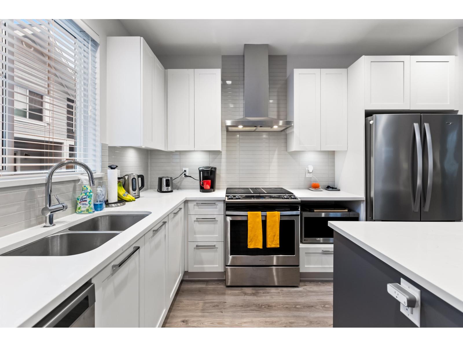 Nestled alongside the peaceful setting of Yorkson Creek's protected greenspace is this tranquil 3 bdrm parkside townhome at THE WALDEN. Experience all the benefits of urban living w/ close proximity to schools, shopping & recreation while enjoying the beauty of nature & walking trails right outside. The bright great room floorplan w/ 9 ft ceilings features modern flooring, updated paint, custom stone fireplace wall w/ wood mantle & stunning gourmet kitchen. Contemporary white shaker kitchen cabinets w/ built in pantry are complimented by the rich white quartz counters & s/s appliances. Upstairs boasts large primary bdrm w beautiful deluxe ensuite, 2 additional bdrms & laundry room. Lower floor bonus flex room with a side by side garage & luxury epoxy flooring. (id:58403)
