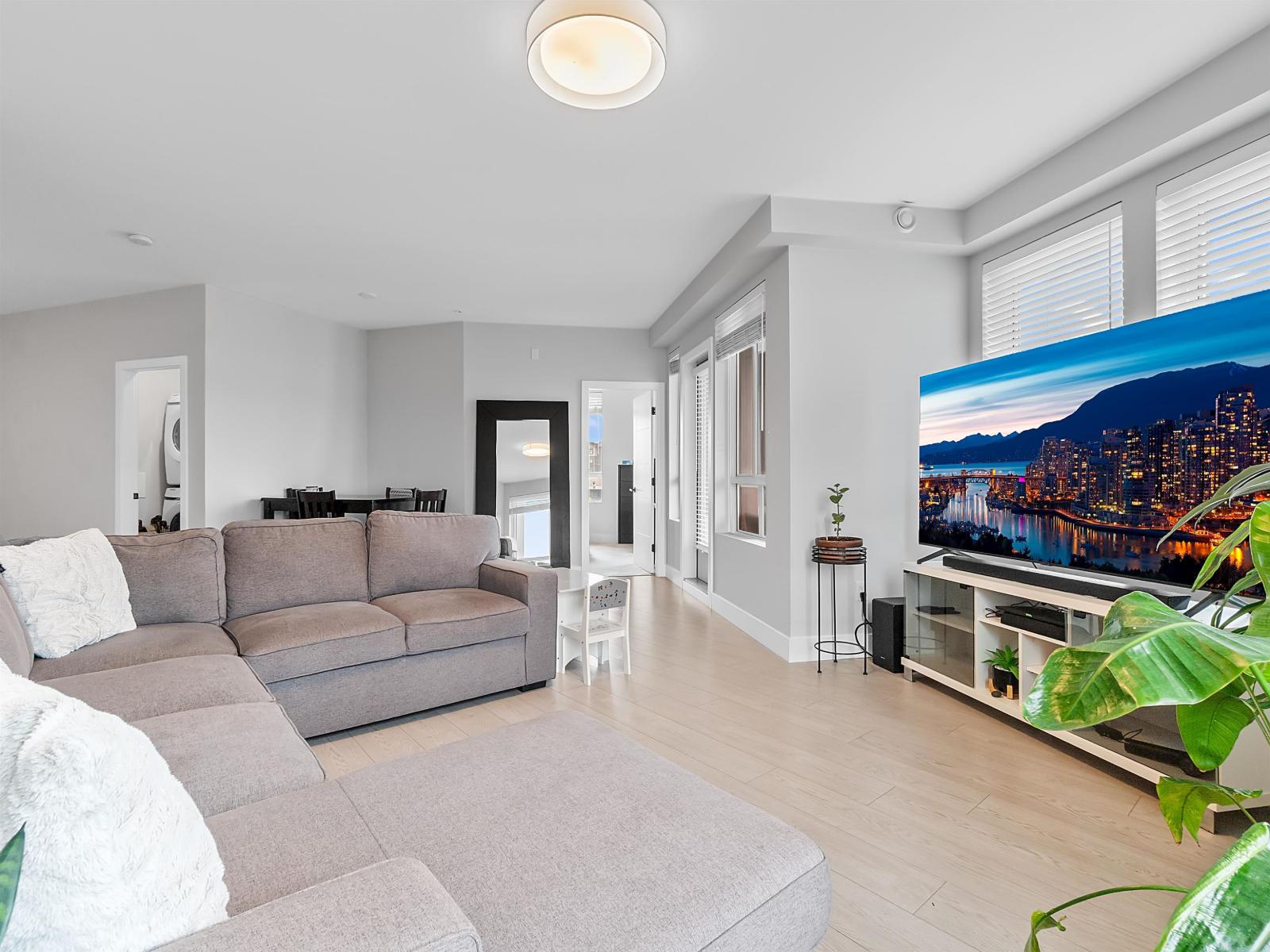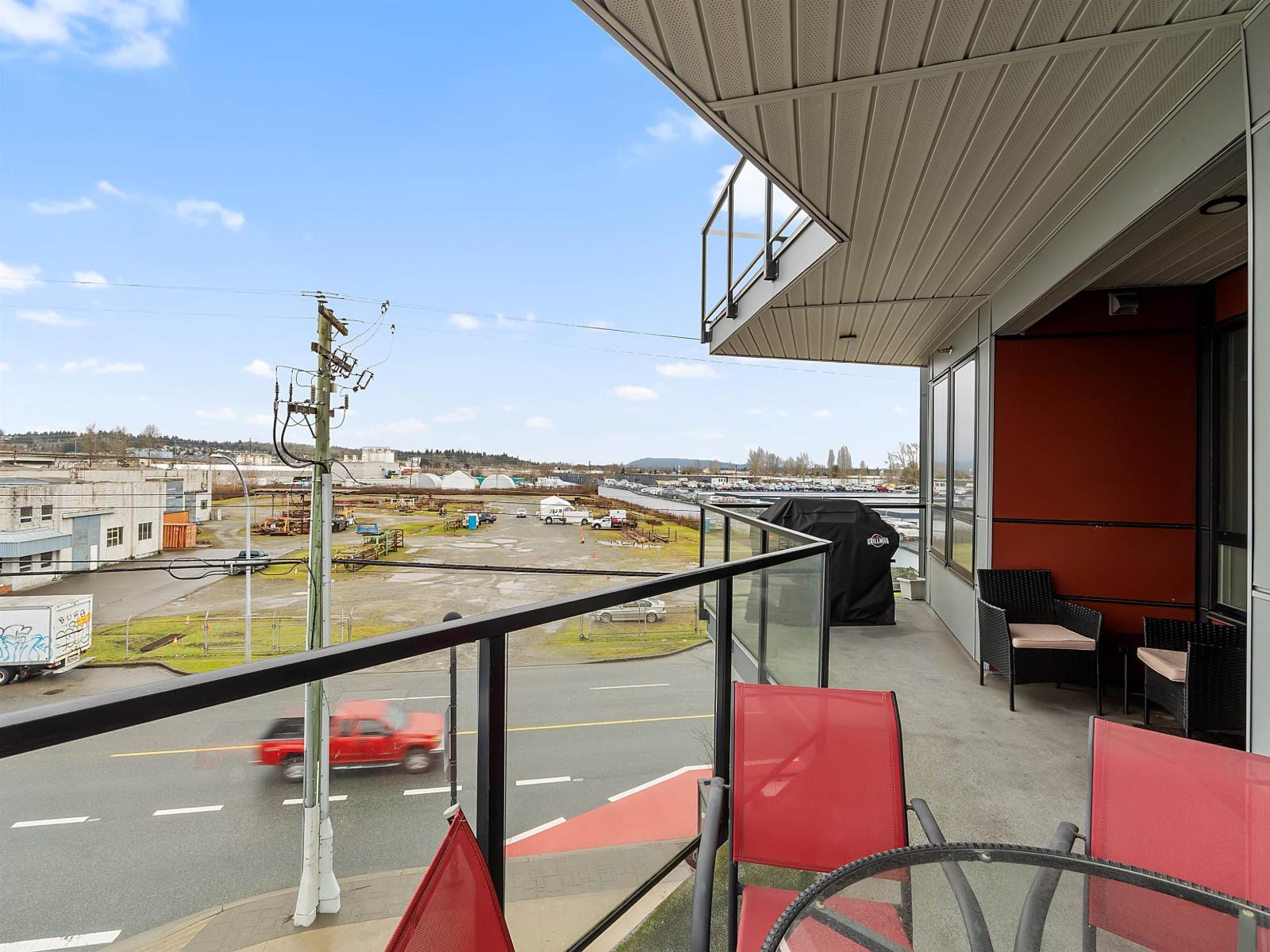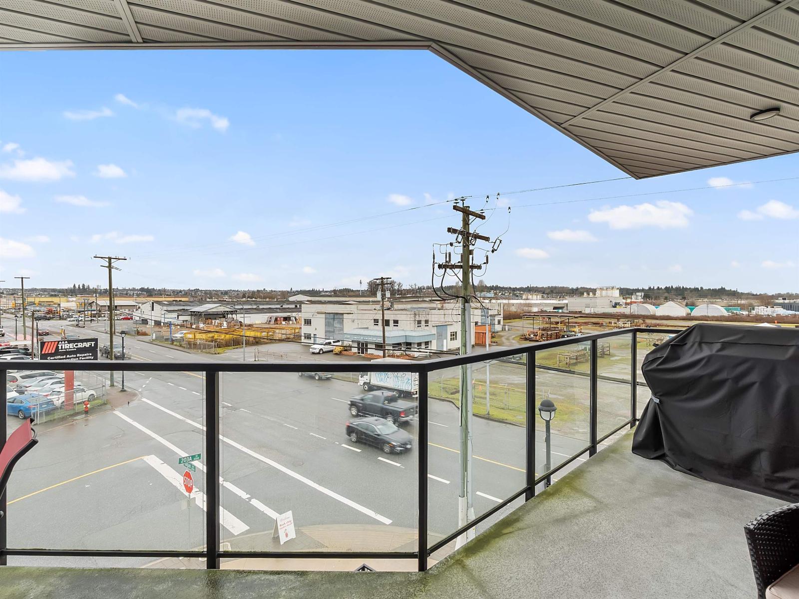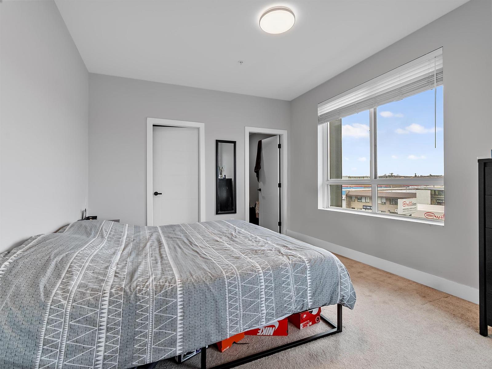 Experience elevated condo living in this north-facing corner home at the sought-after Genesis by Whitetail Homes. This well-designed 2 bedroom, 2 bathroom residence offers a bright open-concept layout with abundant natural light and a spacious covered balcony ideal for year-round use. Interior features include quartz countertops, stainless steel appliances, high ceilings, and modern spa-inspired bathrooms. The functional chef-style kitchen is perfect for everyday living and entertaining. Residents enjoy premium amenities including a fitness centre, landscaped courtyard, meeting rooms, and putting green. Ideally located steps to future SkyTrain access, shopping, restaurants, and schools. Strong rental demand makes this an excellent opportunity for homeowners and investors. (id:58403)