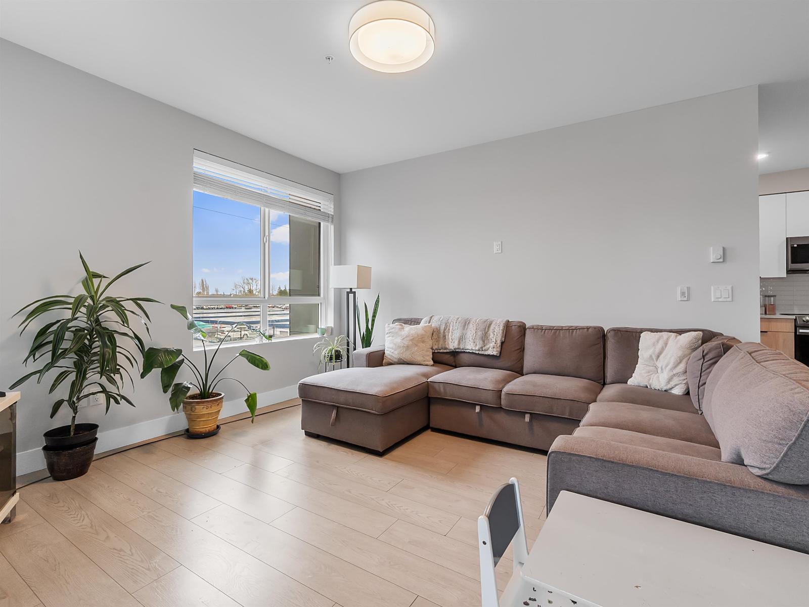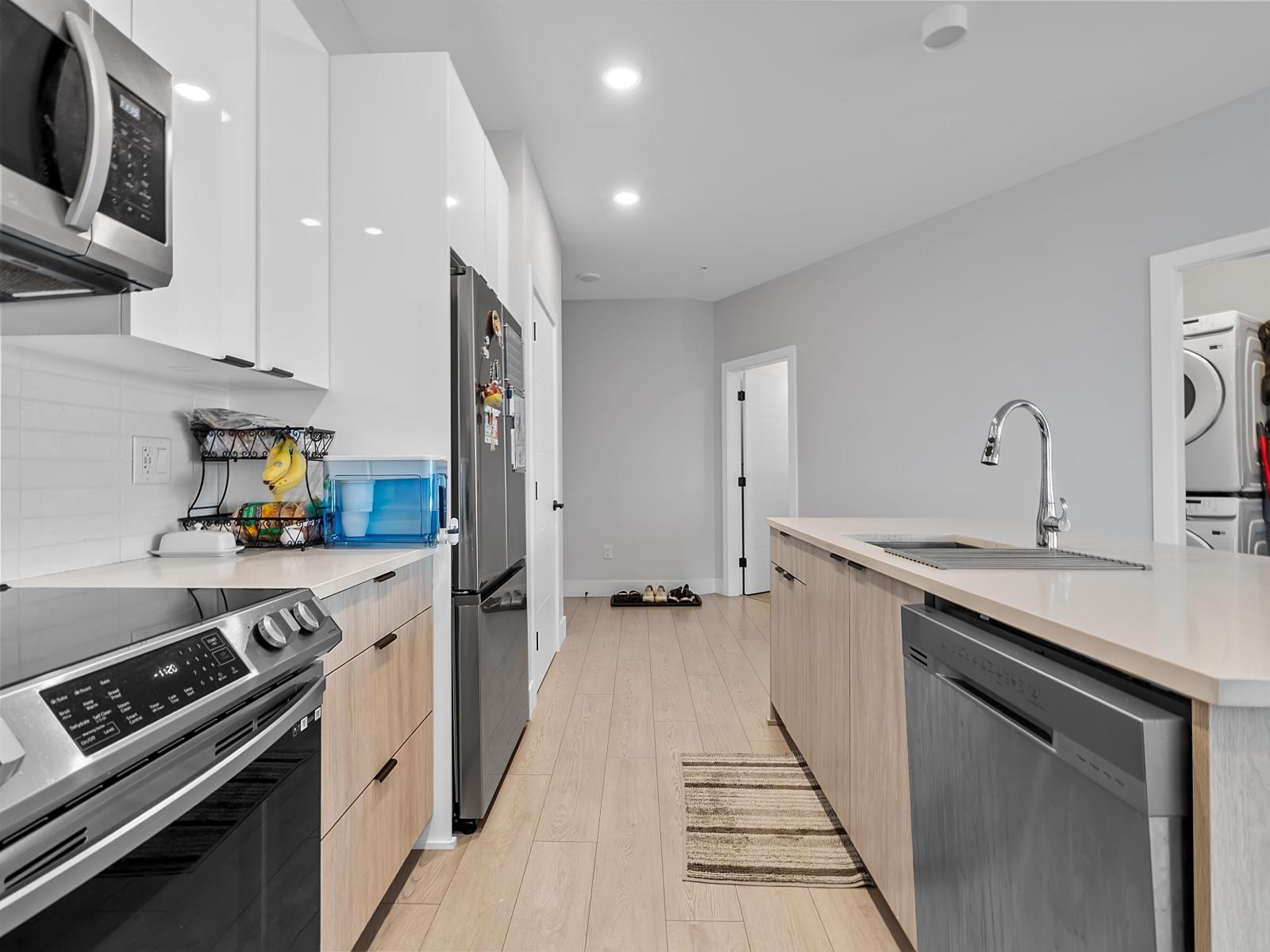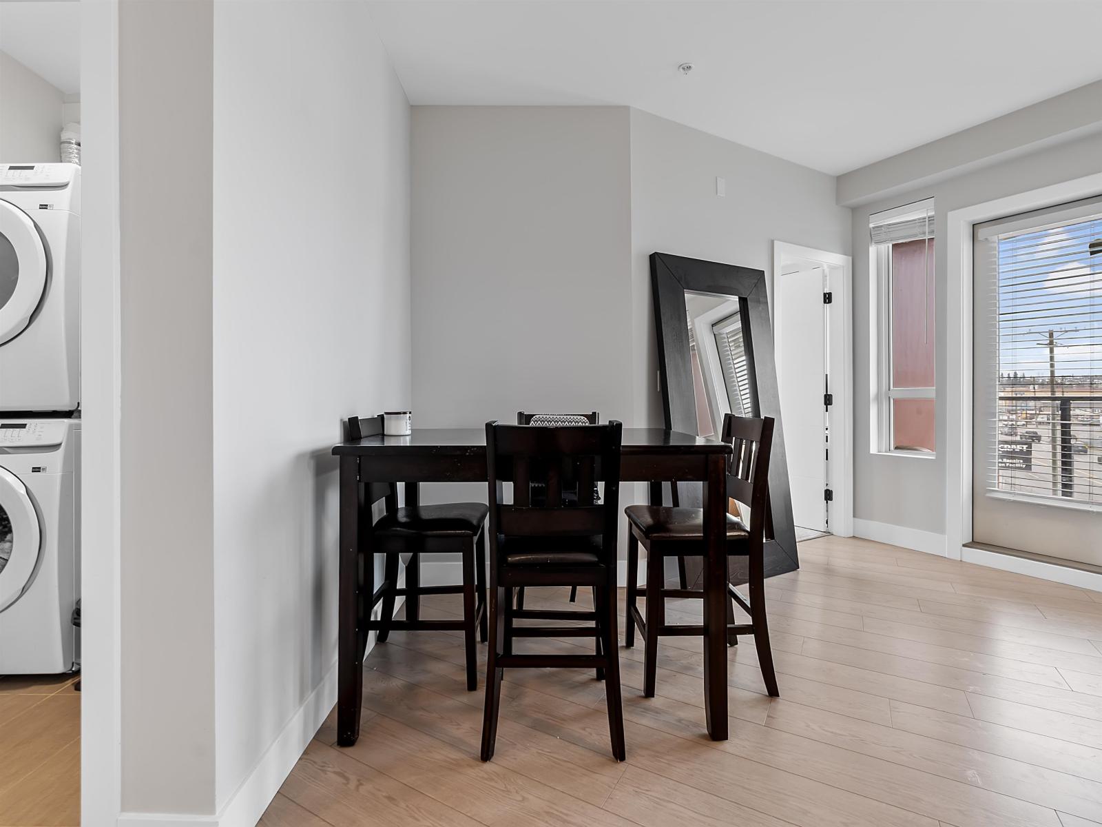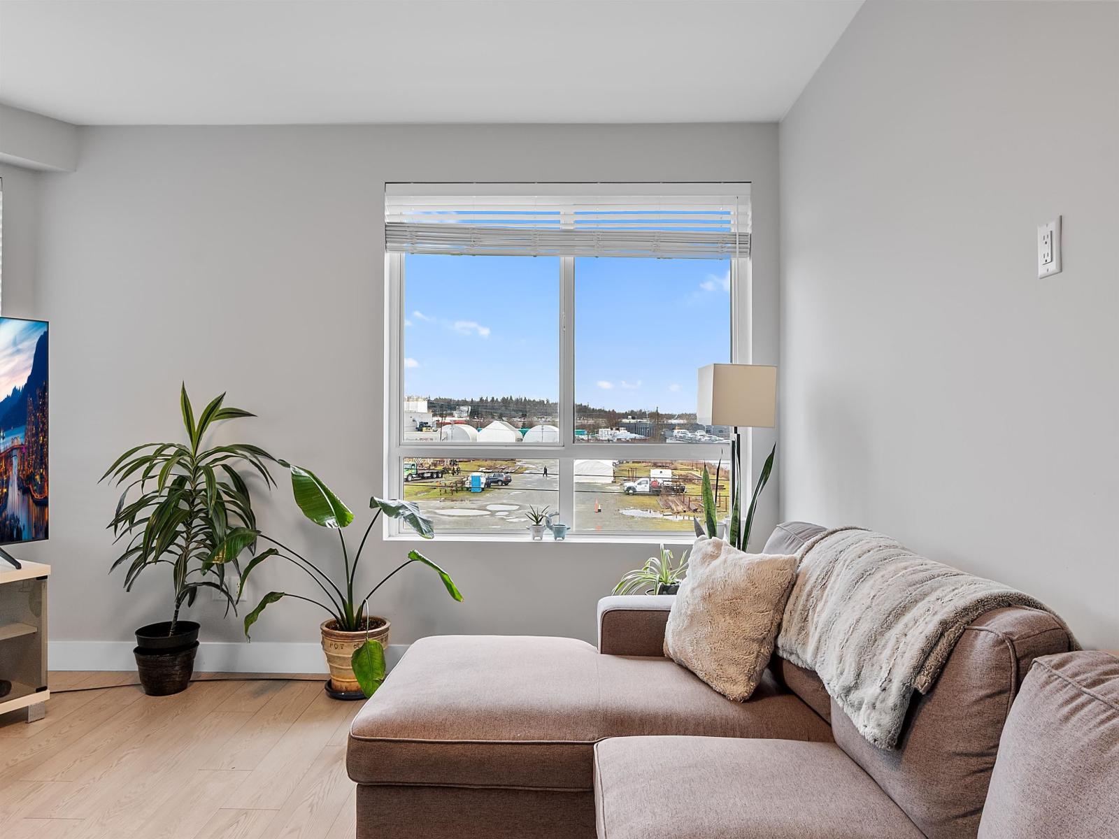 Experience elevated condo living in this north-facing corner home at the sought-after Genesis by Whitetail Homes. This well-designed 2 bedroom, 2 bathroom residence offers a bright open-concept layout with abundant natural light and a spacious covered balcony ideal for year-round use. Interior features include quartz countertops, stainless steel appliances, high ceilings, and modern spa-inspired bathrooms. The functional chef-style kitchen is perfect for everyday living and entertaining. Residents enjoy premium amenities including a fitness centre, landscaped courtyard, meeting rooms, and putting green. Ideally located steps to future SkyTrain access, shopping, restaurants, and schools. Strong rental demand makes this an excellent opportunity for homeowners and investors. (id:58403)