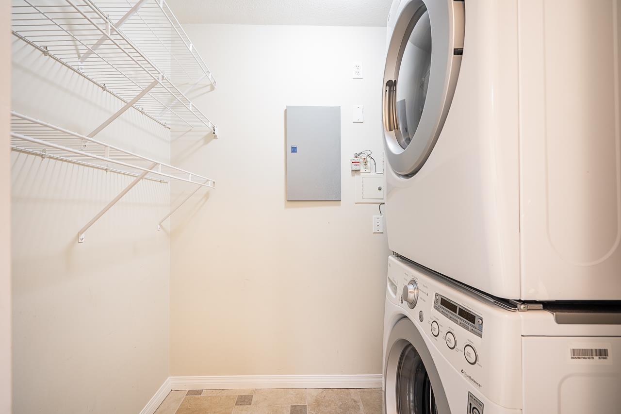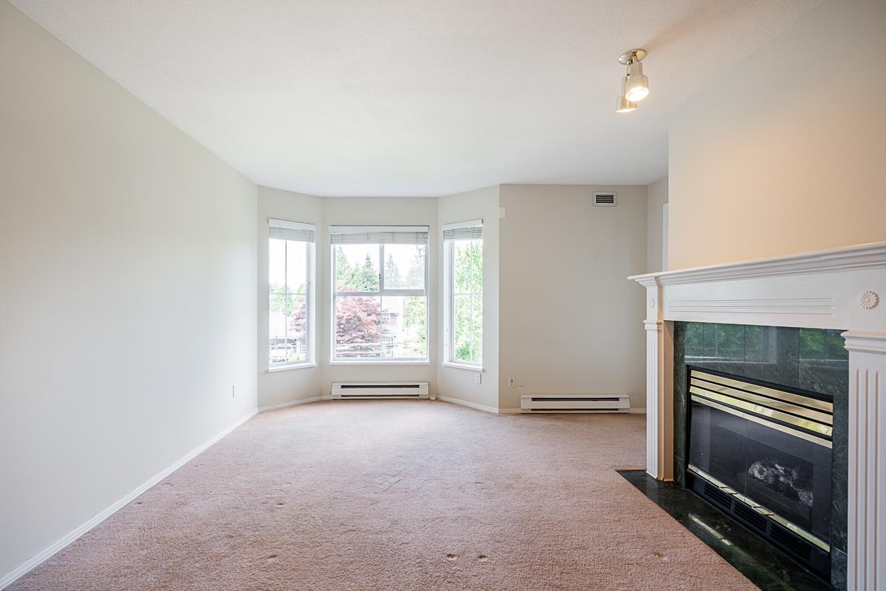 SPACIOUS TOP FLOOR 2 BED, 2 BATH FACING QUIET SIDE IN RIVERPOINTE, GUILDFORD! Conveniently located just minutes from Hwy 1, transit, Guildford Mall, grocery stores, restaurants, and all other essentials. This condo offers practical layout including expansive living space, two generously sized bdrms, a spacious kitchen, and two full btrms, perfect for everyday living. The cozy living room features a gas fireplace for comfort, and the open-concept layout includes a dedicated dining area that comfortably fits a large dining table, ideal for meals and entertaining. The large master bdrm easily fits your dream furniture and offers direct access to the balcony. For the extra feature, the in-suite laundry room provides ample storage. Step outside to your balcony, perfect for relaxation or bbq. (id:58403)