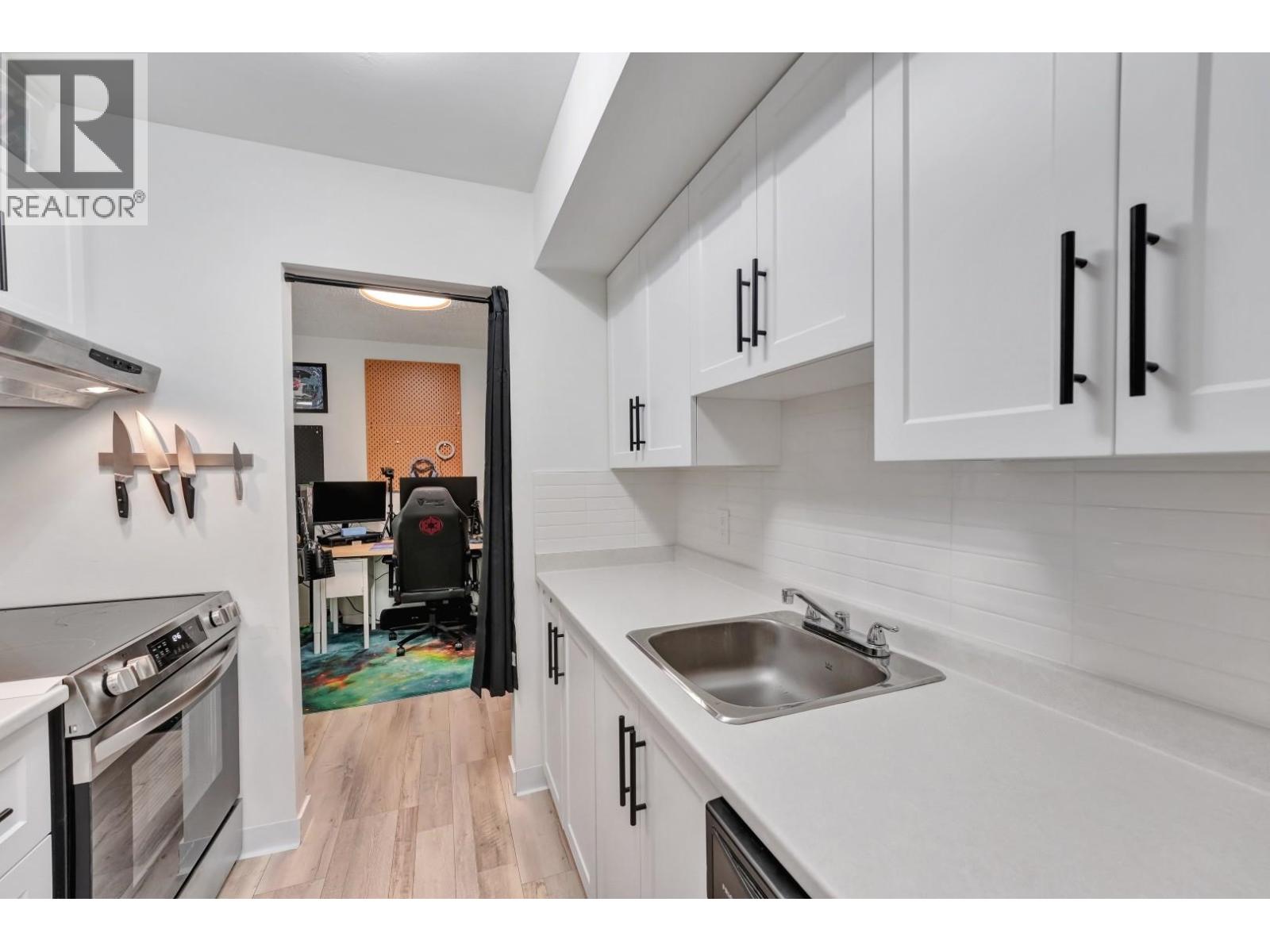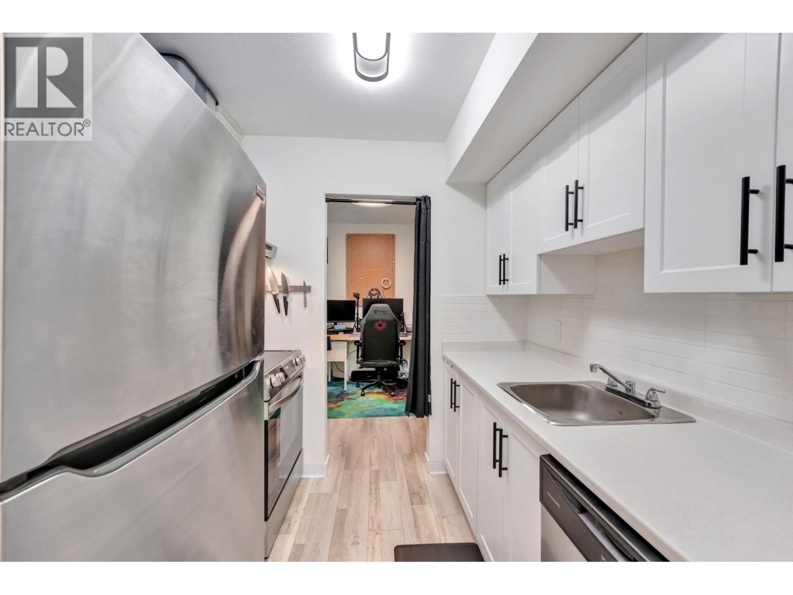 Spacious and beautifully updated top-floor 1-bedroom condo with in-suite storage. The kitchen has been tastefully updated with stainless steel appliances, new cabinet doors, counters, and a sleek backsplash. Enjoy new laminate flooring and modern LED lighting throughout. The recently redone covered balcony offers a private and peaceful tree lined outlook, perfect for relaxing. This unit includes one parking stall with a personal bike storage rack. Maintenance fees cover heat and hot water, plus access to "The Paddock" amenities, including an outdoor pool, sauna, basketball court, pool tables, and lounge area. Centrally located and move-in ready, this condo is ideal for first-time buyers, downsizers, or investors! Book your private showing today! (id:58403)