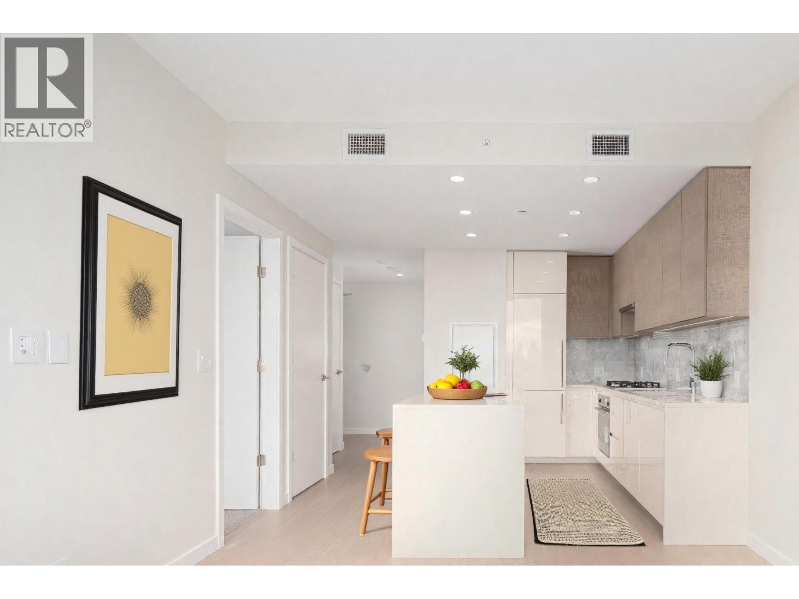 Experience elevated urban living at Gilmore Place Tower 3. Perched on the 32nd floor, this sophisticated 1-bedroom home features the sought-after A9 floor plan with 522 sq. ft. of thoughtfully designed space and a private balcony showcasing stunning North Shore Mountain views. Enjoy a sleek European-style kitchen with integrated Bosch and Blomberg appliances, 5-burner gas cooktop, and composite stone countertops. Highlights include wide-plank flooring, 9´ ceilings, a spa-inspired 4-piece bath, and year-round heating and cooling. Residents enjoy access to 75,000 sq. ft. of premium amenities, including pools, fitness center, bowling alley, golf simulators, and concierge, just steps to SkyTrain. **First Showings: Mon. March 30** (id:58403)