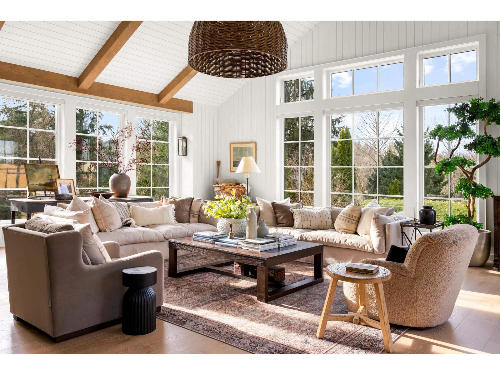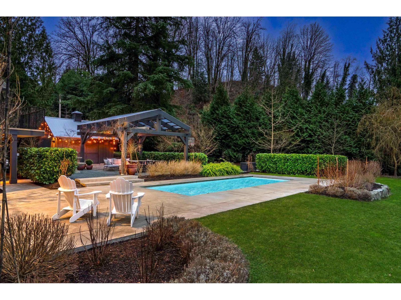 Coach home permitted and no floor space restriction - offering exceptional long-term value in a premier location. SuCasa renovation on a private 1-acre estate on one of Abbotsford's most desirable streets, not in the ALR and under 5 minutes to trails, MEI, and highway access. South-facing with mountain views, manicured grounds, pool, pergola with overhead heat, firepit, and tranquil fountain. Fully updated with new electrical, plumbing, insulation, furnace, A/C, and instant hot water. Thoughtfully redesigned with vaulted great room addition, abundant natural light, custom cabinetry, stone surfaces, and artisan millwork throughout. Heated 18'x18' workshop/poolhouse with conversion potential. Full YouTube narrated tour available. (id:58403)