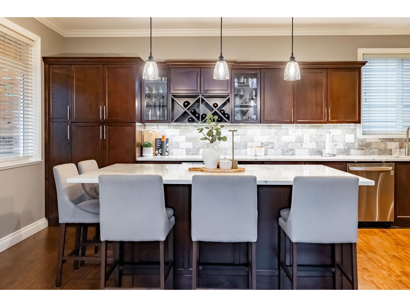 On a bright corner lot in Cedar Valley, this fully renovated 5-bedroom, 3-bath home blends thoughtful updates with farmhouse-inspired touches. Step onto the front veranda and imagine morning coffee or evening chats with friends. Inside, a new kitchen with quartz counters and a large island flows into the family room with a gas fireplace, while a main-floor bedroom and separate living room offer flexible space. Upstairs, four bedrooms include a primary with a 4-piece ensuite and walk-in closet. Outside, a fenced backyard with a custom covered patio and a heated garage complete a home designed for real life. (id:58403)