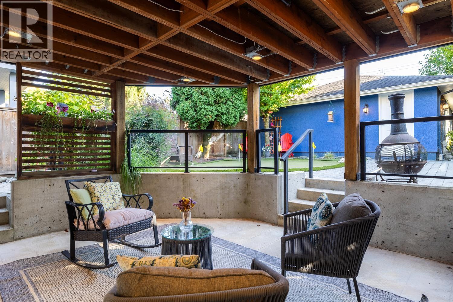 Welcome to this meticulously & fully renovated home - w/permits 2011, where modern luxury meets classic charm in a sought-after Kitsilano. This 5 bed home boasts over 1900sqft of spacious & functional layout w/year-round comfort of A/C. Main level features an open living/dining area w/unique cove ceiling, custom mantel, & gas fireplace. Stunning chef´s kitchen was renovated w/granite countertop, s/s appliances with a top-of-the-line Italian Bertazzoni stove. Entertain on the oversized south facing deck. 2 beds on the main level & renovated bathroom. Lower level w/separate entrance features 3 bedrooms, laundry/utility room and 2 baths. Backyard is a private retreat with custom putting green, covered deck area Oversized garage w/Level 2 EV charger. OH Sat Oct 4, 2:30-4:30pm & Sun Oct 5, 2-4pm. (id:58403)
